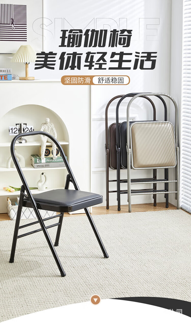 Lilang Yoga Chair Yoga Supplies Iyengar Assistive Equipment Folding Black Pilates Chair PU Surface Special Folding Yoga Stool Three Beam Black Thickened 1.2 Tube Wall Model