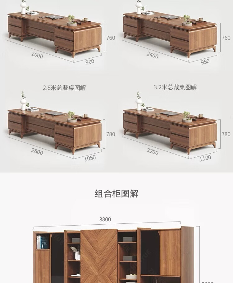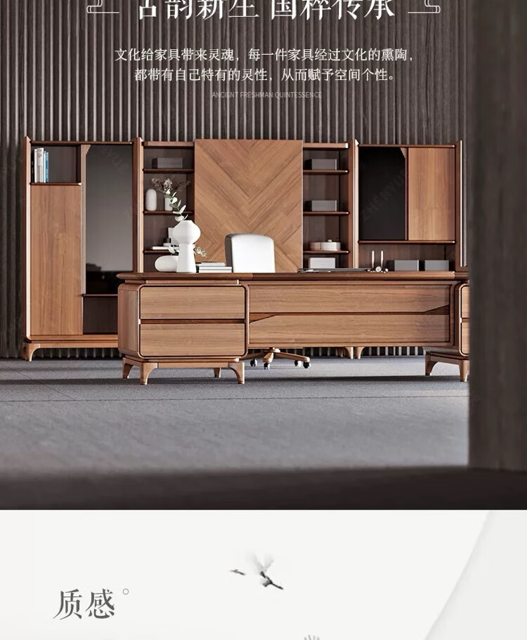 New Chinese style office solid wood boss desk president desk office desk and chair combination modern simple chairman executive desk 2.0m boss desk