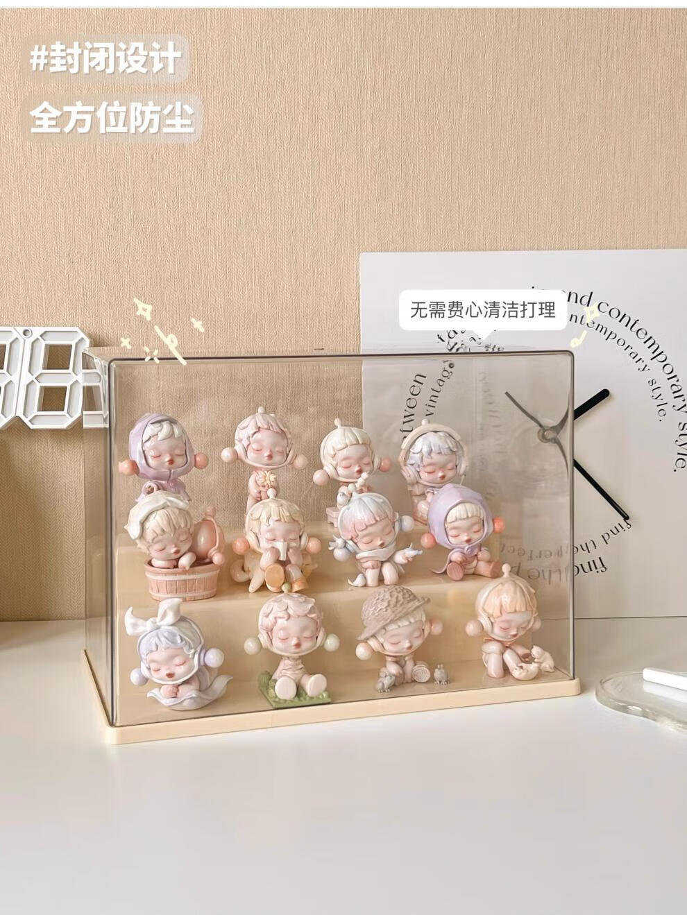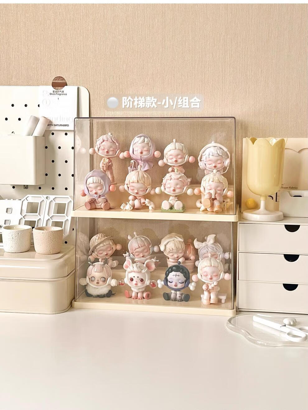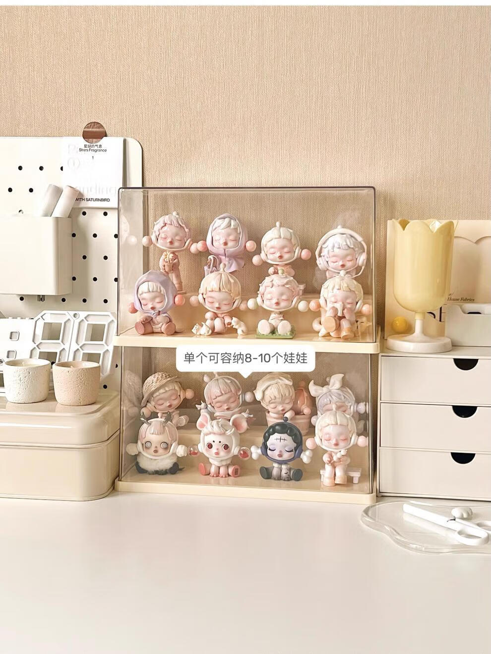 Pulian acrylic transparent hand-made ornament display cabinet is suitable for Bubble Mart display box. Large three-layer ladder model can hold 12-15 dolls without installation.