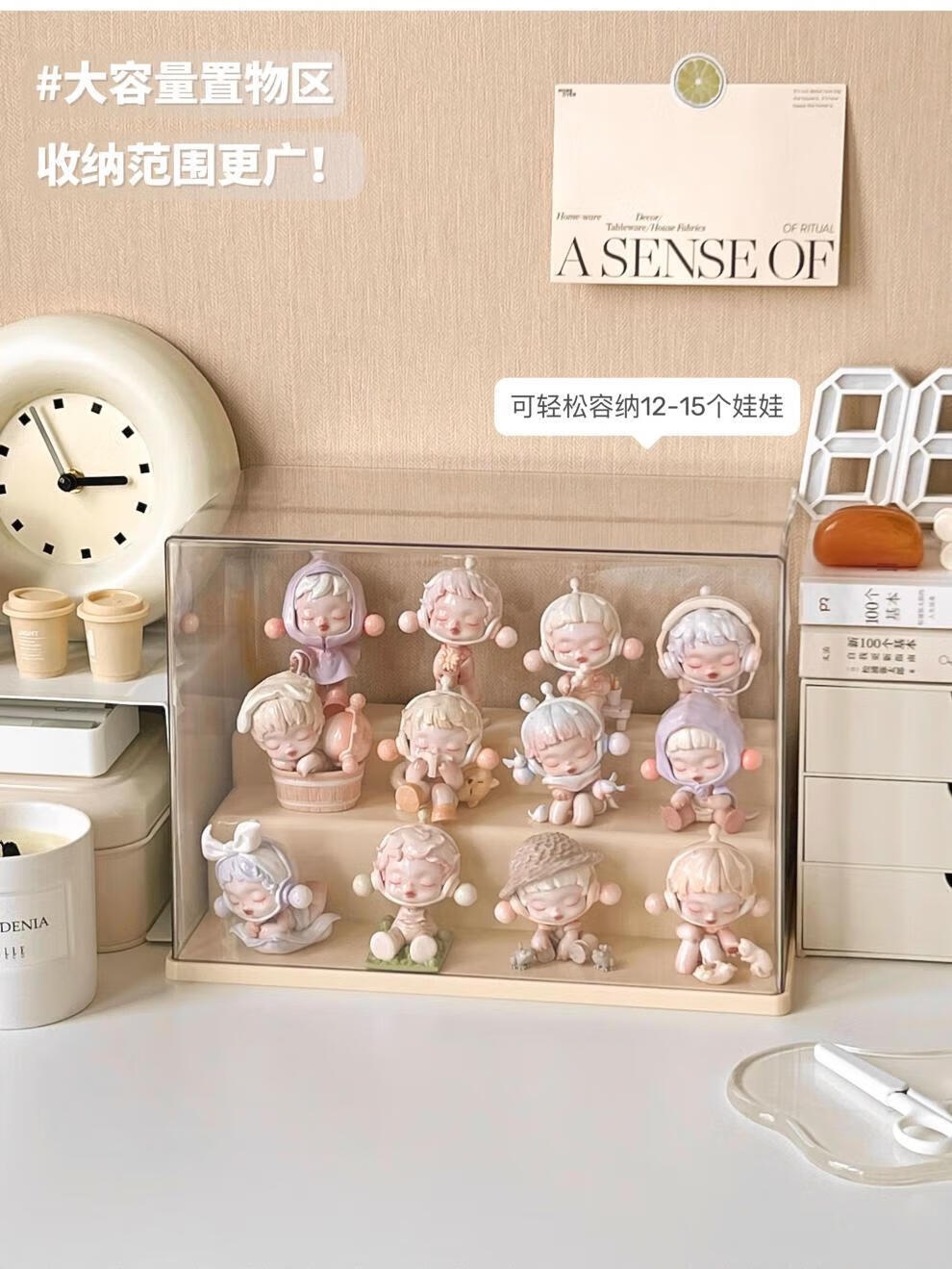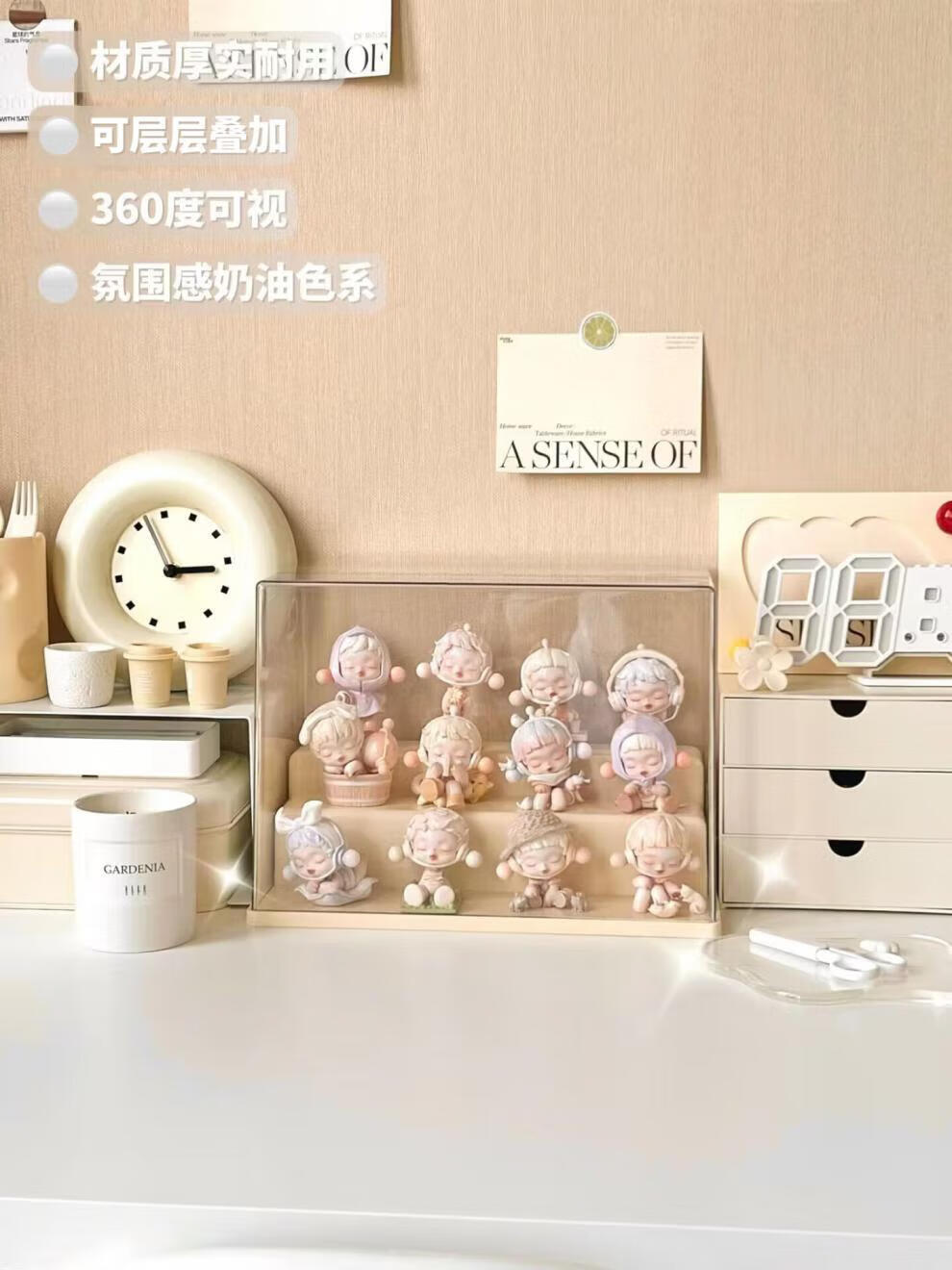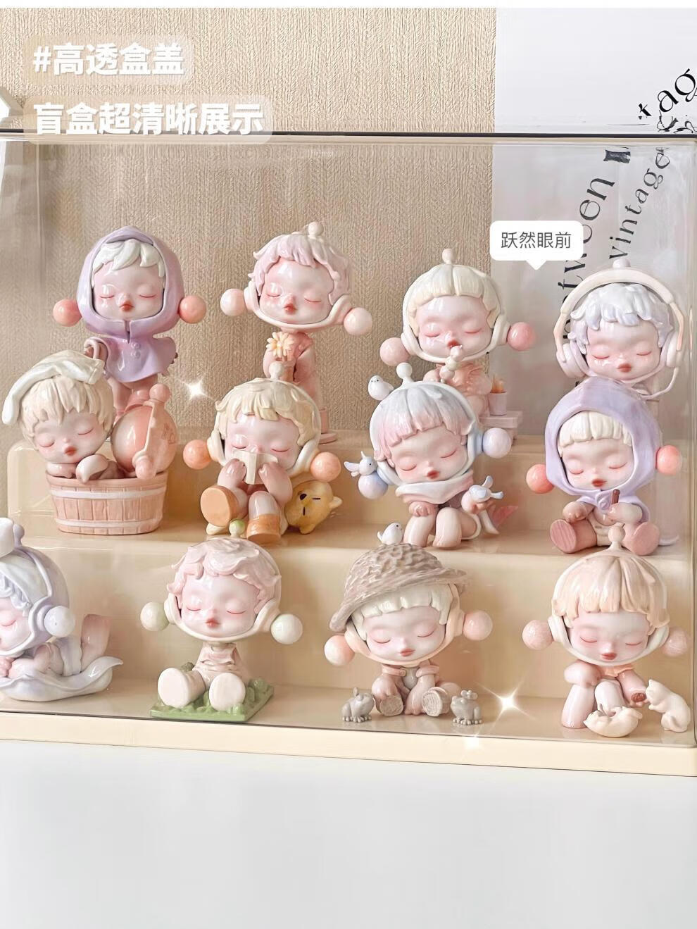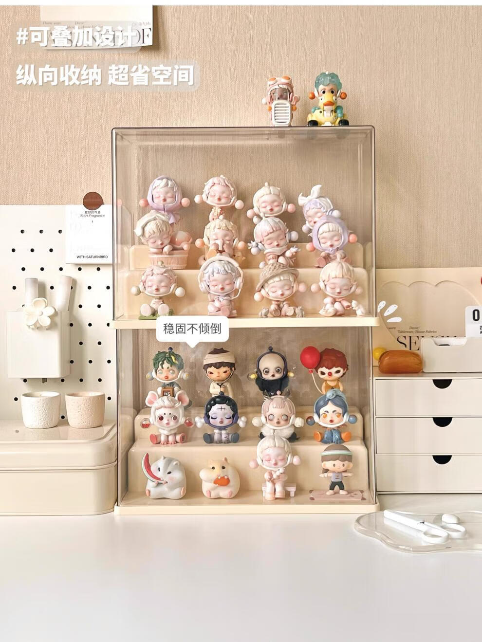 Pulian acrylic transparent hand-made ornament display cabinet is suitable for Bubble Mart display box. Large three-layer ladder model can hold 12-15 dolls without installation.