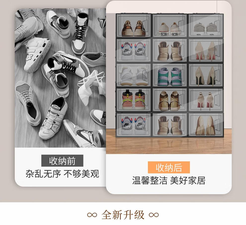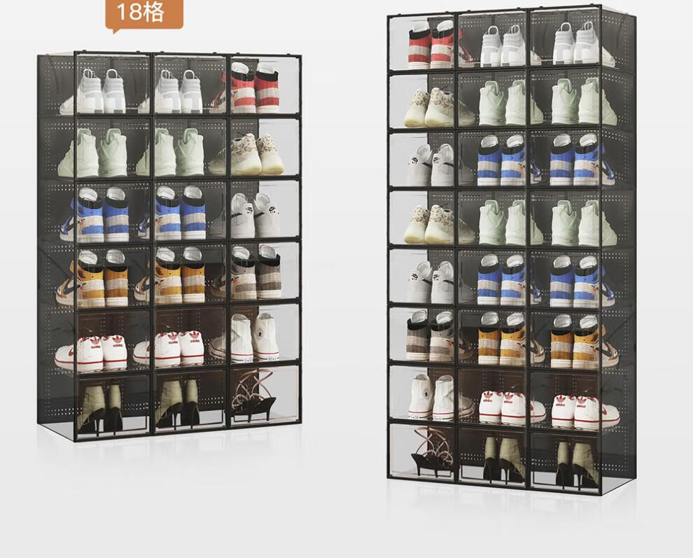 Pulian thickened shoe box storage box transparent foldable storage box plastic sneaker rack shoe cabinet drawer type space-saving artifact B type - hot selling recommendation 46.5 size transparent black buy 4 get 4 free in total 8 pieces can be installed