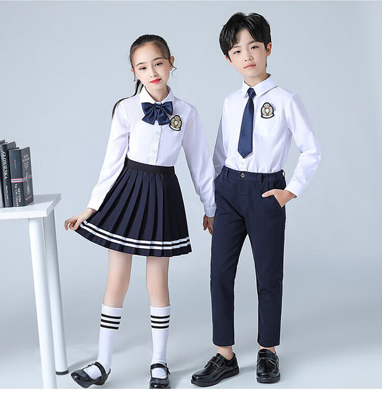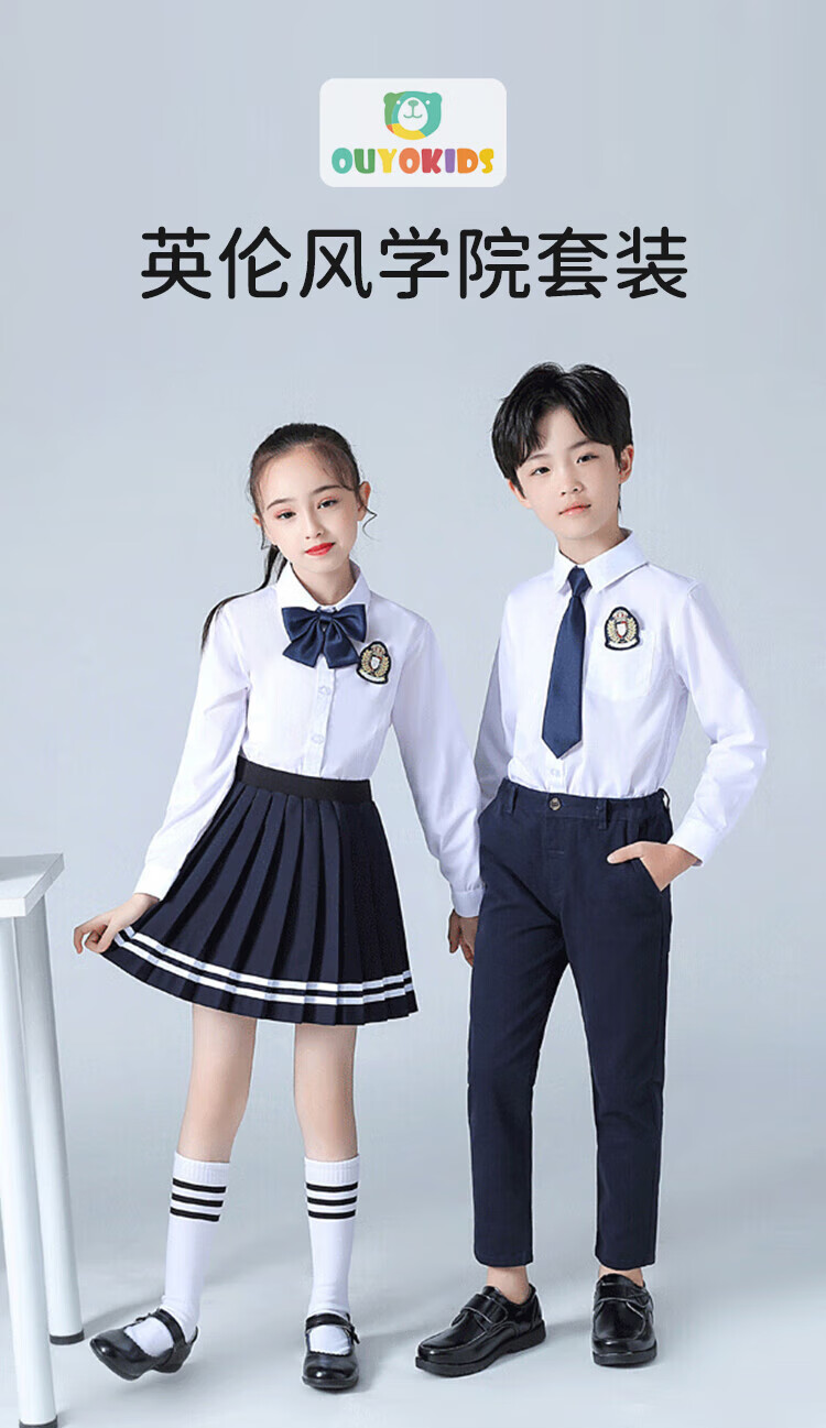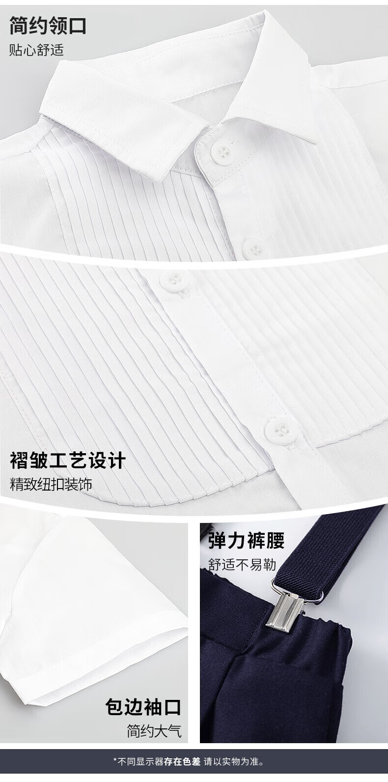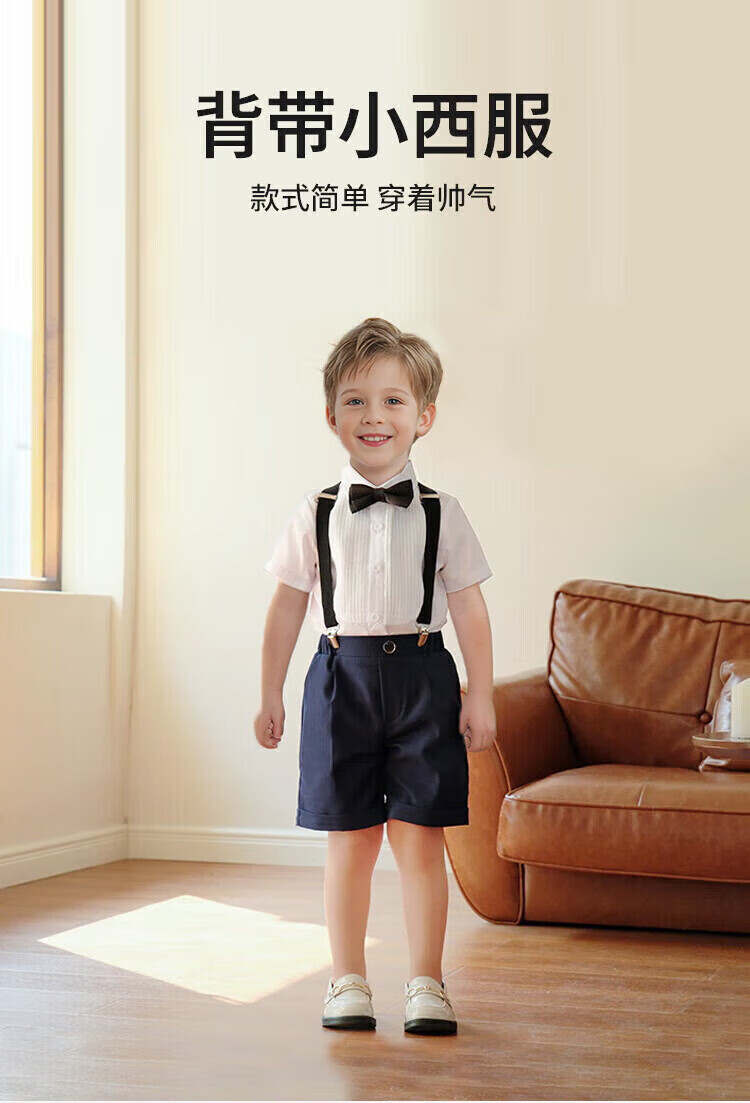 Ouyu boys' dress summer suit baby kindergarten performance small host chorus flower girl one-year-old graduation uniform navy blue (shirt + suspenders + shorts + red bow tie) one size fits all 110 recommended weight 35-42Jin Jin is equal to 0.5 kg
