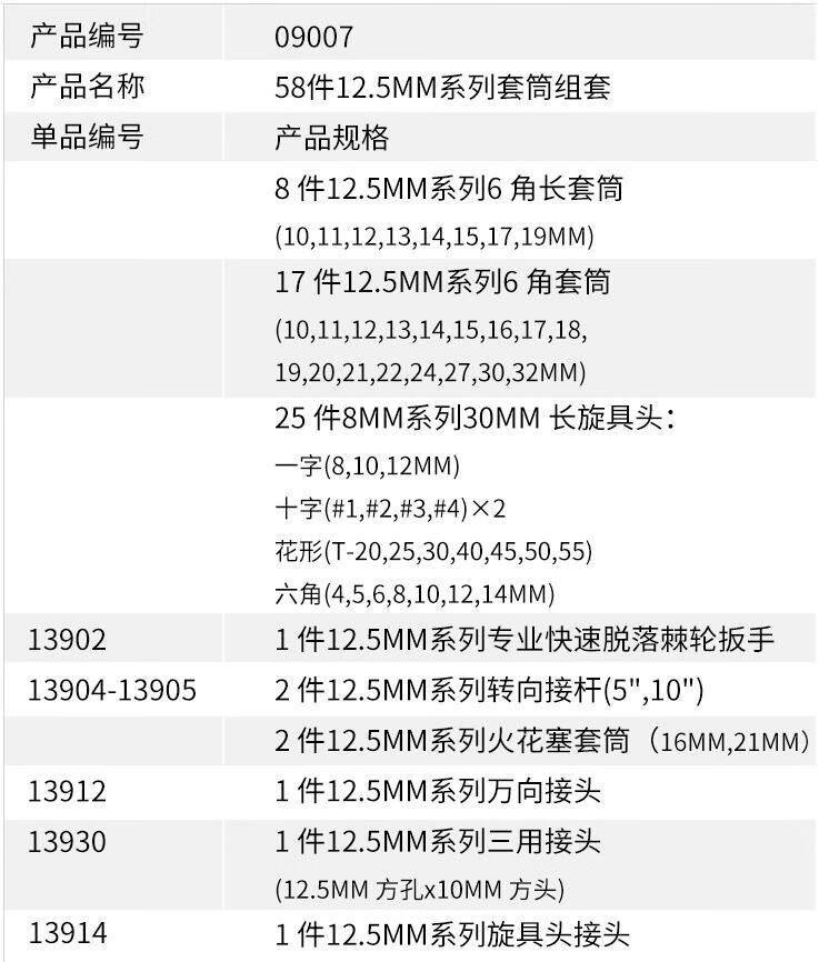 Shida Tools 12.5MM series socket set 09007 09007 old model 58 pieces new model 60 pieces shipped randomly