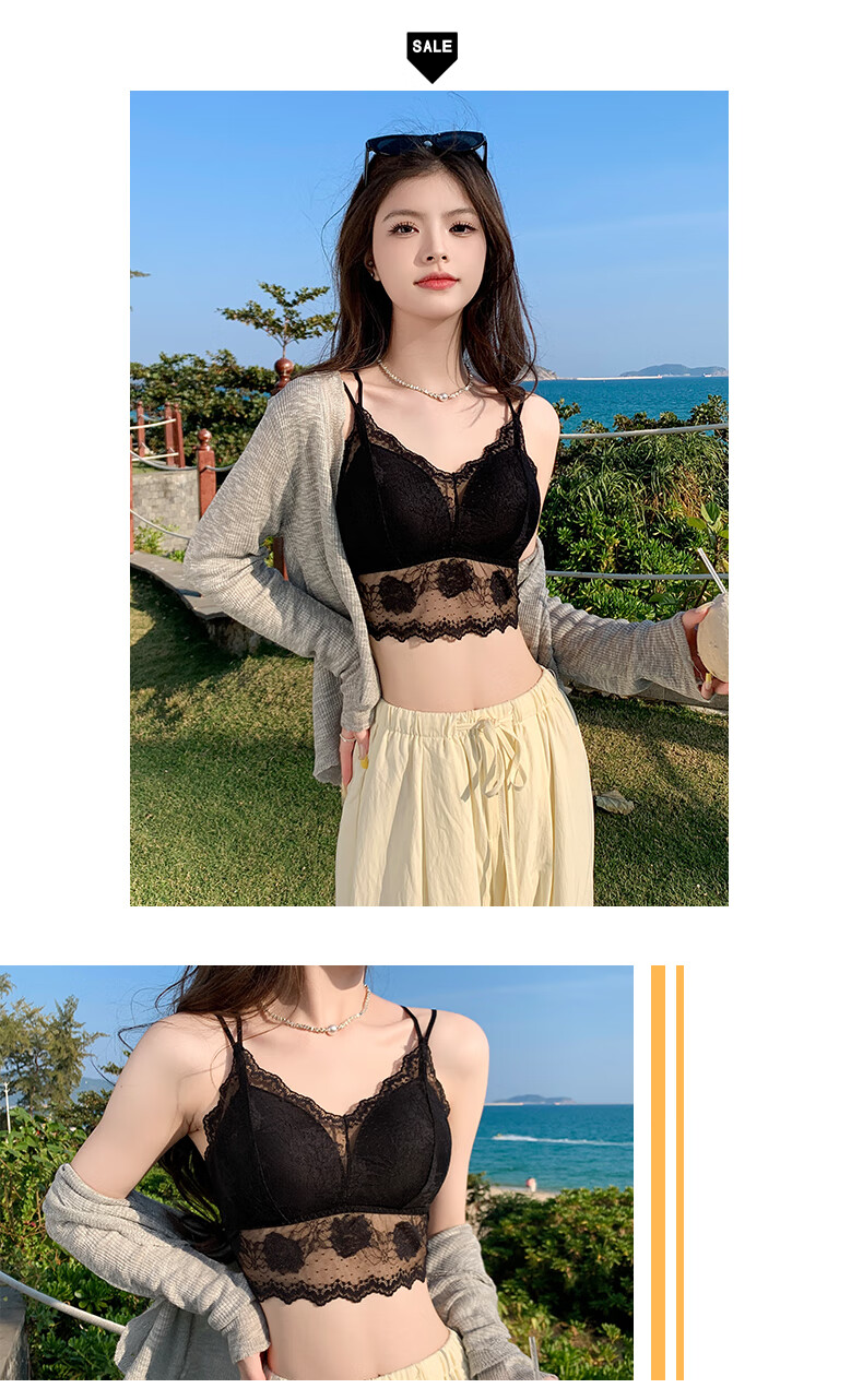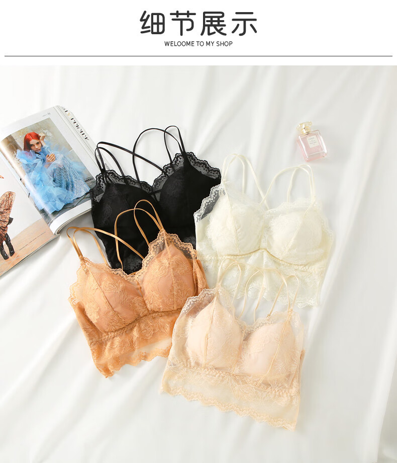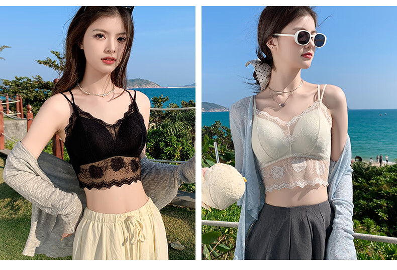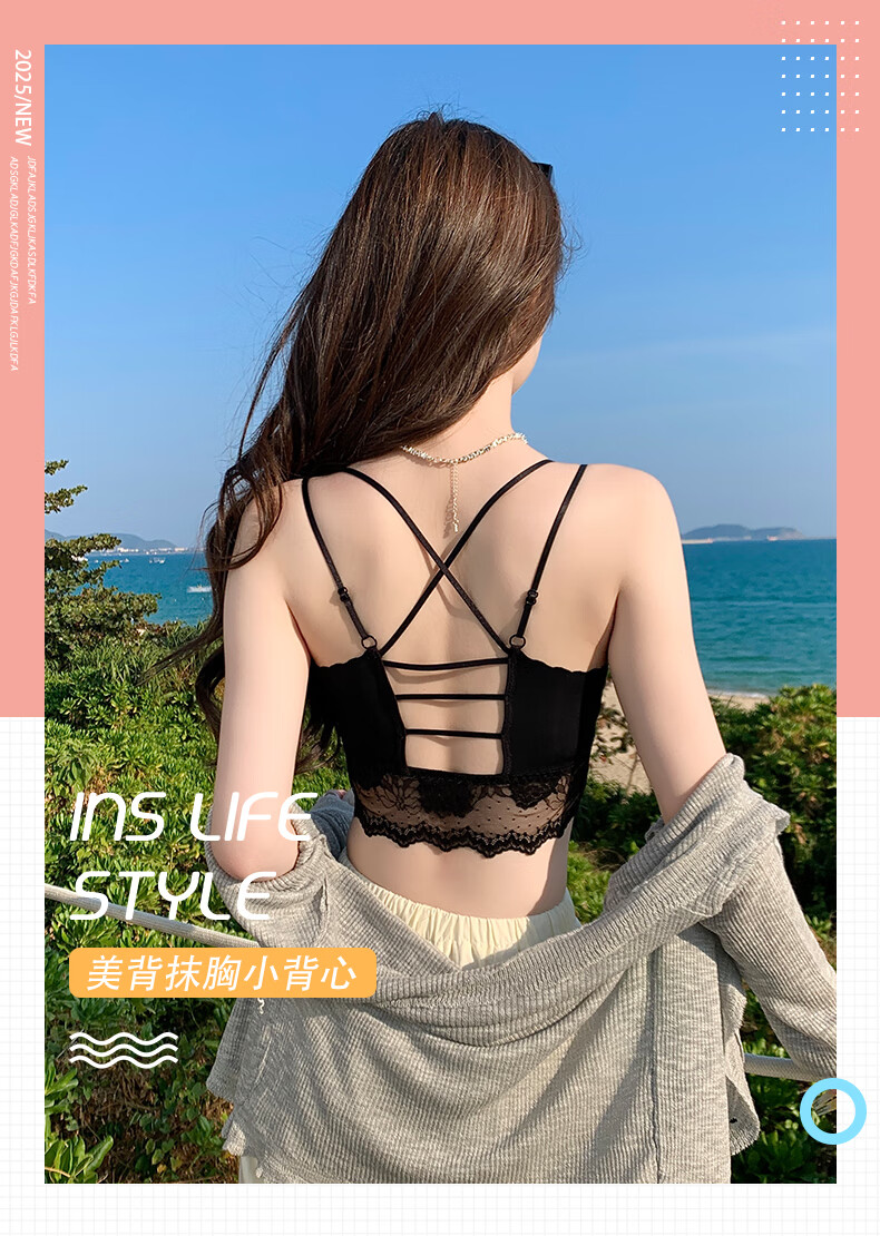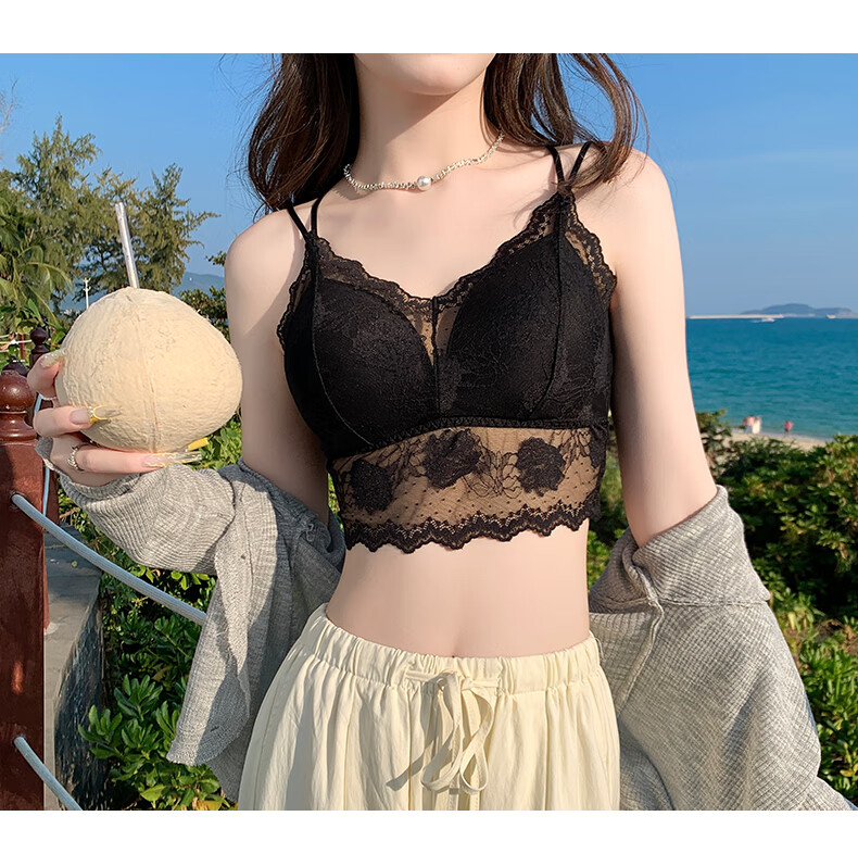 YAE SAKURA Lace Small Camisole Women's Underwear with Autumn Strap Padded Tube Top as Bottoming Black Breast-Wrapped and Beautiful Back Underwear Y-Elegant Black M (80-110Jin Jin is equal to 0.5kg)