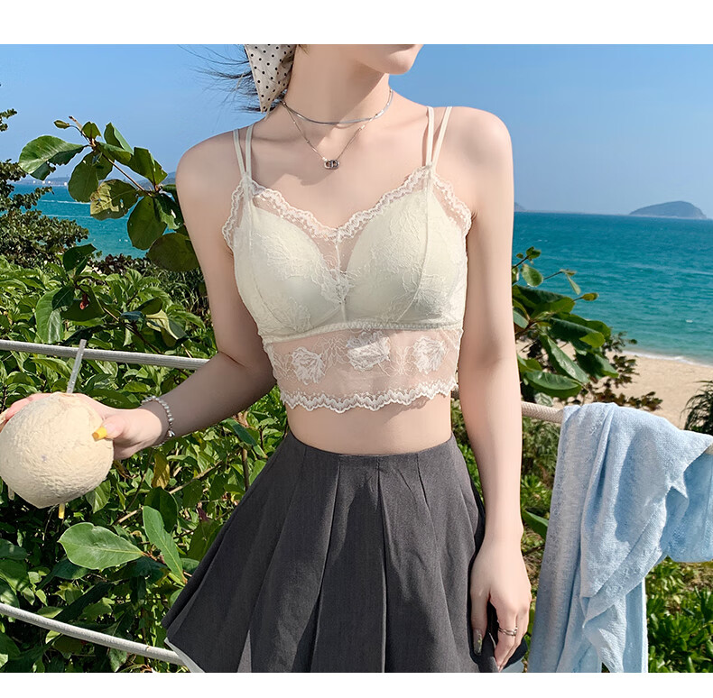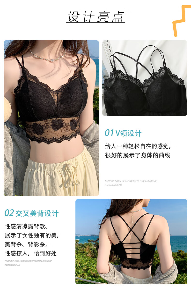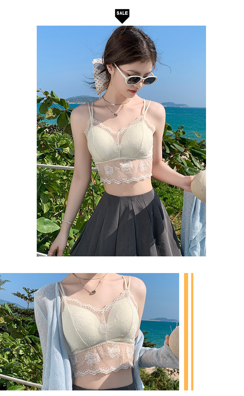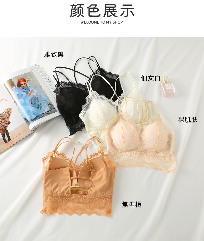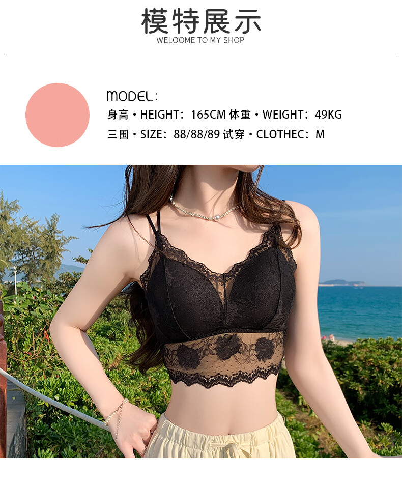 YAE SAKURA Lace Small Camisole Women's Underwear with Autumn Strap Padded Tube Top as Bottoming Black Breast-Wrapped and Beautiful Back Underwear Y-Elegant Black M (80-110Jin Jin is equal to 0.5kg)