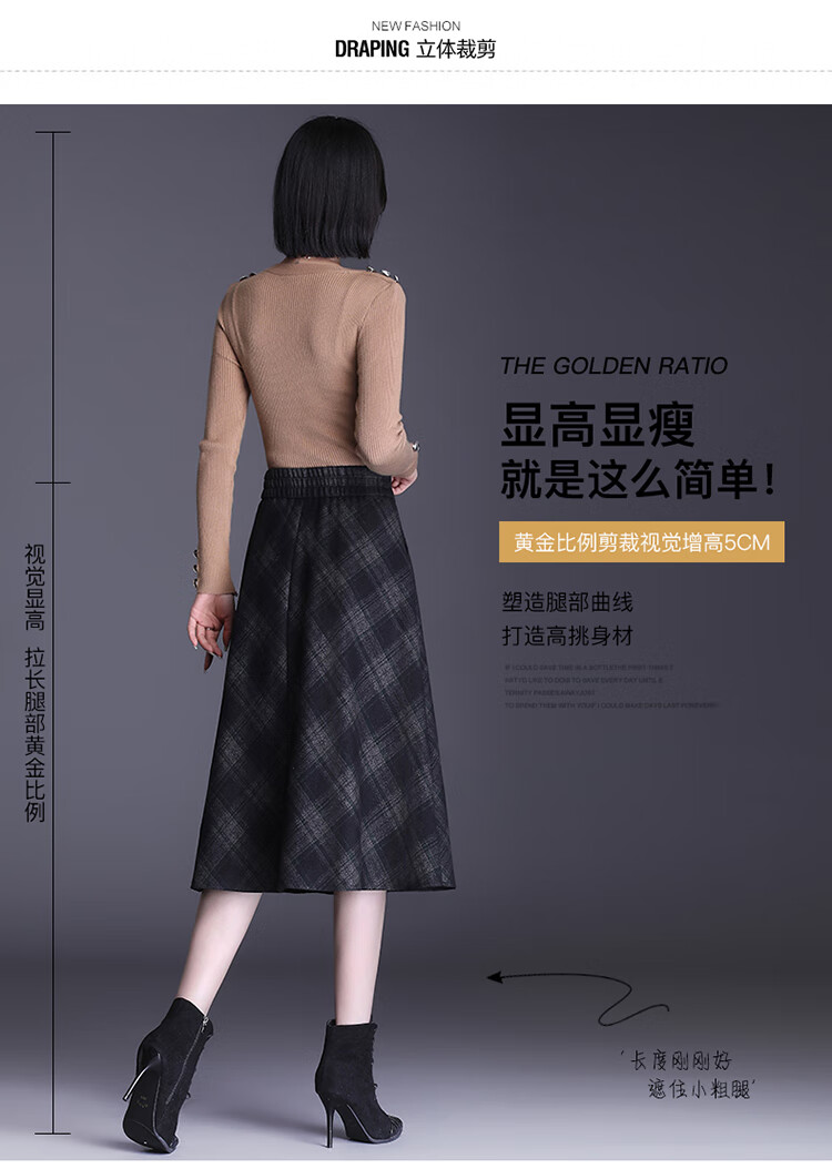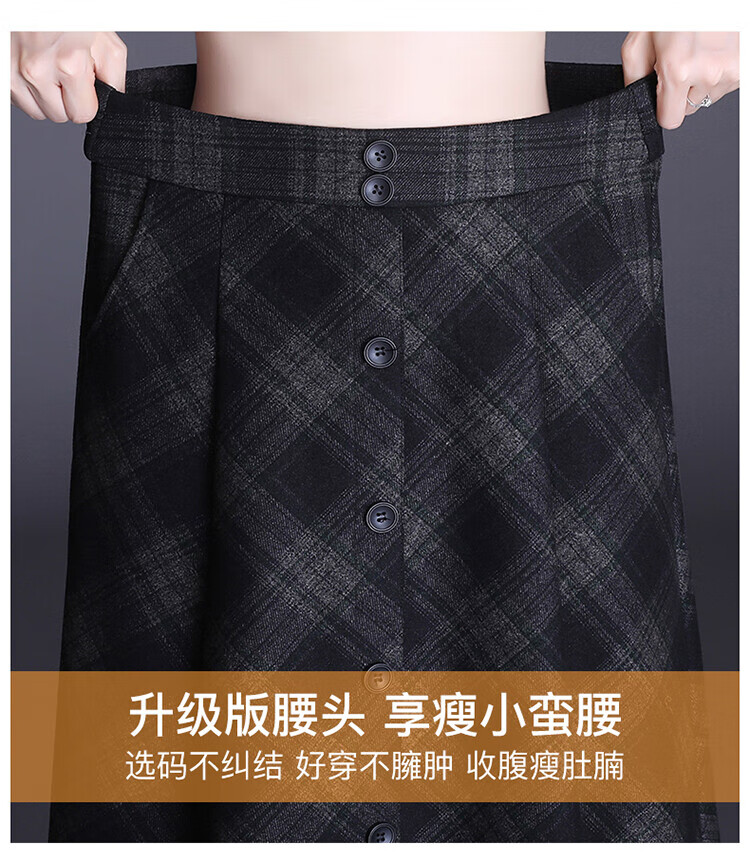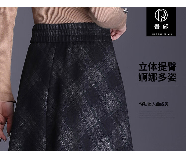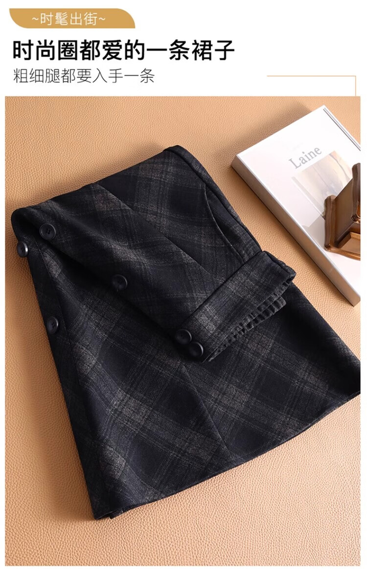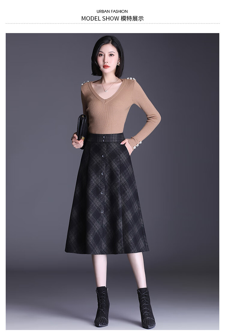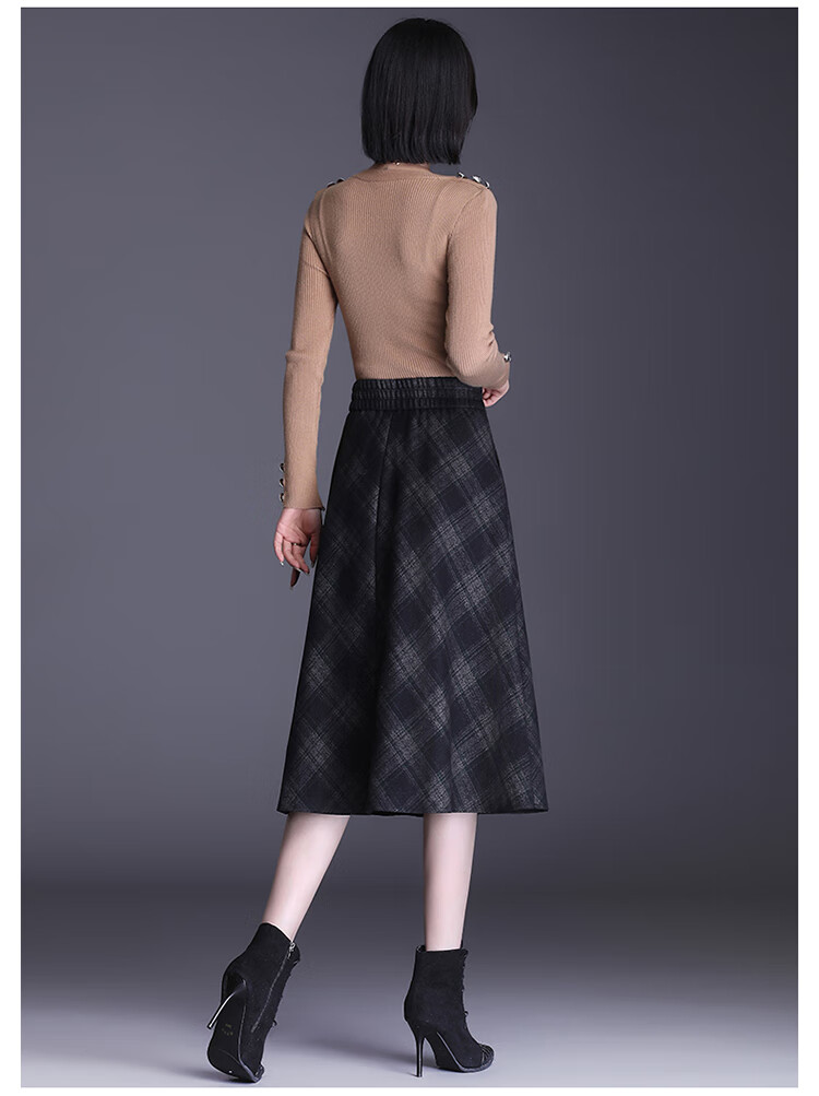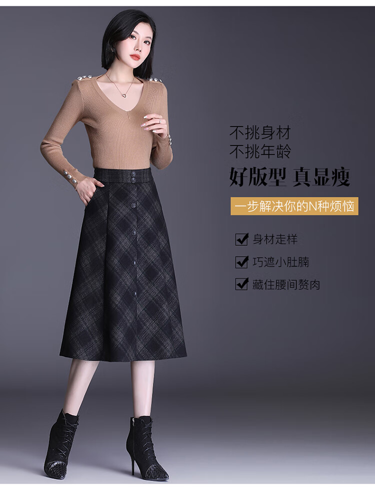 ROMON High Waist A-Line Winter Skirt Plaid Woolen Half Skirt Women's Autumn and Winter Thickened Mid-Length Umbrella Skirt 2025 New Style Plaid M Recommended 90-100Jin Jin is equal to 0.5 kg