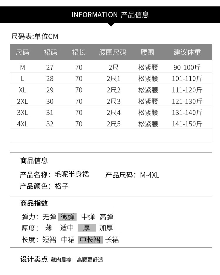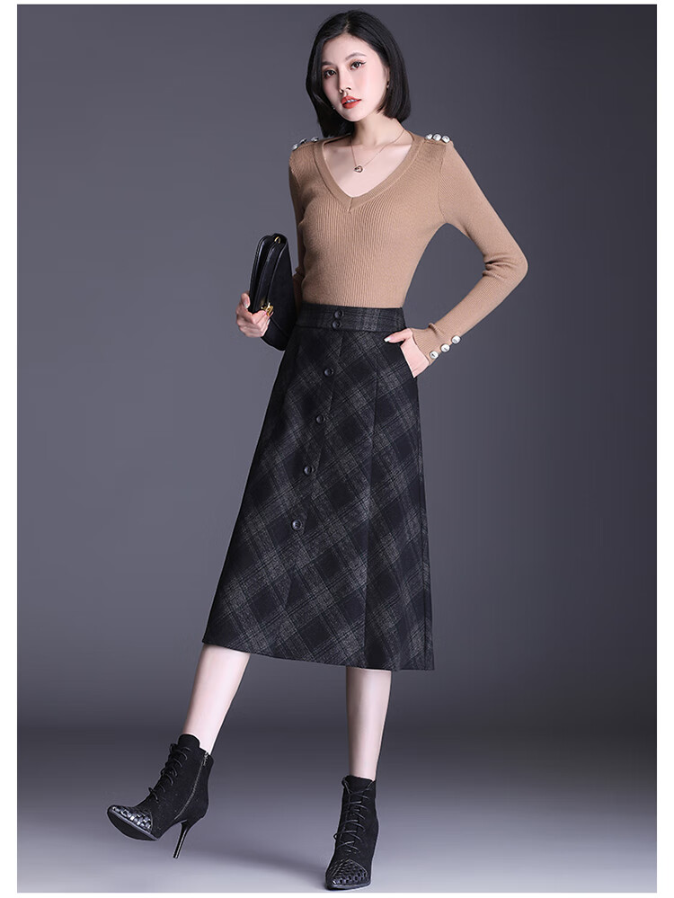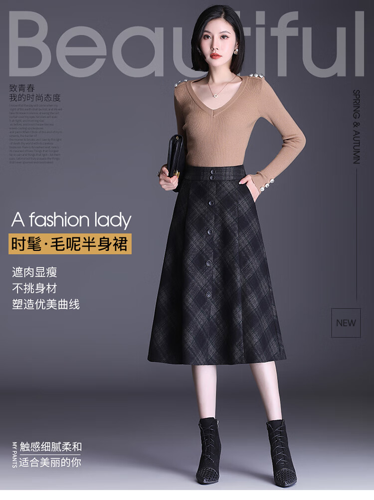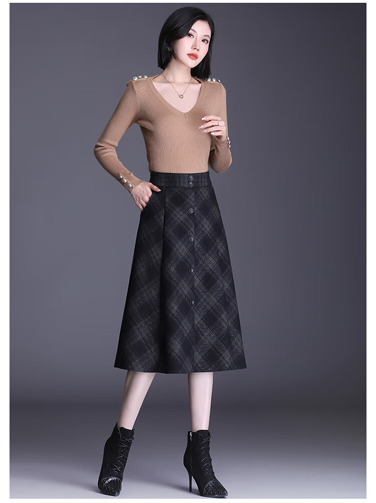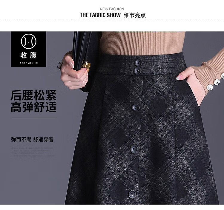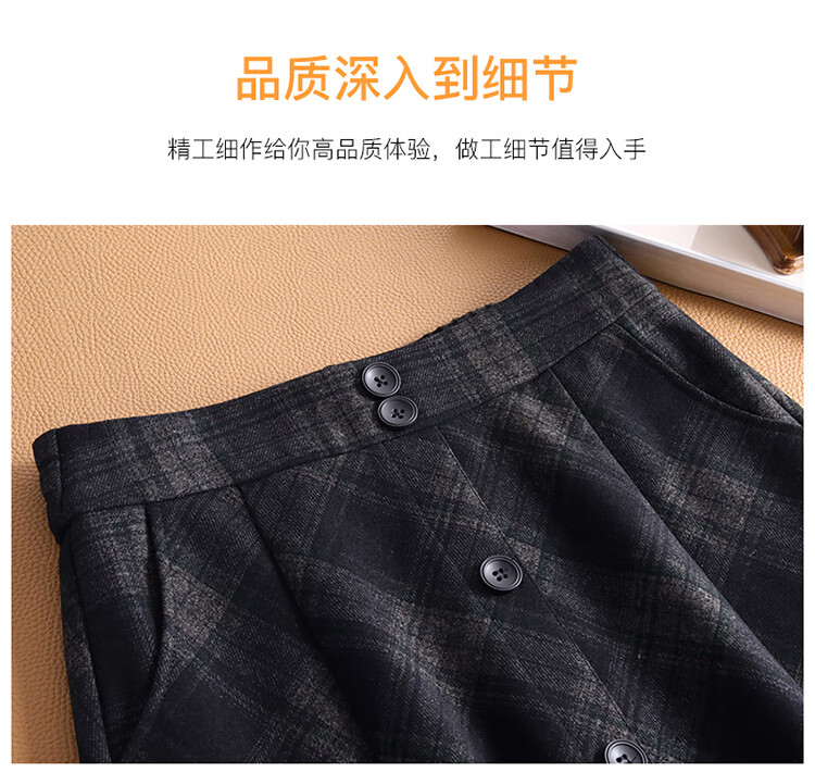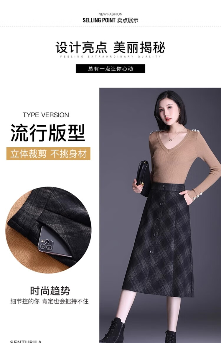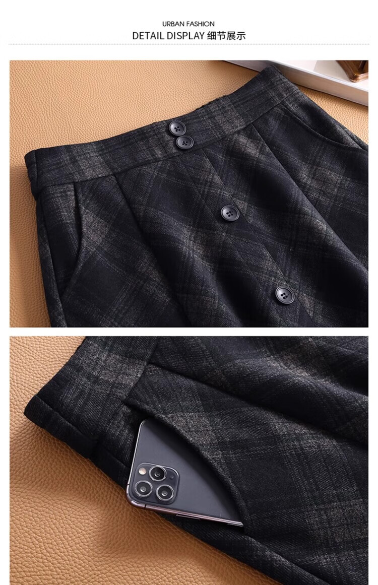 ROMON High Waist A-Line Winter Skirt Plaid Woolen Half Skirt Women's Autumn and Winter Thickened Mid-Length Umbrella Skirt 2025 New Style Plaid M Recommended 90-100Jin Jin is equal to 0.5 kg