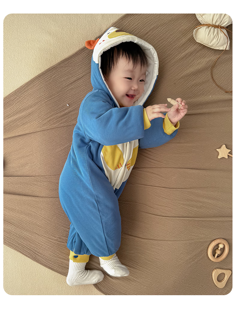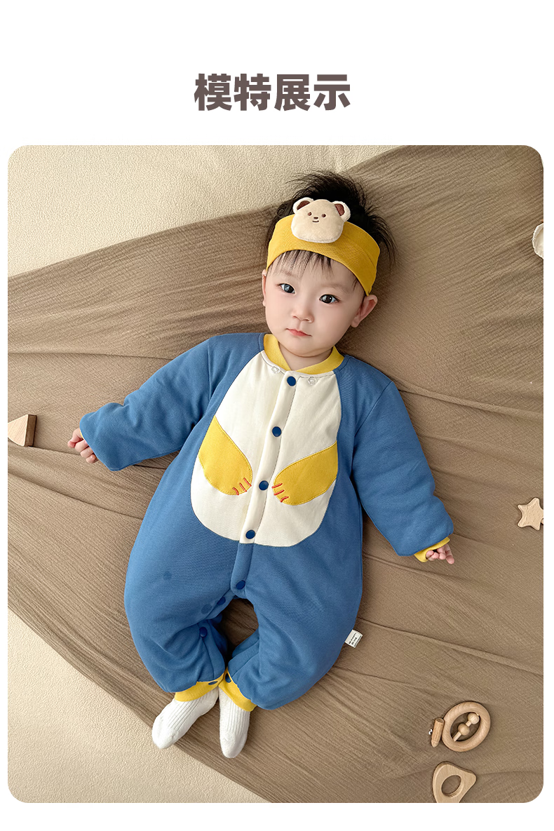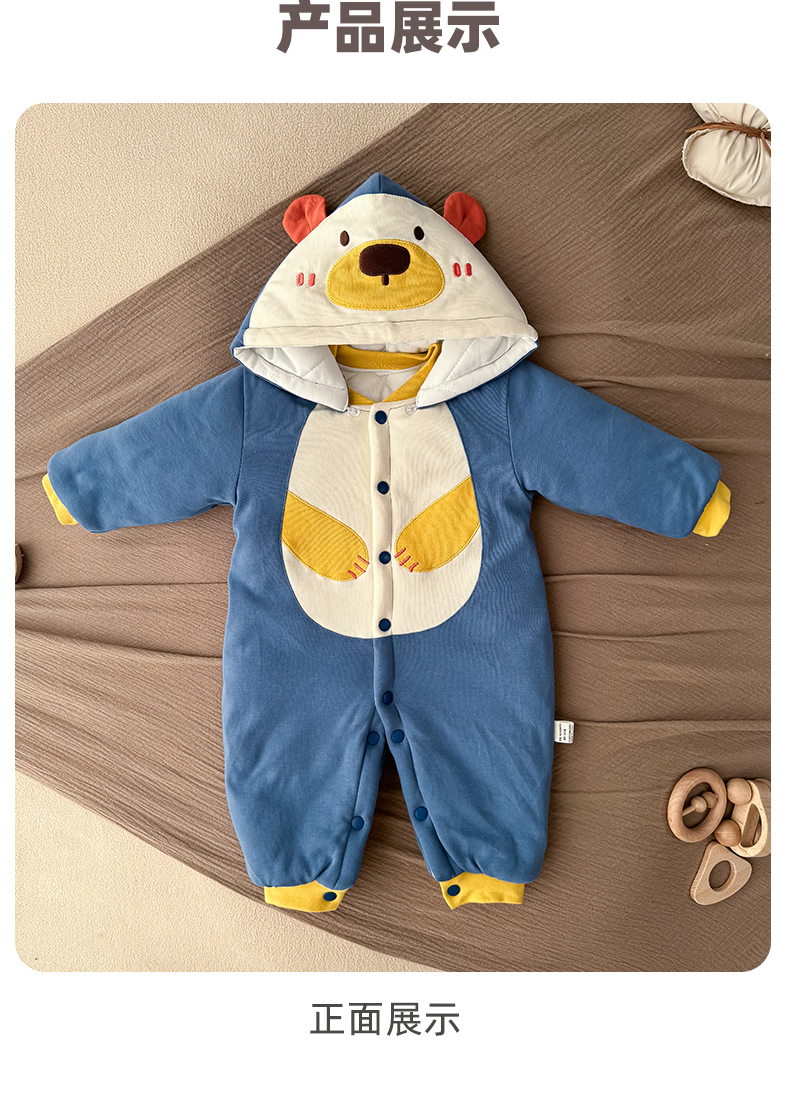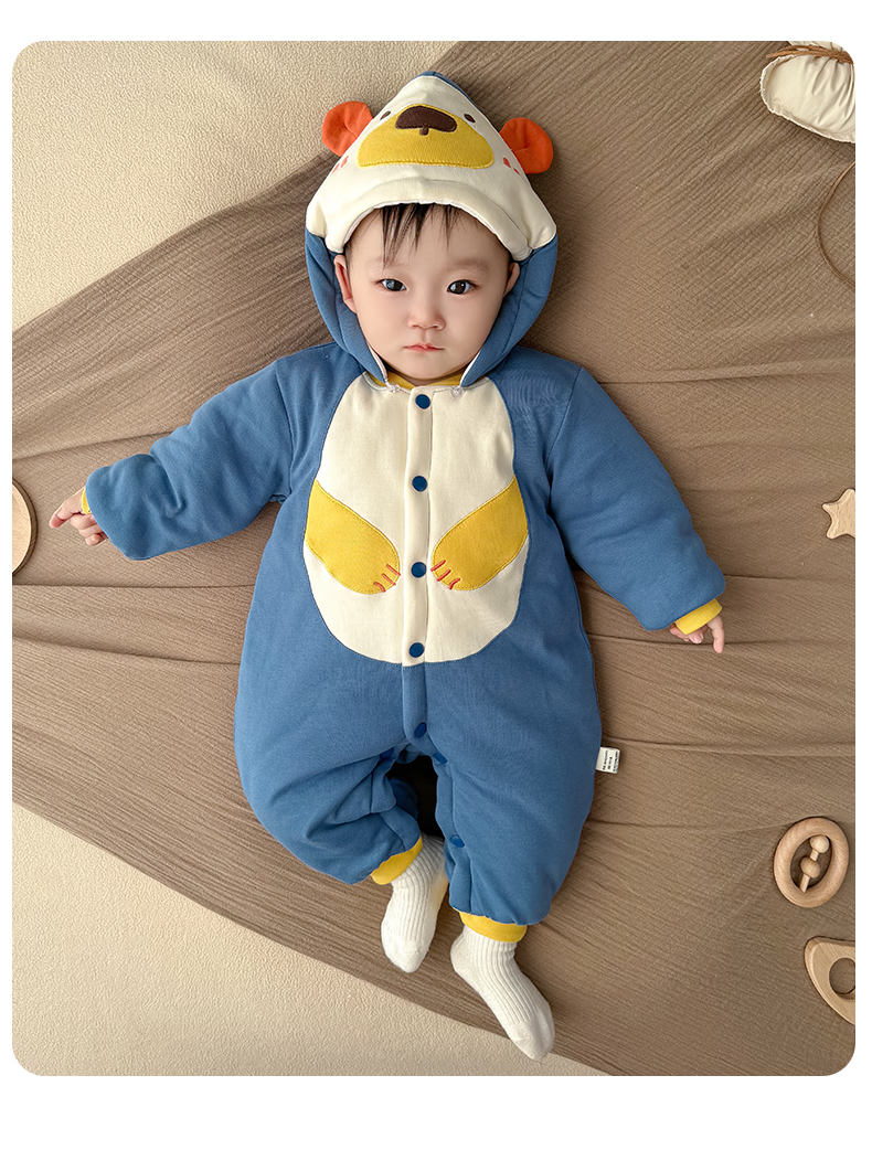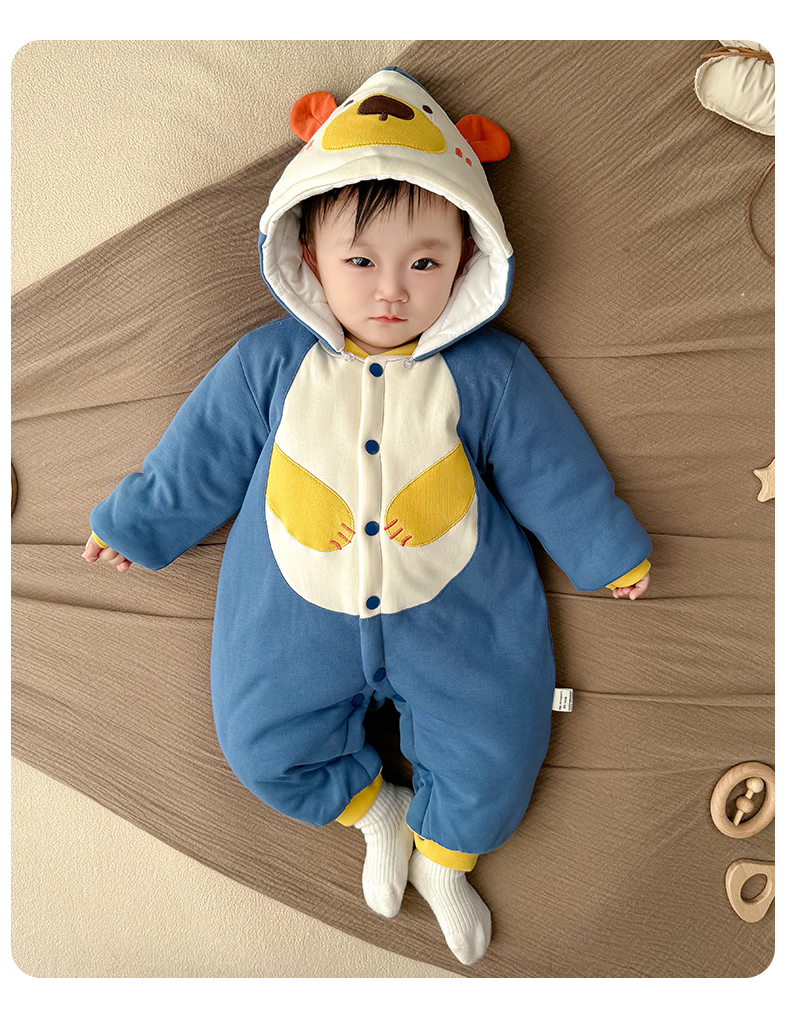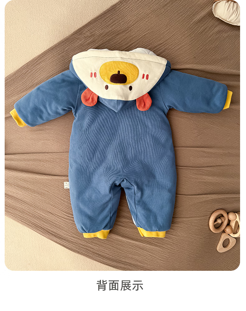 G.duck baby autumn and winter one-piece clothespin cotton warm plus velvet baby cotton coat long-sleeved cartoon super cute little bear thickened going out Hug bear one-piece cotton coat 66cm 10-14Jin Jin is equal to about 0.5 kg