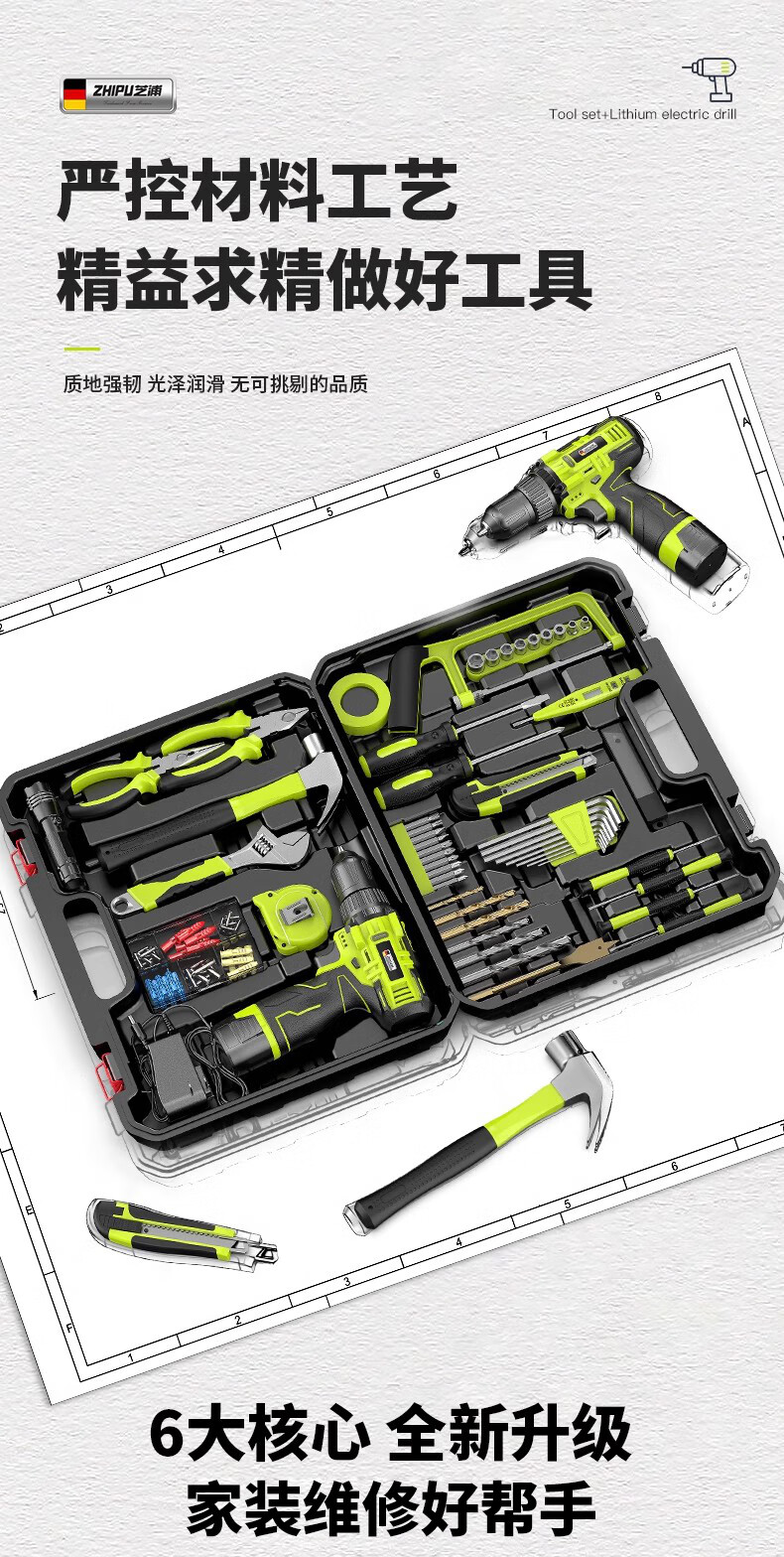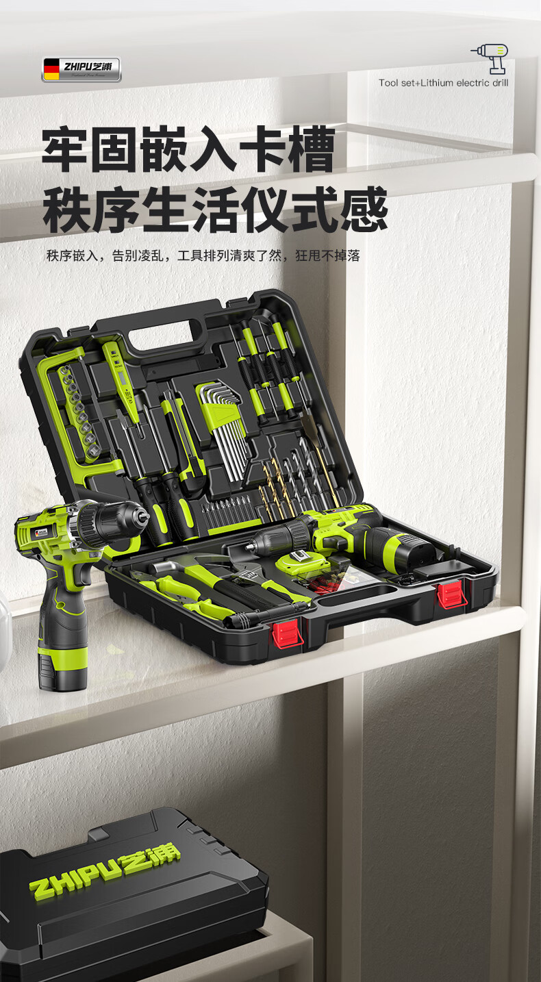 Shibaura Tool Box Set Household Multi-Function Hardware Electrician Woodworking Vehicle Repair Electric Drill Power Tool Box Complete Set Luxury 93-piece Set Home Maintenance Standby +