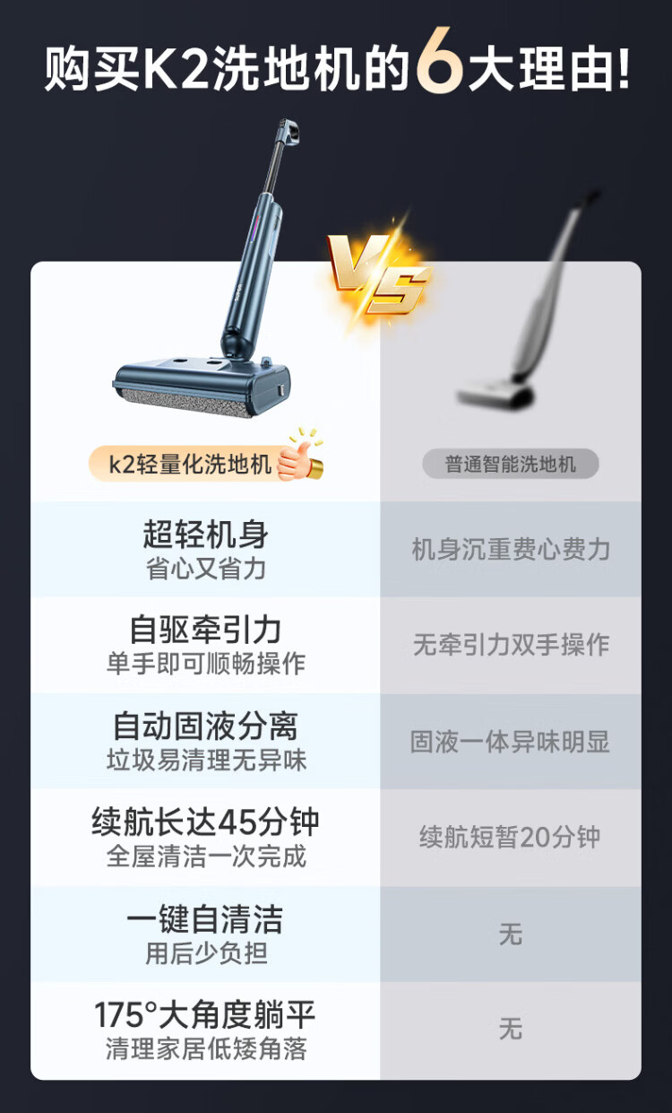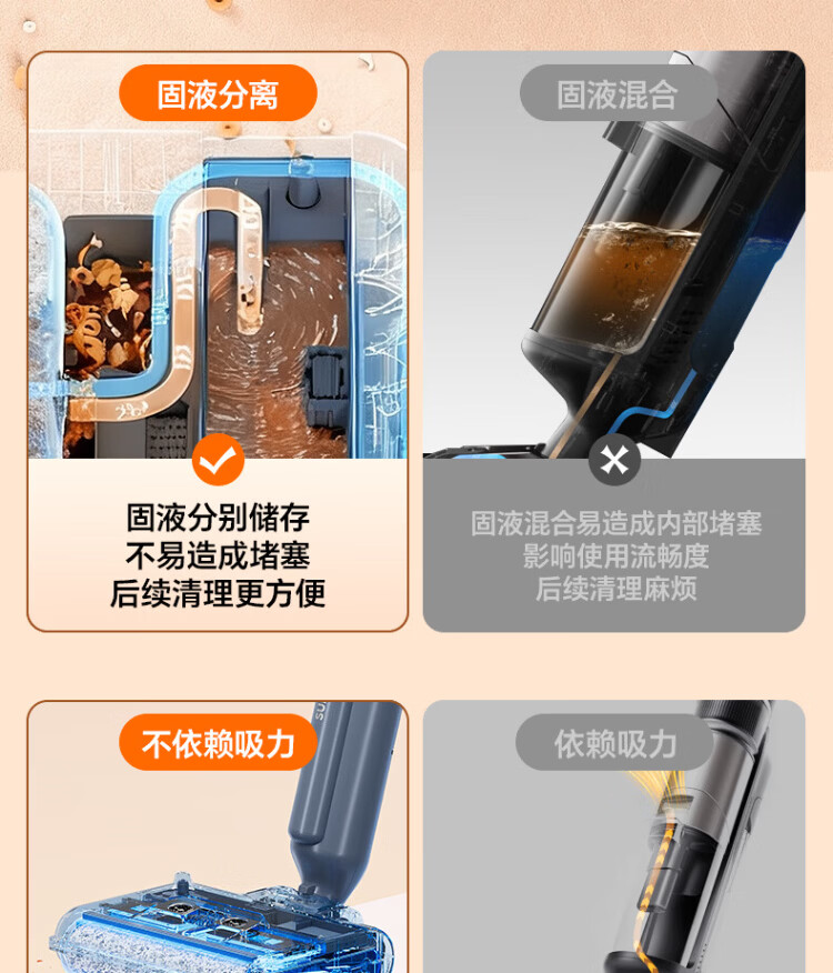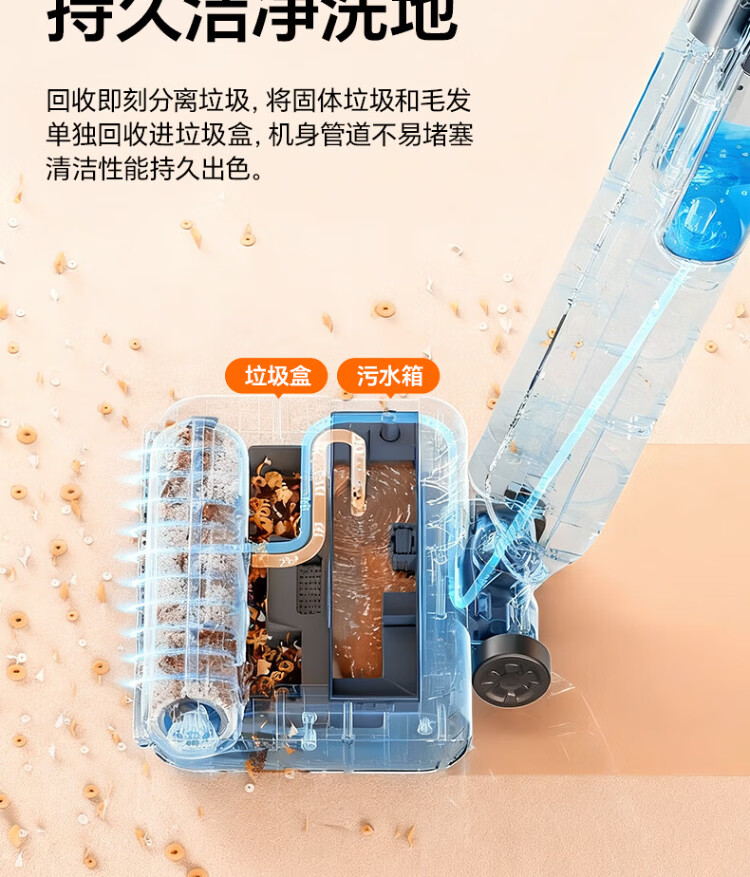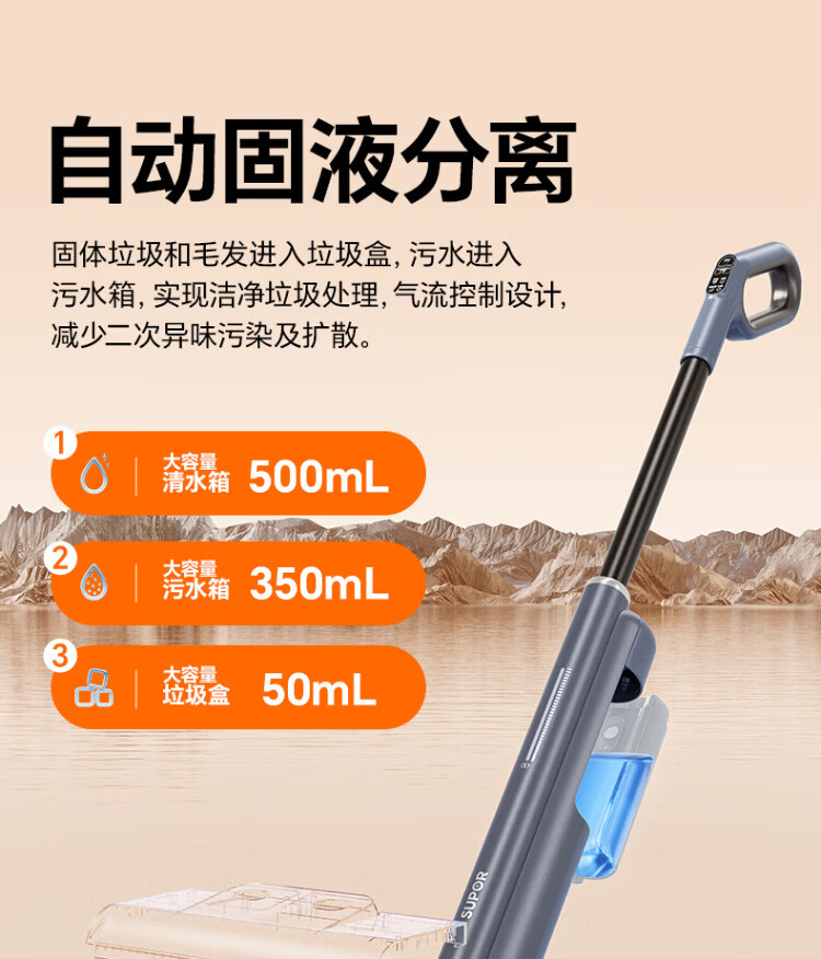 Supor floor washing machine, washing and mopping all-in-one mopping machine, household automatic cleaning, solid-liquid separation, no odor, light sound, lightweight self-traction electric mop EMC-K2 upgraded model - B sweeping, cleaning and mopping three-in-one