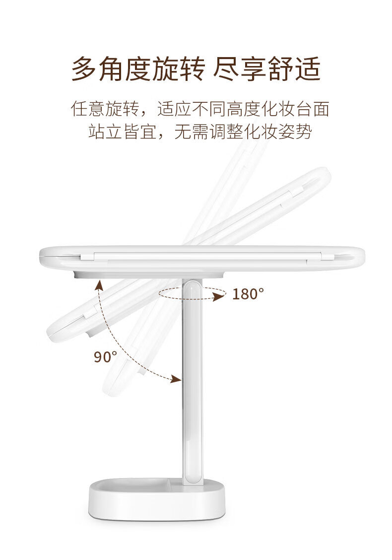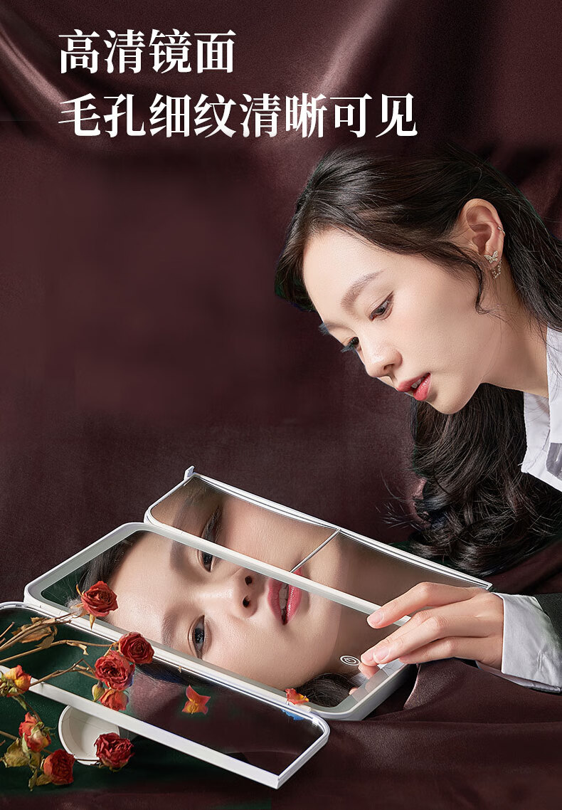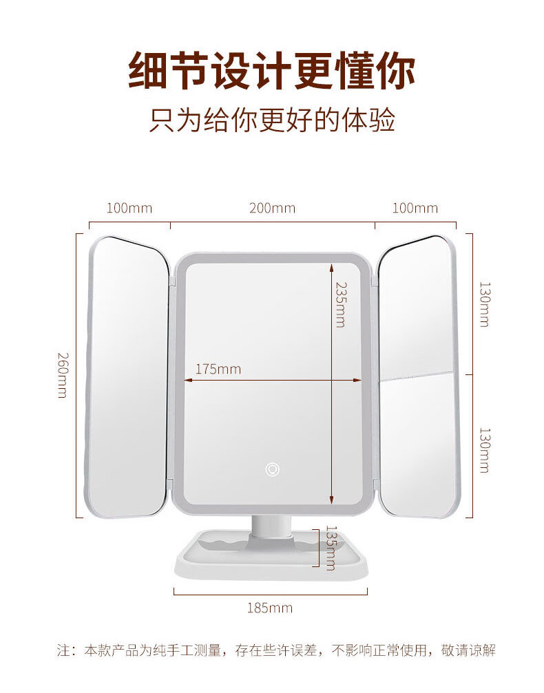 YUBAE化妆镜led带灯补光高清镜子三面折叠化妆镜白色镜子专业化妆镜送女朋友生日礼物 充电升级版·led折叠化妆镜【三色补光灯】 礼盒+礼品袋