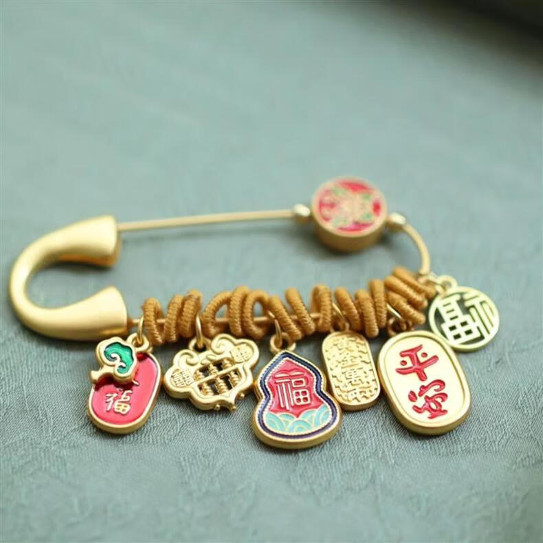 Putuo Mountain Ruyifu brand brooch, ancient sand gold brooch, baby brooch, portable pendant, niche design brooch, real place of delivery: Putuo, Zhoushan