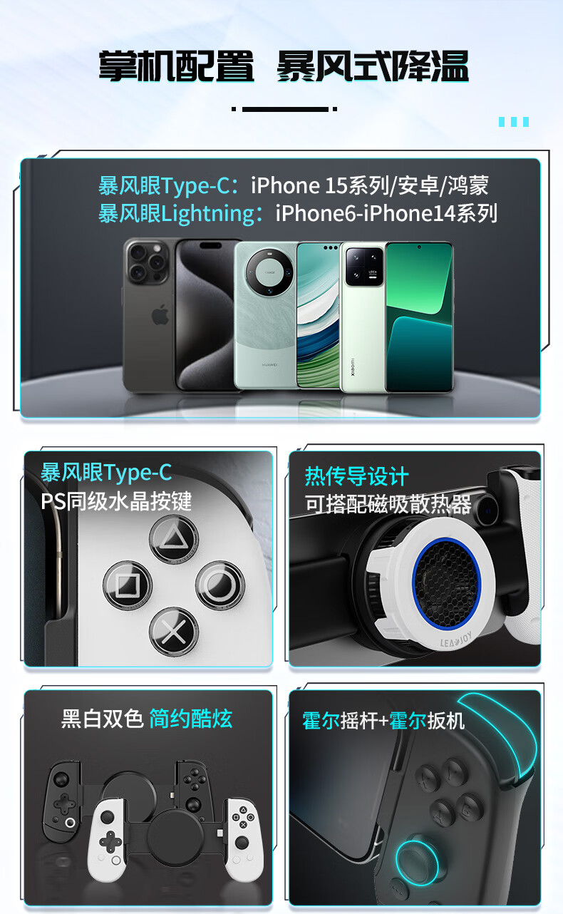 Dynamic fingertips LEADJOY Eye of the Storm M1C+ stretch handle Android Apple Delta mobile peripherals Absolute Zero DNF mobile game King Genshin Impact Zero mobile game Eye of the Storm M1C+ game handle