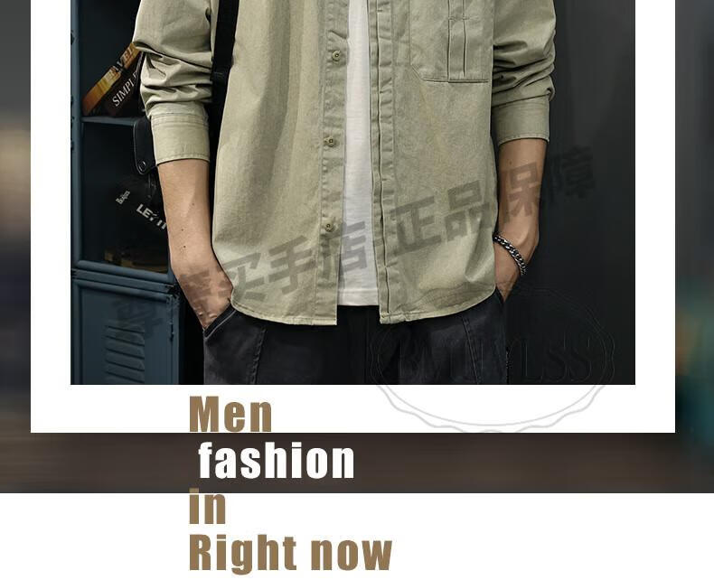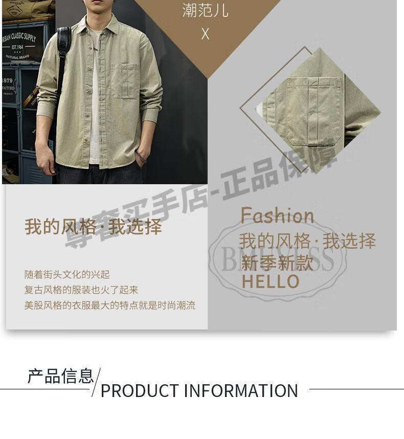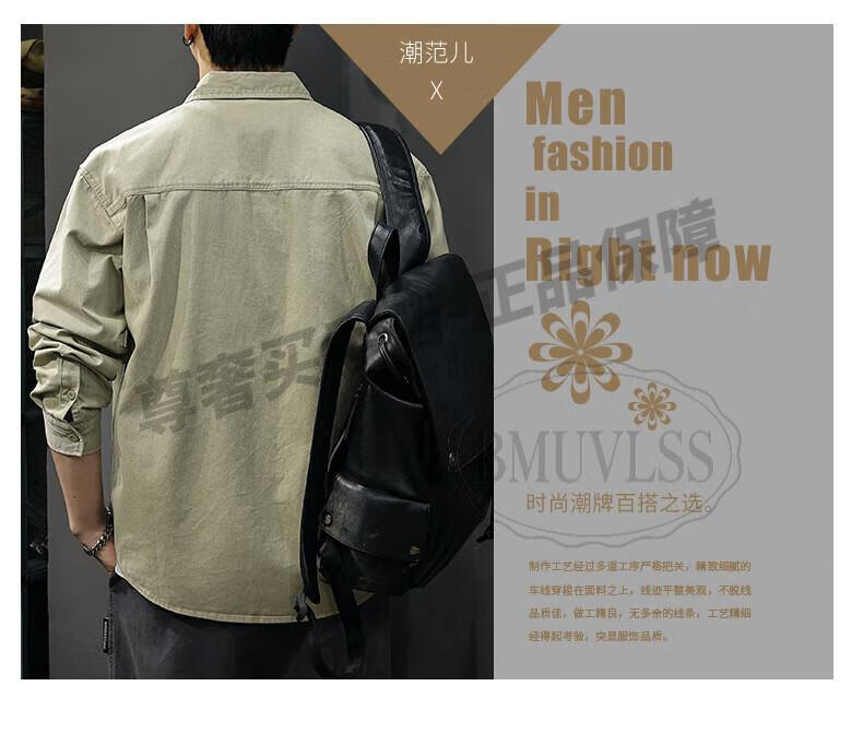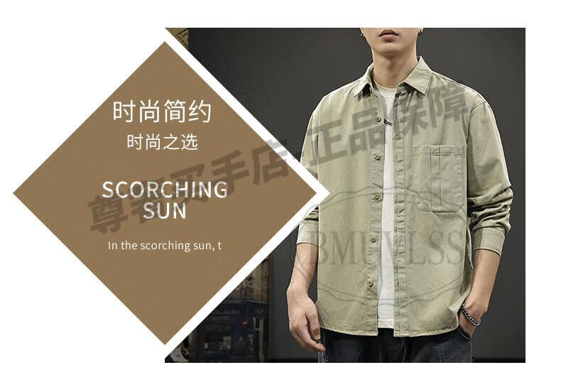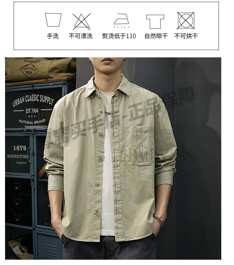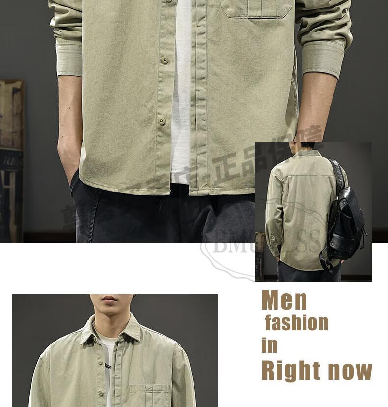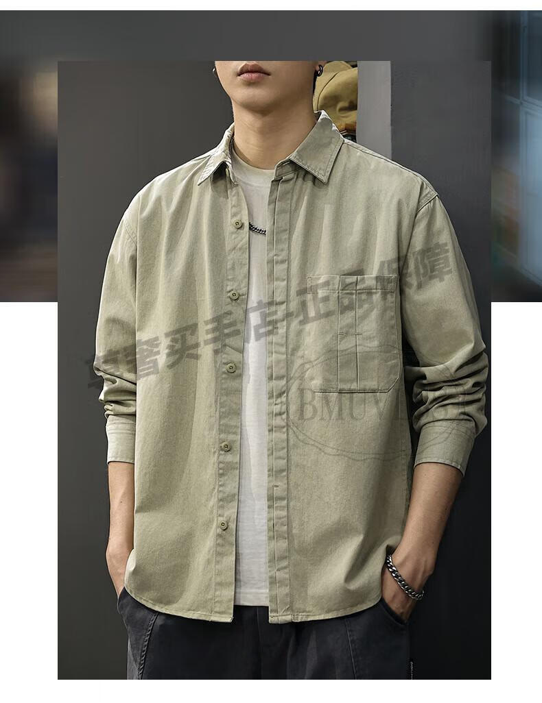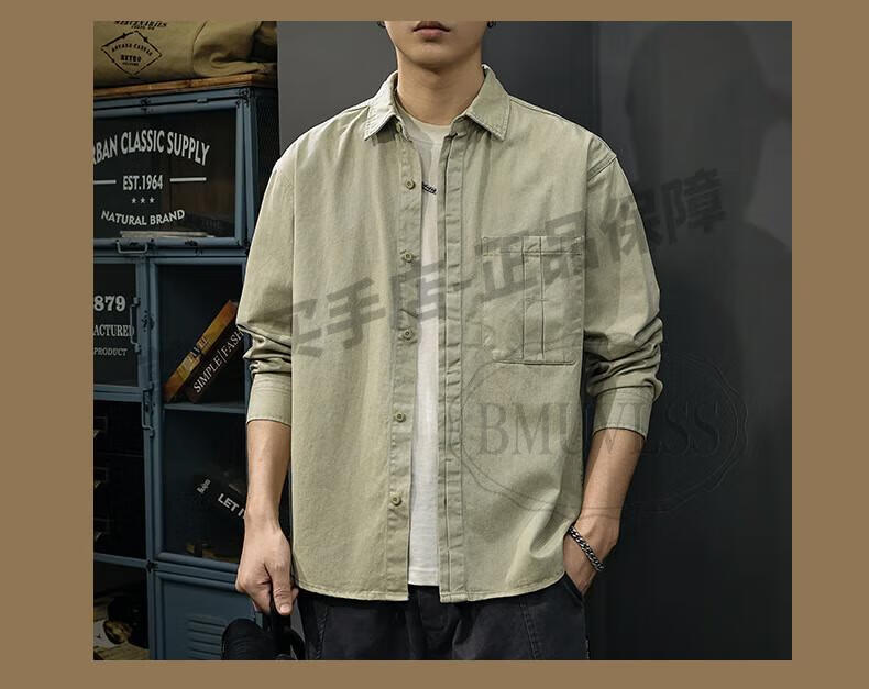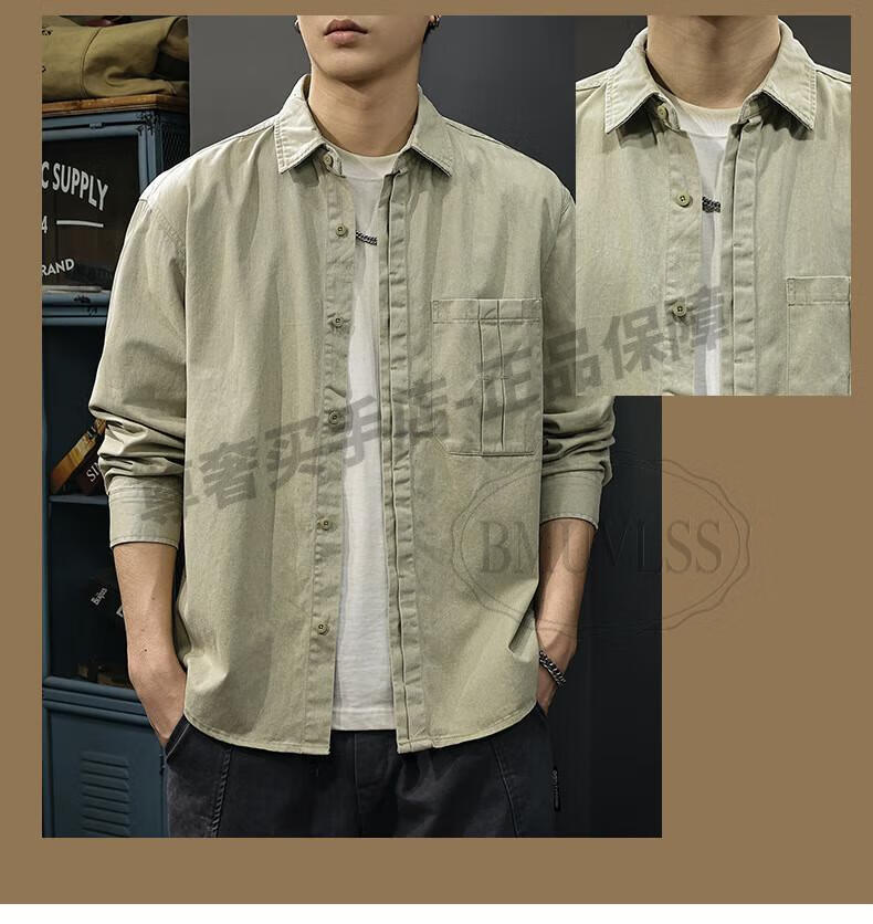 Bmuvlss high-end brand men's American retro long-sleeved shirt men's new autumn style loose youth casual top men's khaki XL weight 140-160Jin Jin equals 0.5 kg