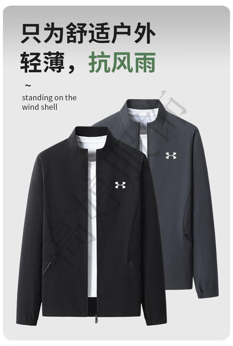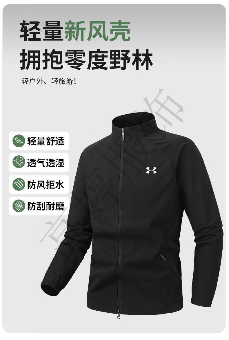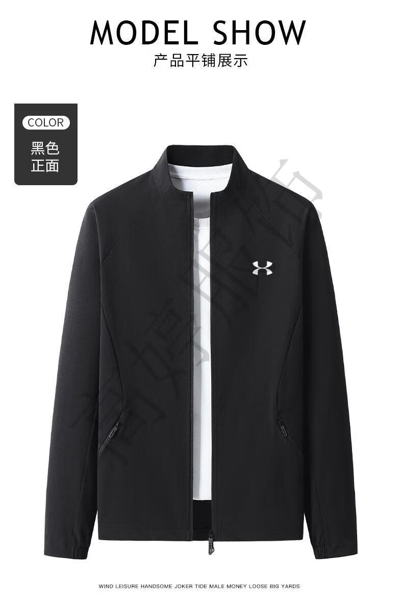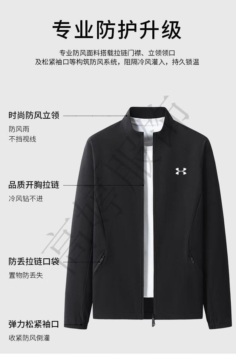 Under Armor Sports Stand Collar Jacket Men's 2025 New Outdoor Cycling Clothing Casual Running Stretch Windproof Jacket Black L
