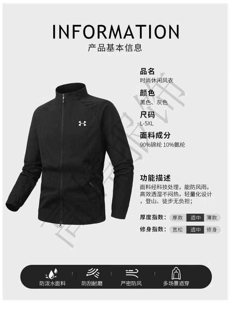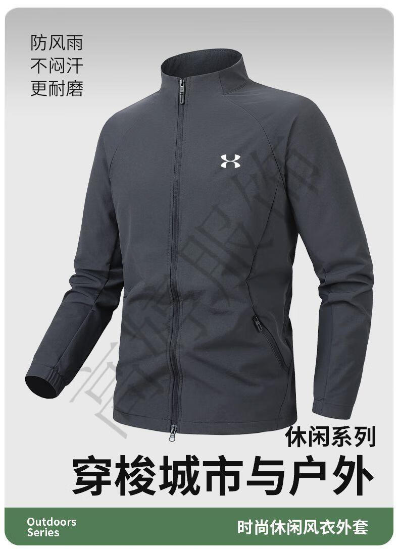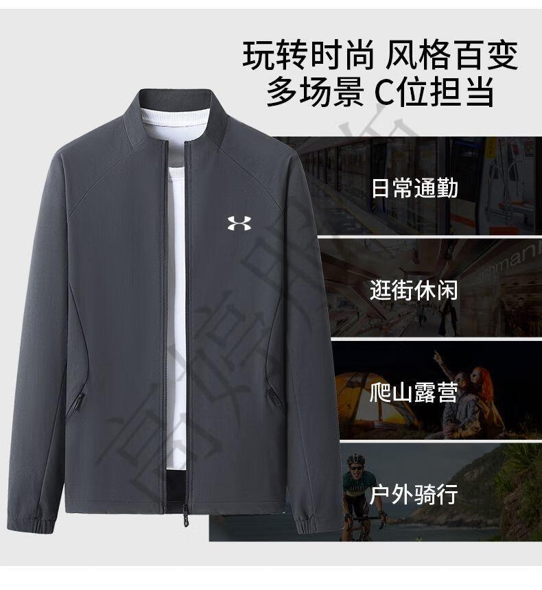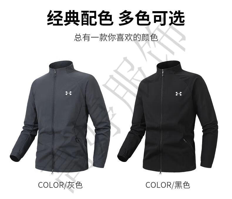 Under Armor Sports Stand Collar Jacket Men's 2025 New Outdoor Cycling Clothing Casual Running Stretch Windproof Jacket Black L