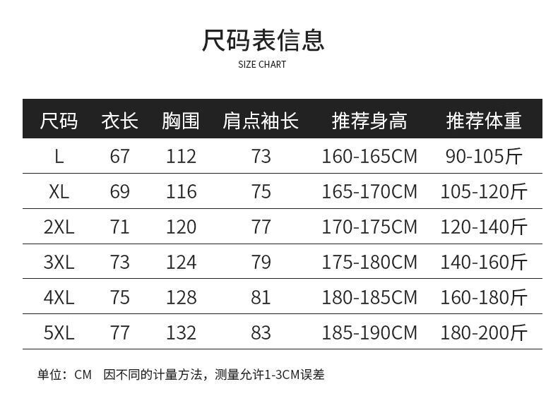 China (cm) 165 / 88-90 170 / 96-98 175 / 108-110 180 / 118-122 185 / 126-130