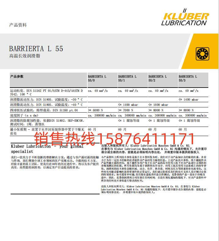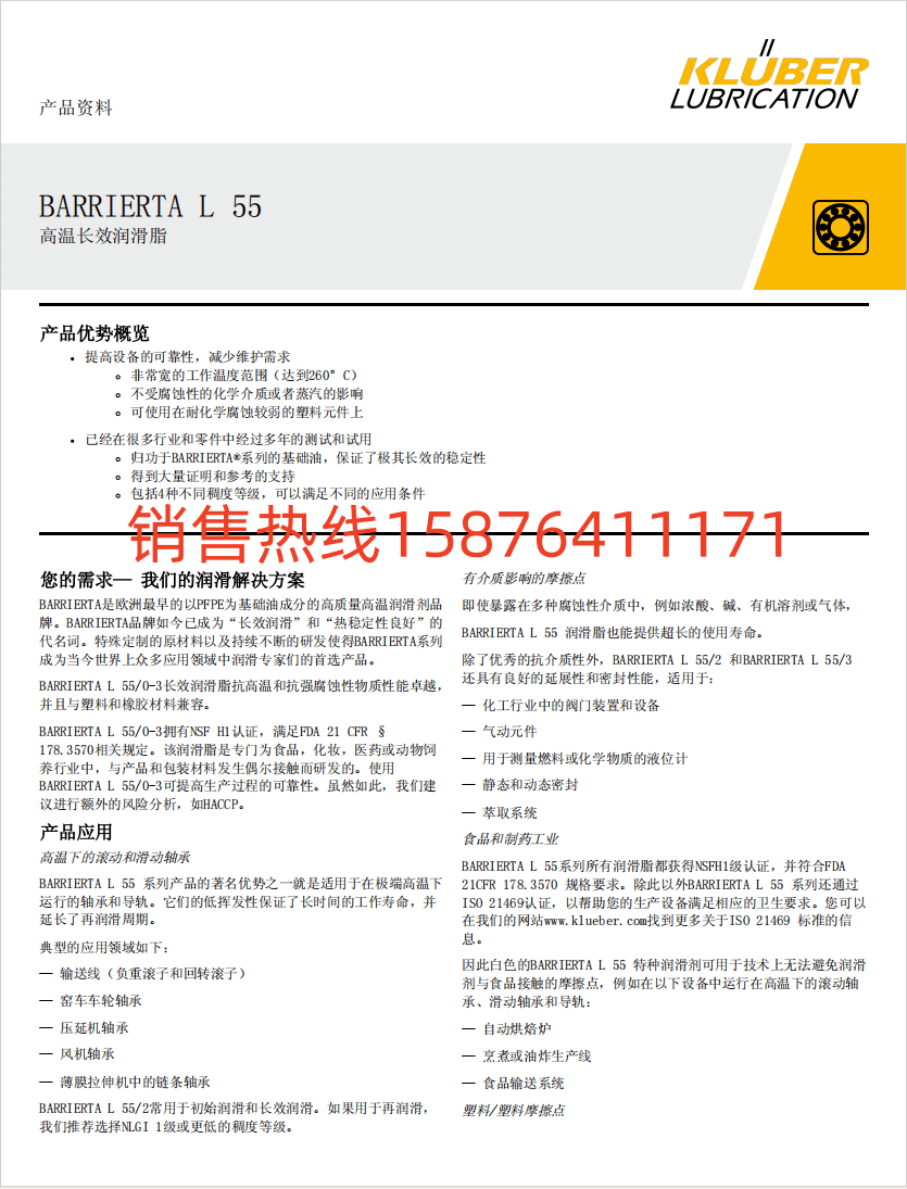 Kluber BARRIERTA L55/2/0/1/3 L25DL GR AR555 perfluoropolyether high temperature grease domestic NBU15 1KG