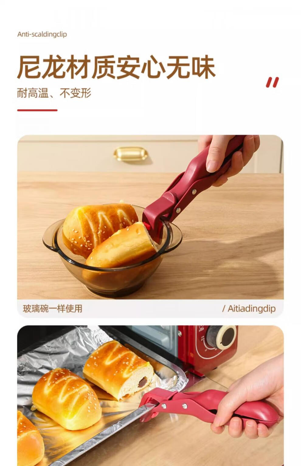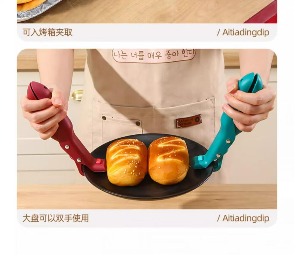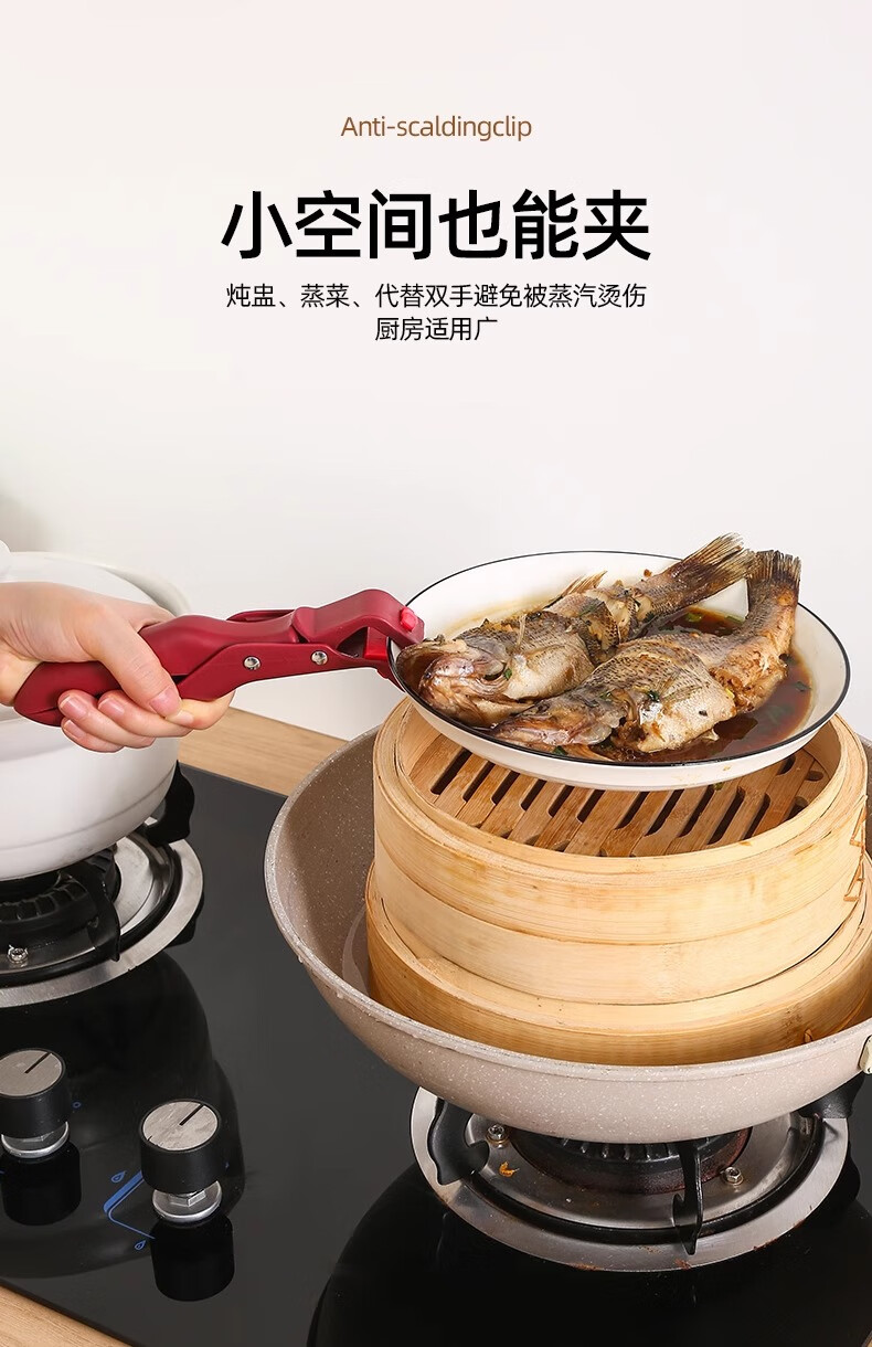 Anti-scalding bowl tongs, Swiss kitchen tongs for pots and plates, microwave silicone vegetable tongs, steaming pot artifact Swiss anti-scalding bowl tongs - carmine red + azurite green