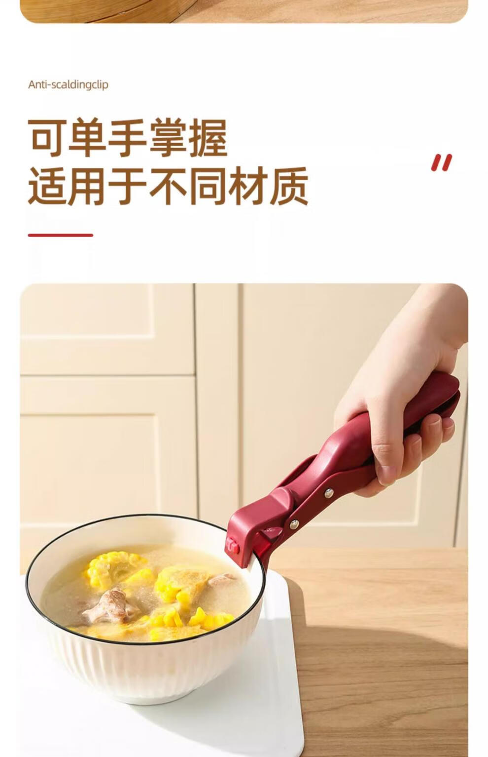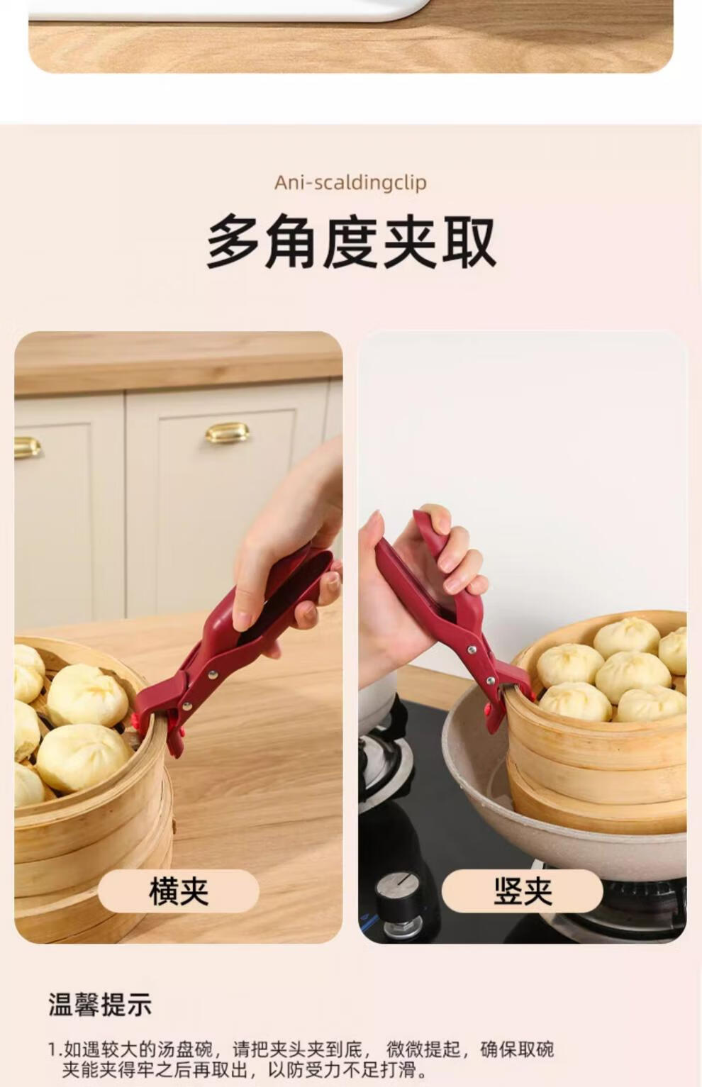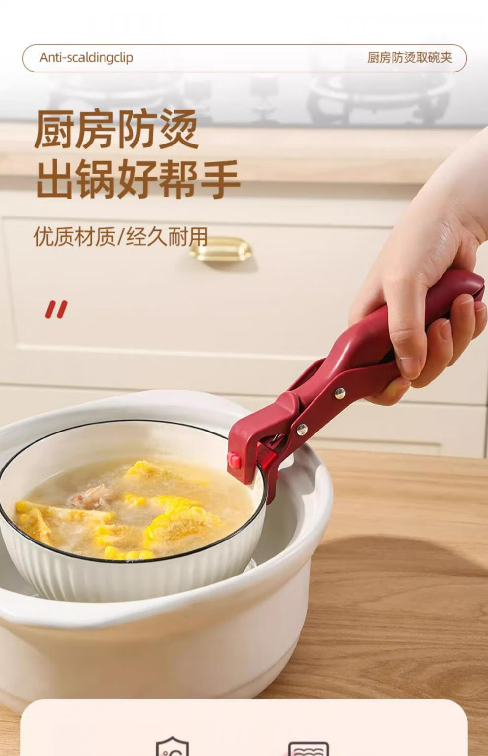 Anti-scalding bowl tongs, Swiss kitchen tongs for pots and plates, microwave silicone vegetable tongs, steaming pot artifact Swiss anti-scalding bowl tongs - carmine red + azurite green