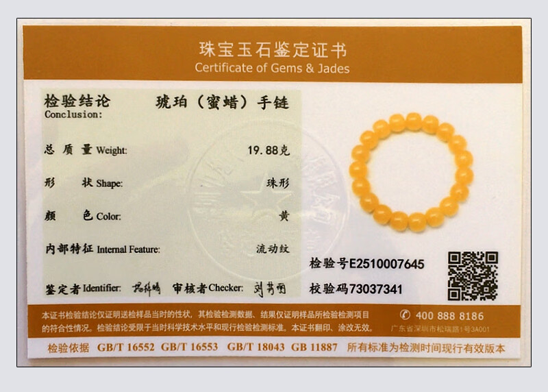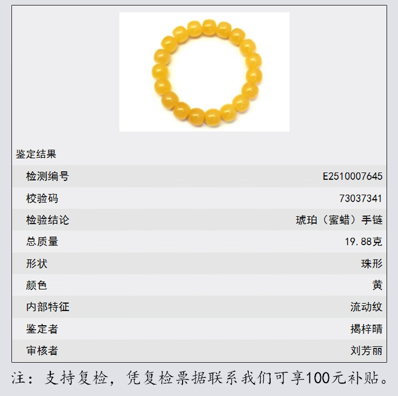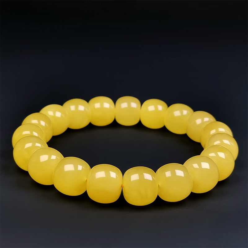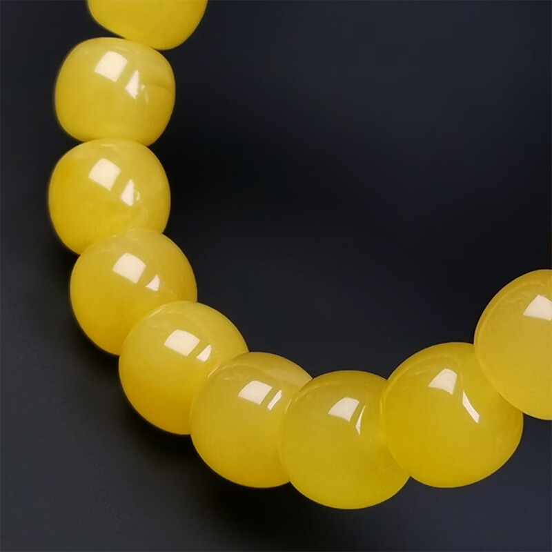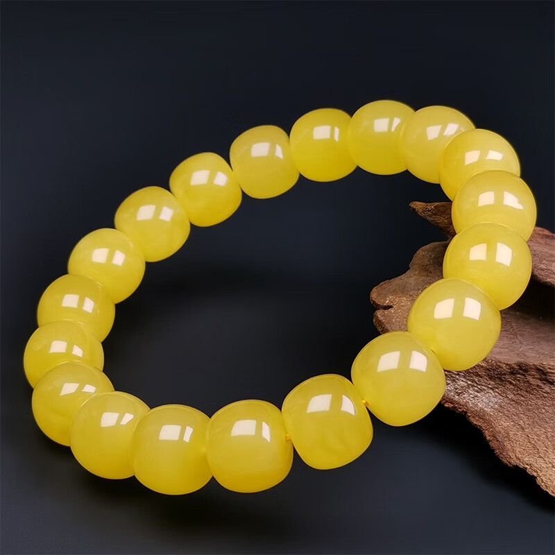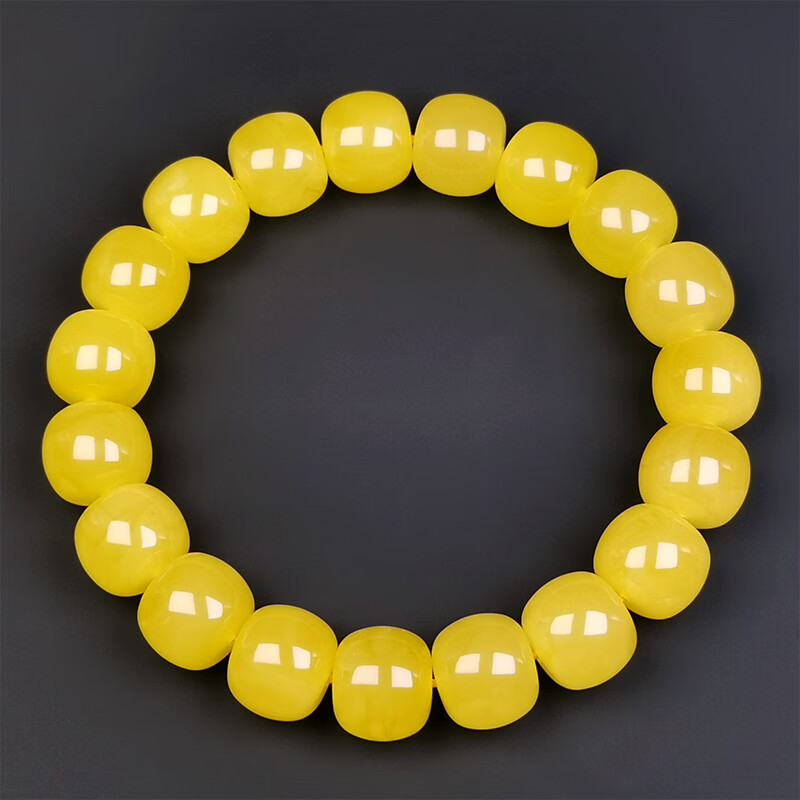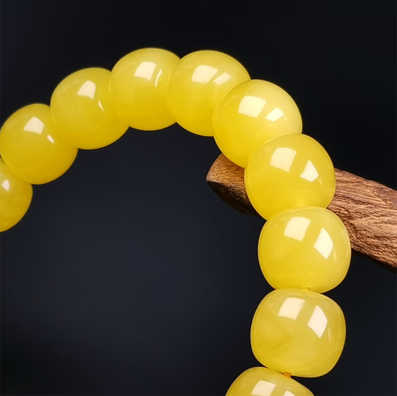 Hupai, one object, one picture, one certificate, natural beeswax bracelet, barrel bead bracelet, chicken fat yellow, Russian raw ore, no cracks, bracelet 19.88g, 12*10.5mm