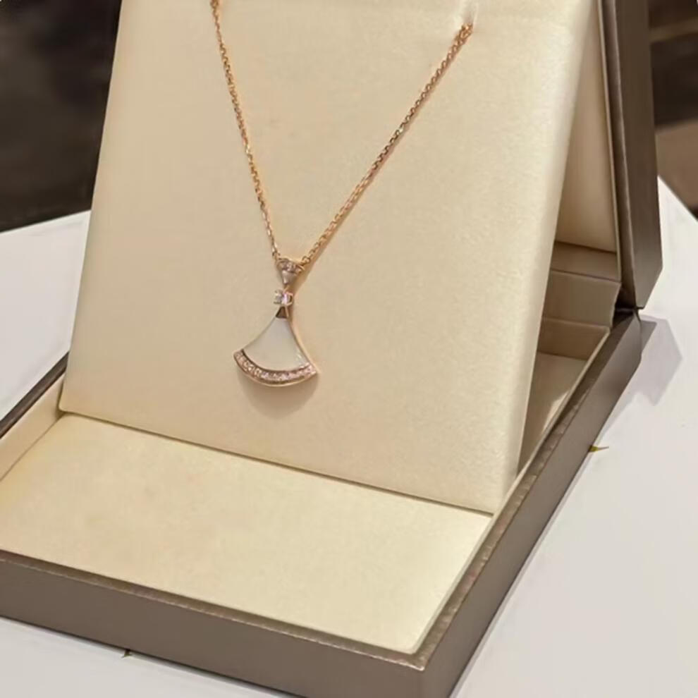 Fat Donglai same style 18k rose gold pendant size skirt necklace for women full of diamonds white mother-of-pearl carnelian fan-shaped pink full of diamonds rose gold large skirt