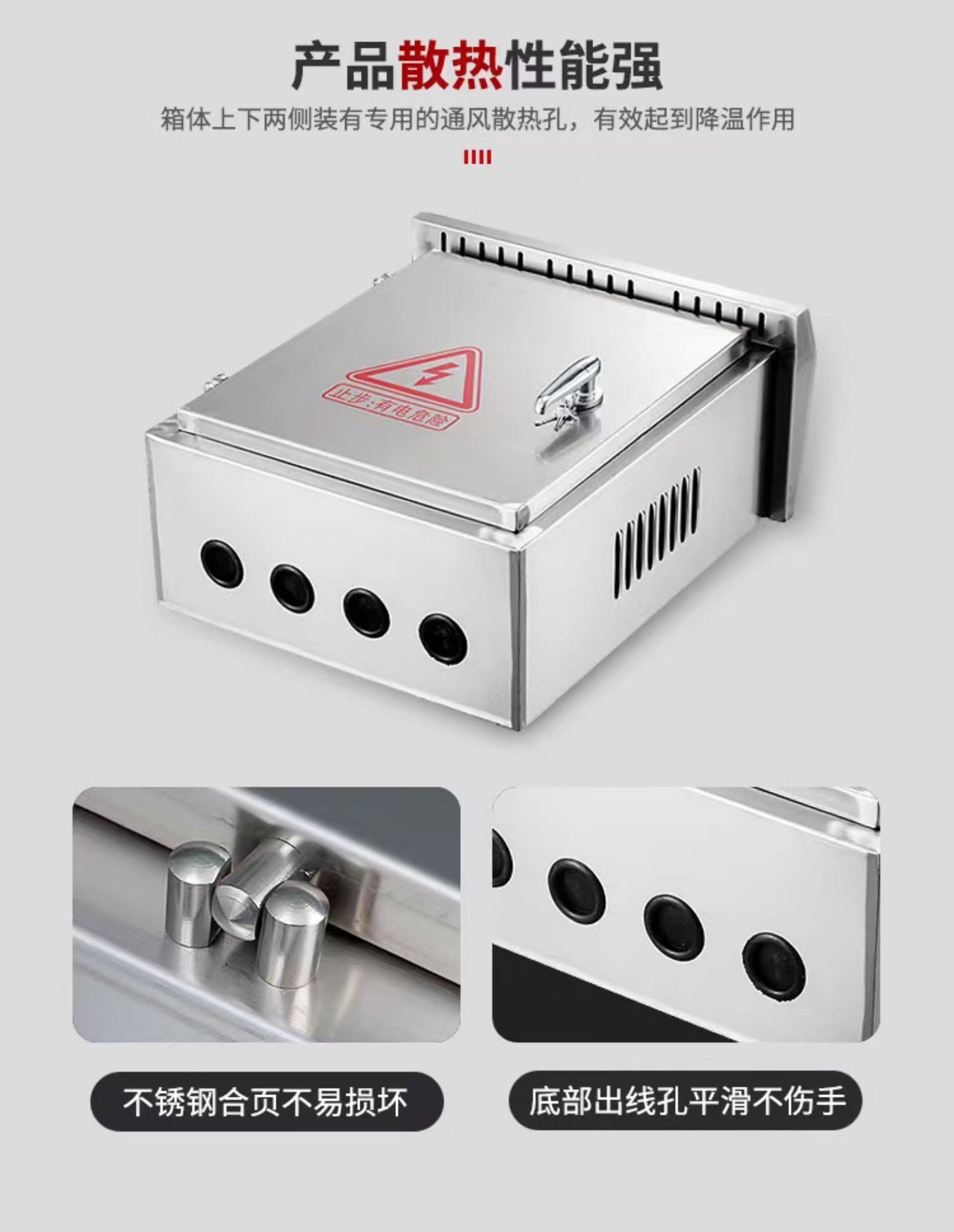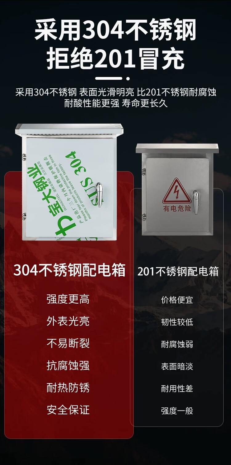 Distribution box thickened rainproof electric control box outdoor monitoring box power box distribution cabinet complete set 304 outdoor stainless steel thickened version 400*300*170 304 horizontal box 0.8