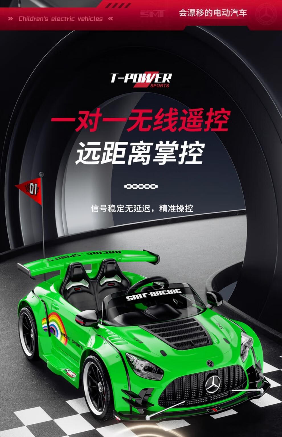 Xiong Yan Mercedes-Benz children's electric car, children's sports car, four-wheel remote control car, baby stroller, baby toy car, flagship, driftable, cherry blossom pink + silent motor, electric drive
