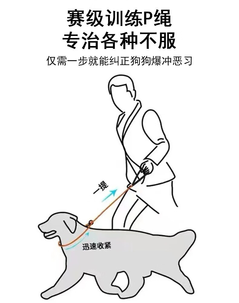 Jiaji p rope explosion-proof dog leash training border shepherd golden retriever corgi p chain small medium and large dog walking leash dog training integrated p rope black (length 1.4m)