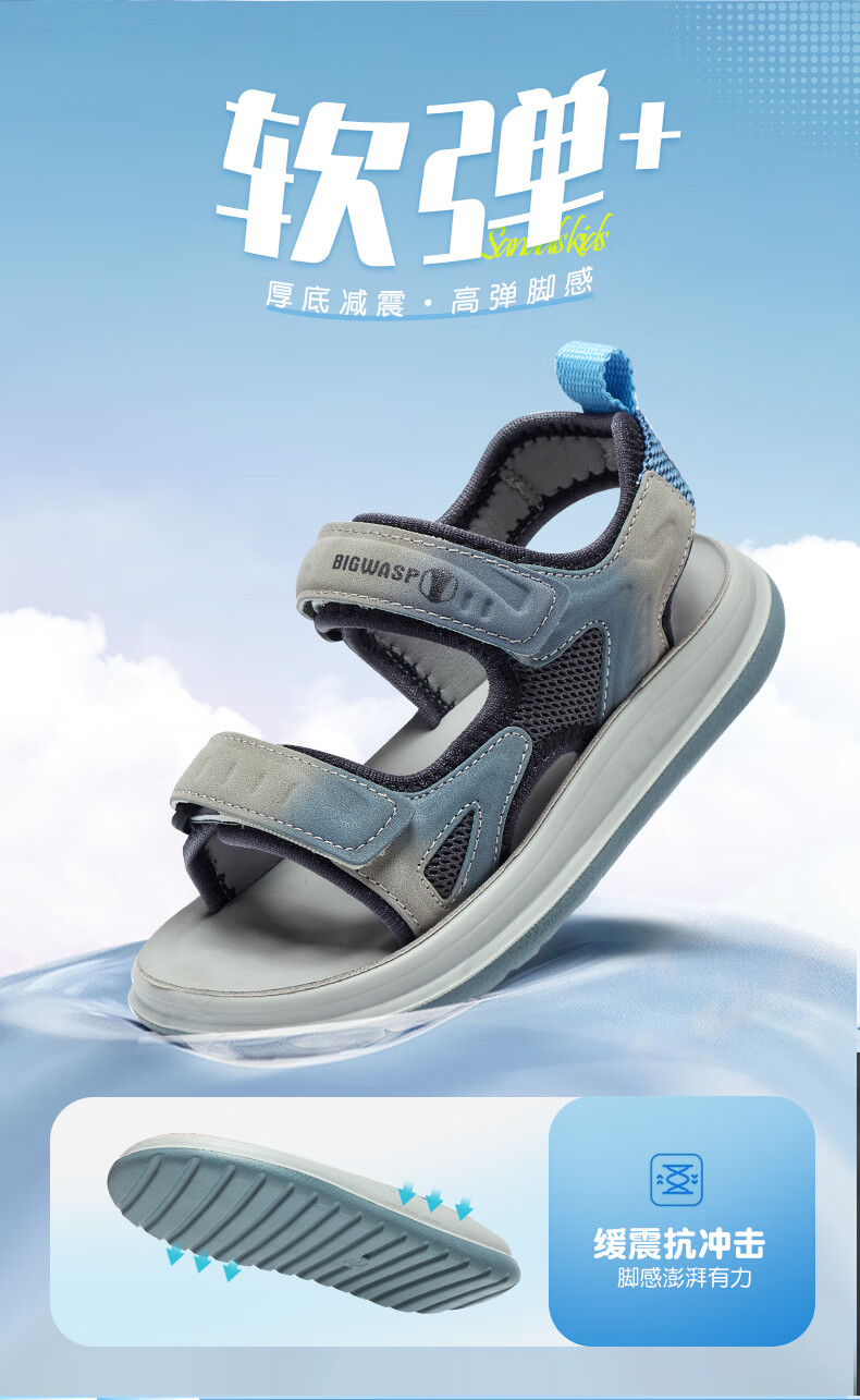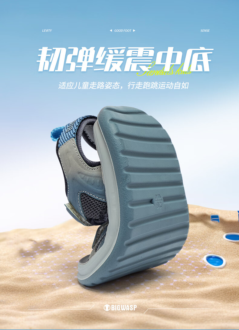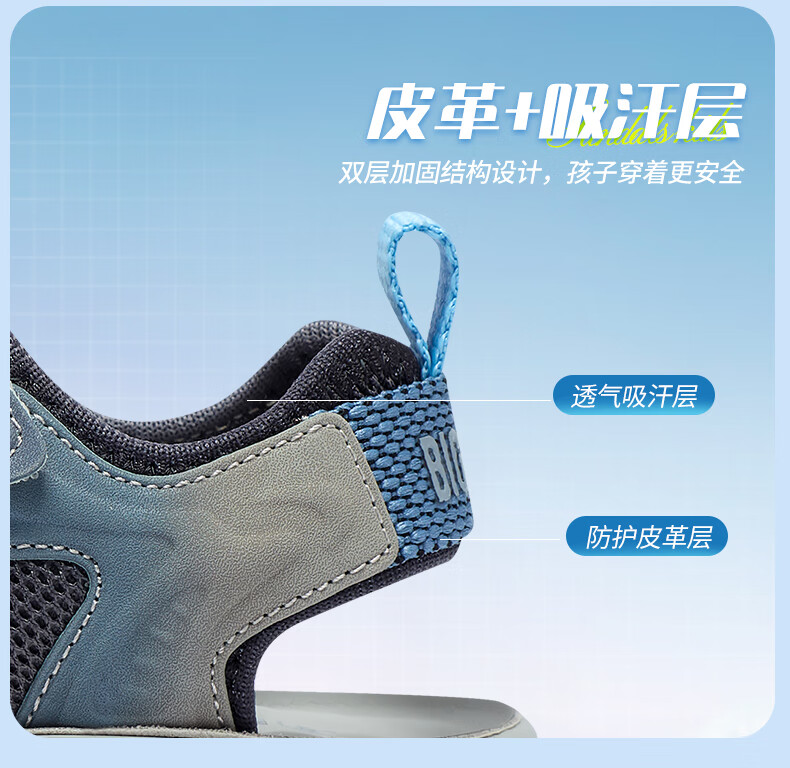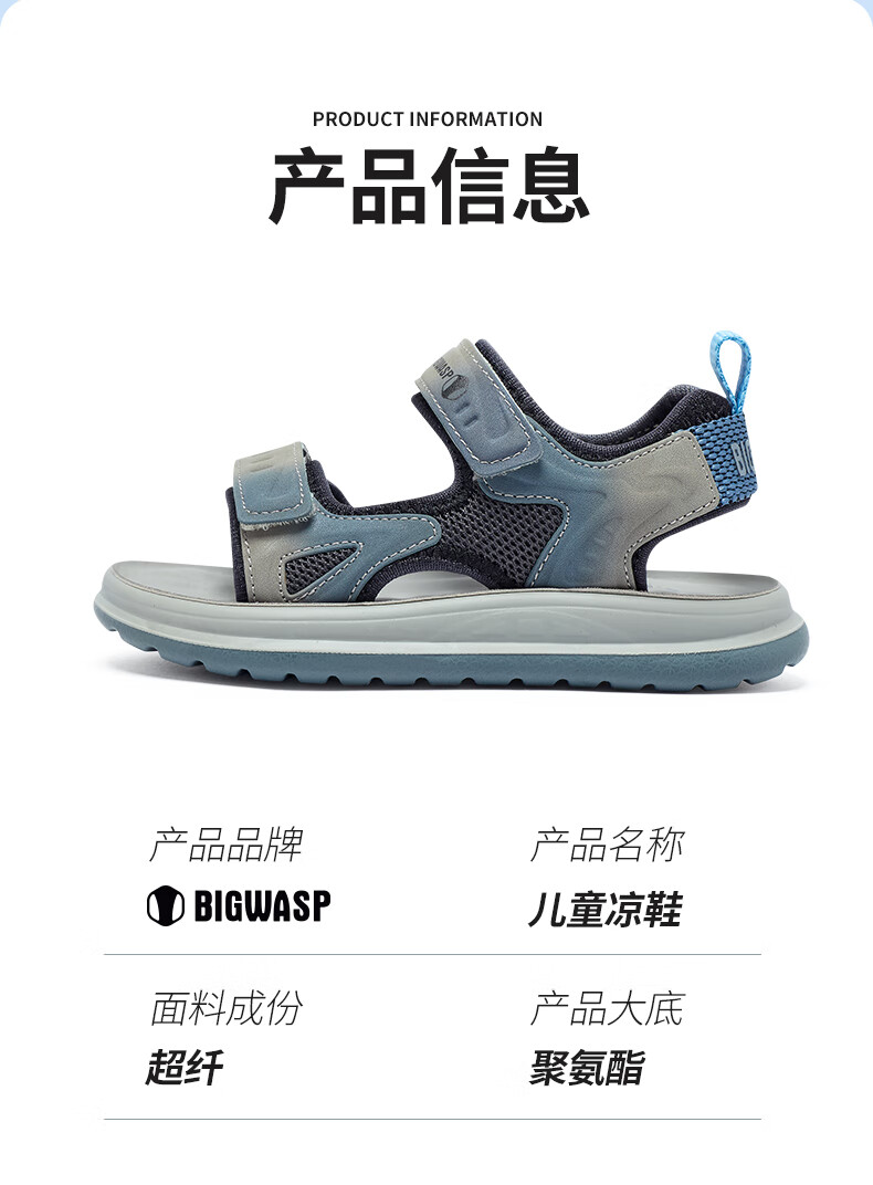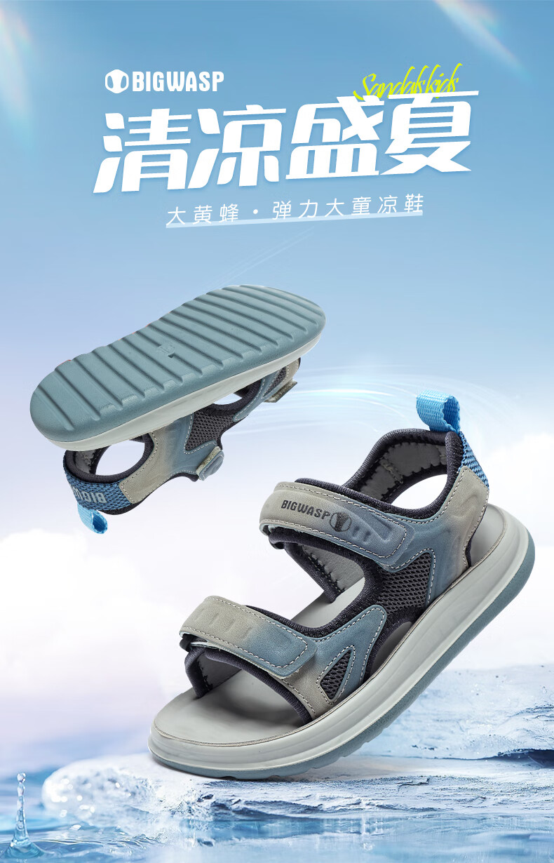 Bumblebee children's shoes, elementary school children's beach shoes, summer open-toe non-slip boys' 2025 new boy sandals, gray sky blue 26_inner length 18_suitable for foot length 17