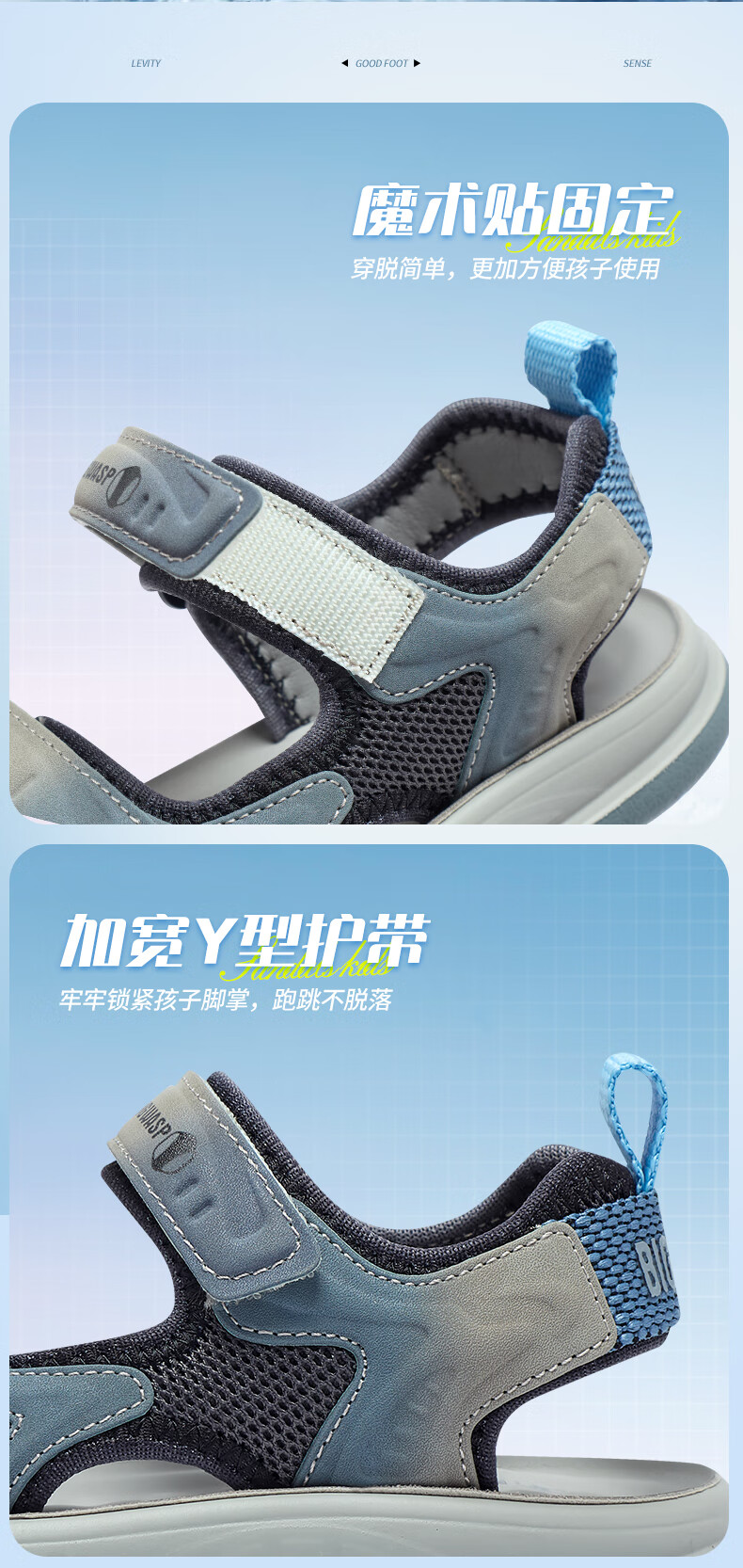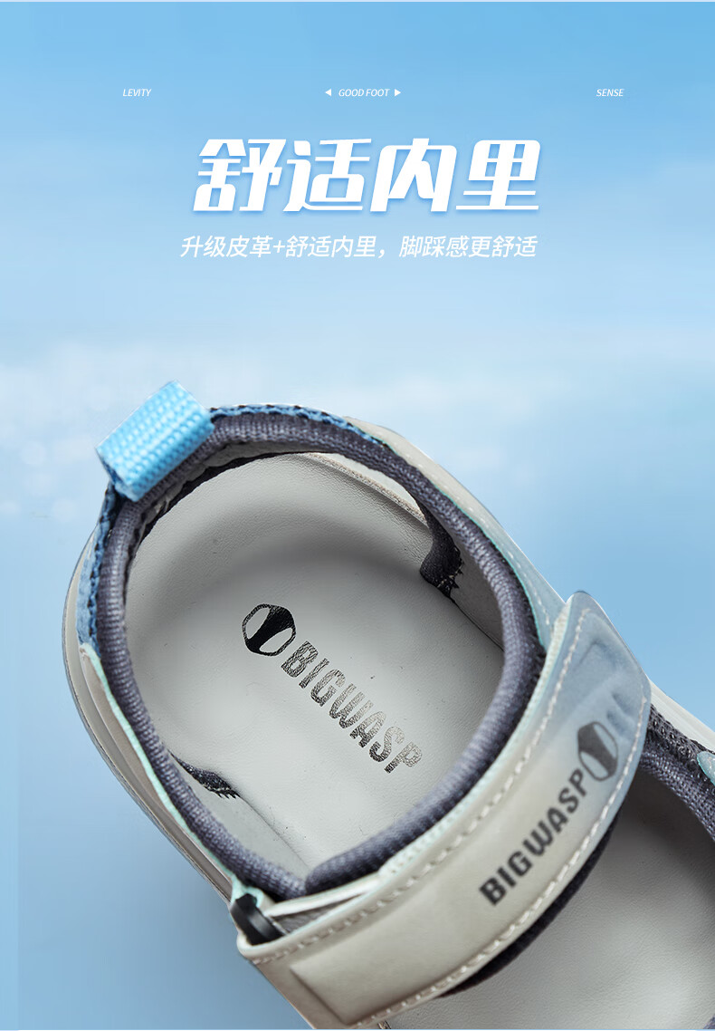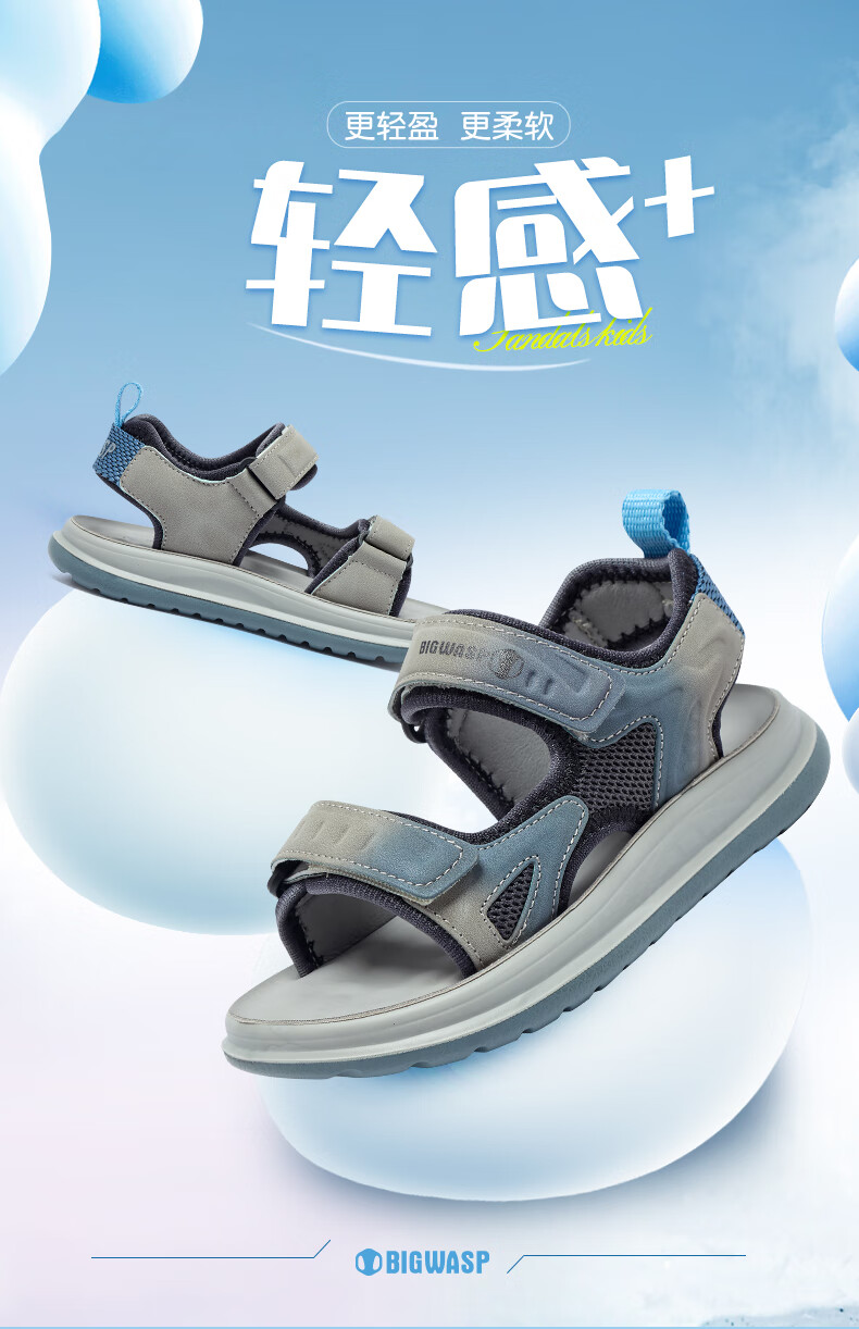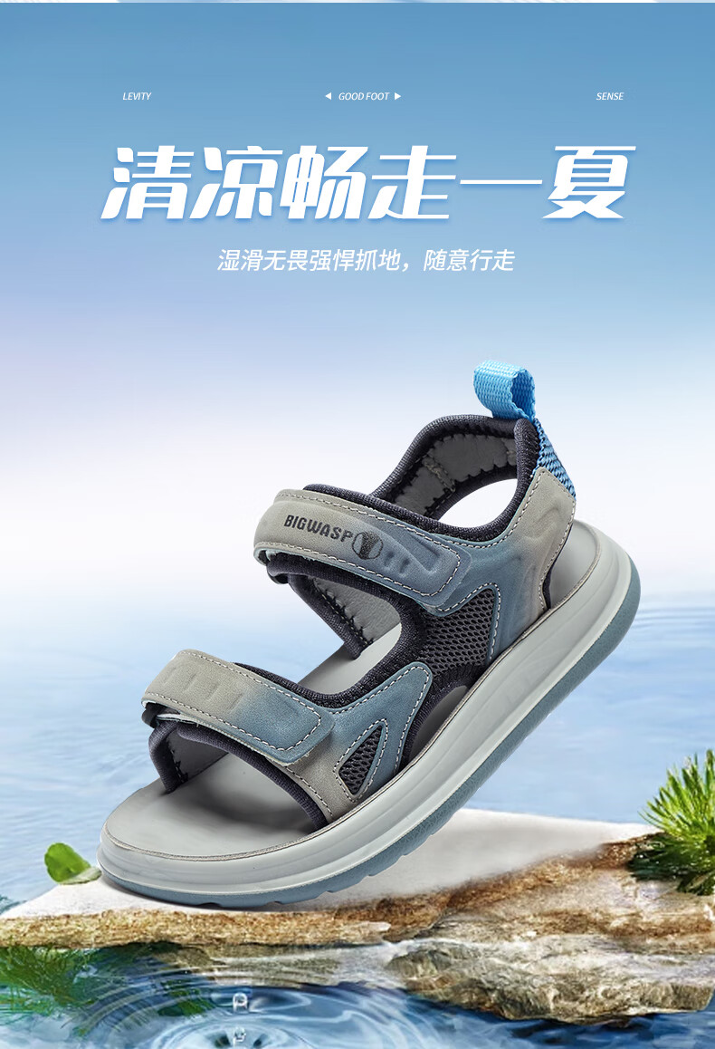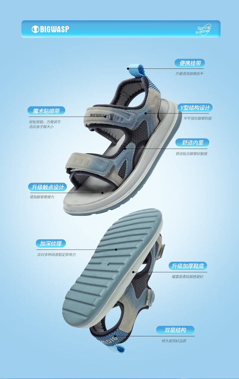 Bumblebee children's shoes, elementary school children's beach shoes, summer open-toe non-slip boys' 2025 new boy sandals, gray sky blue 26_inner length 18_suitable for foot length 17
