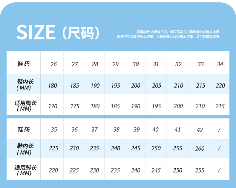 China (cm) 36 - 37 38 - 39 40 - 42 43 - 44 45 - 47