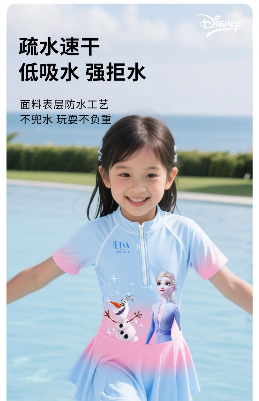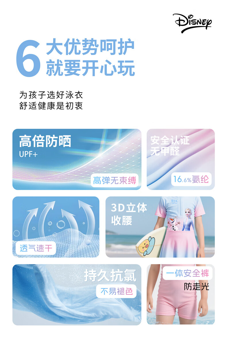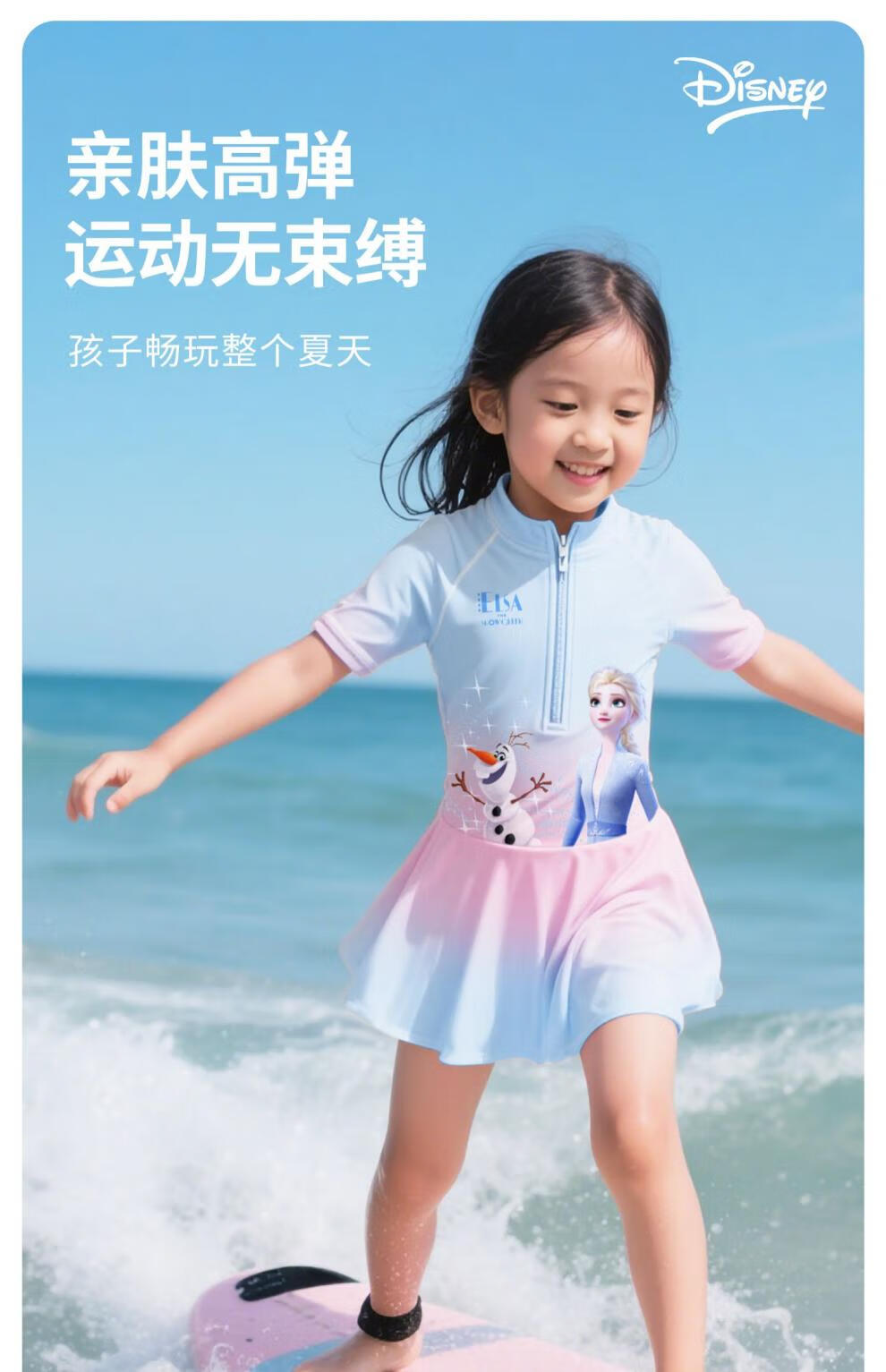 Winter Fog Disney Children's Swimsuit Girls 2025 New Sun Protection Swimsuit Little Girls Big Kids Baby Elsa Swimsuit Spider-Man Dark Blue Swimsuit 110 Height 90-100cm Weight 20-28Jin Jin is equal to 0.5 kg