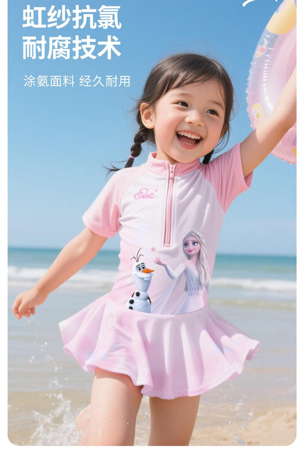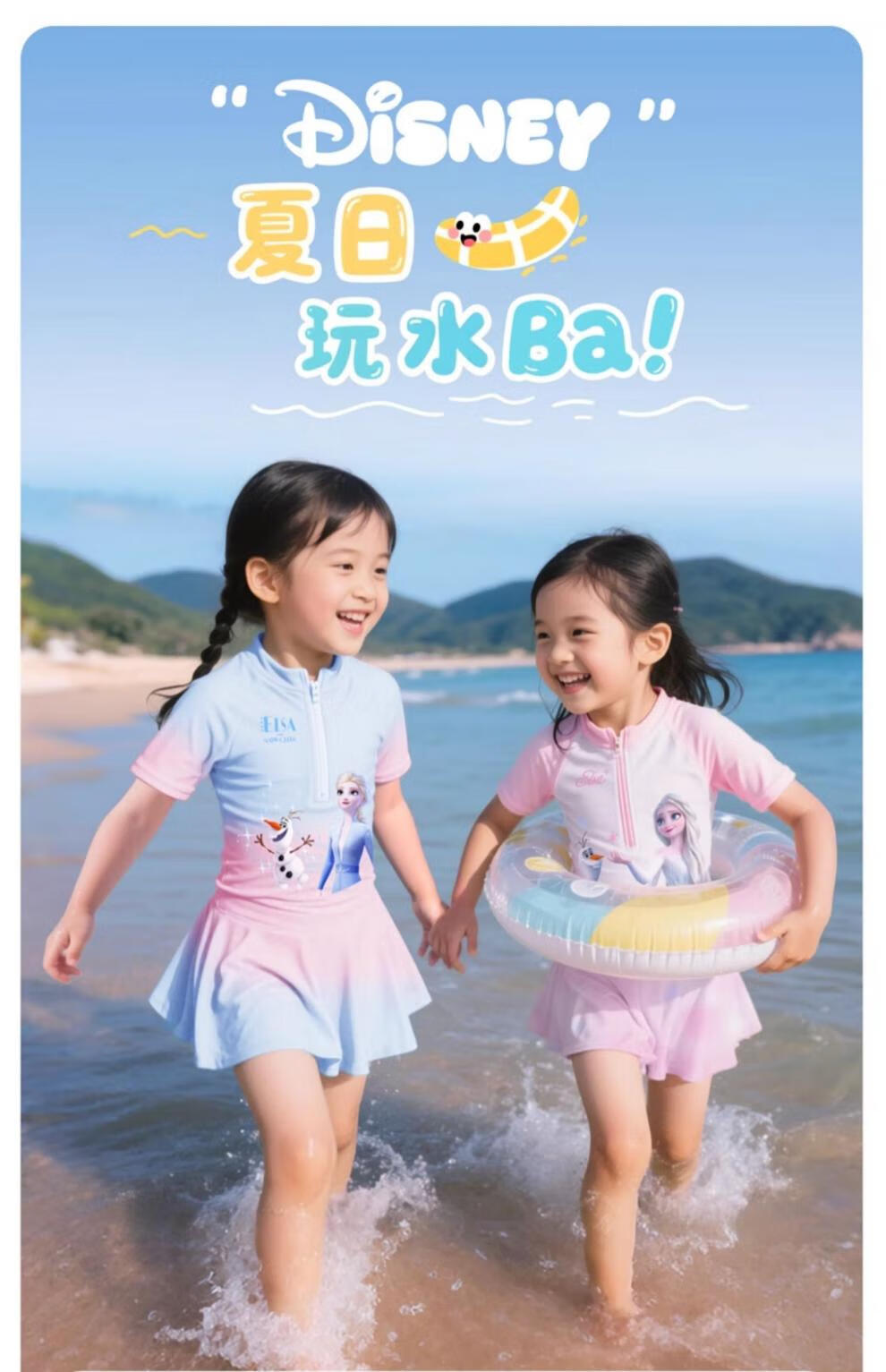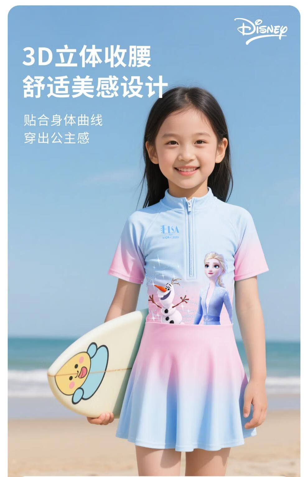 Winter Fog Disney Children's Swimsuit Girls 2025 New Sun Protection Swimsuit Little Girls Big Kids Baby Elsa Swimsuit Spider-Man Dark Blue Swimsuit 110 Height 90-100cm Weight 20-28Jin Jin is equal to 0.5 kg