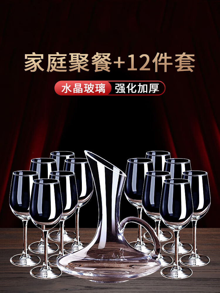 Minghuitong 12-piece home dinner red wine glass set crystal goblet decanter wine glass burgundy wj family mass-selling pack 350 crystal 12-piece set