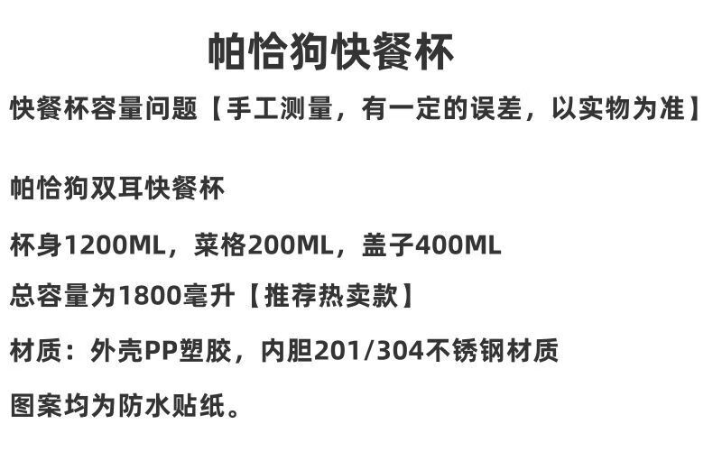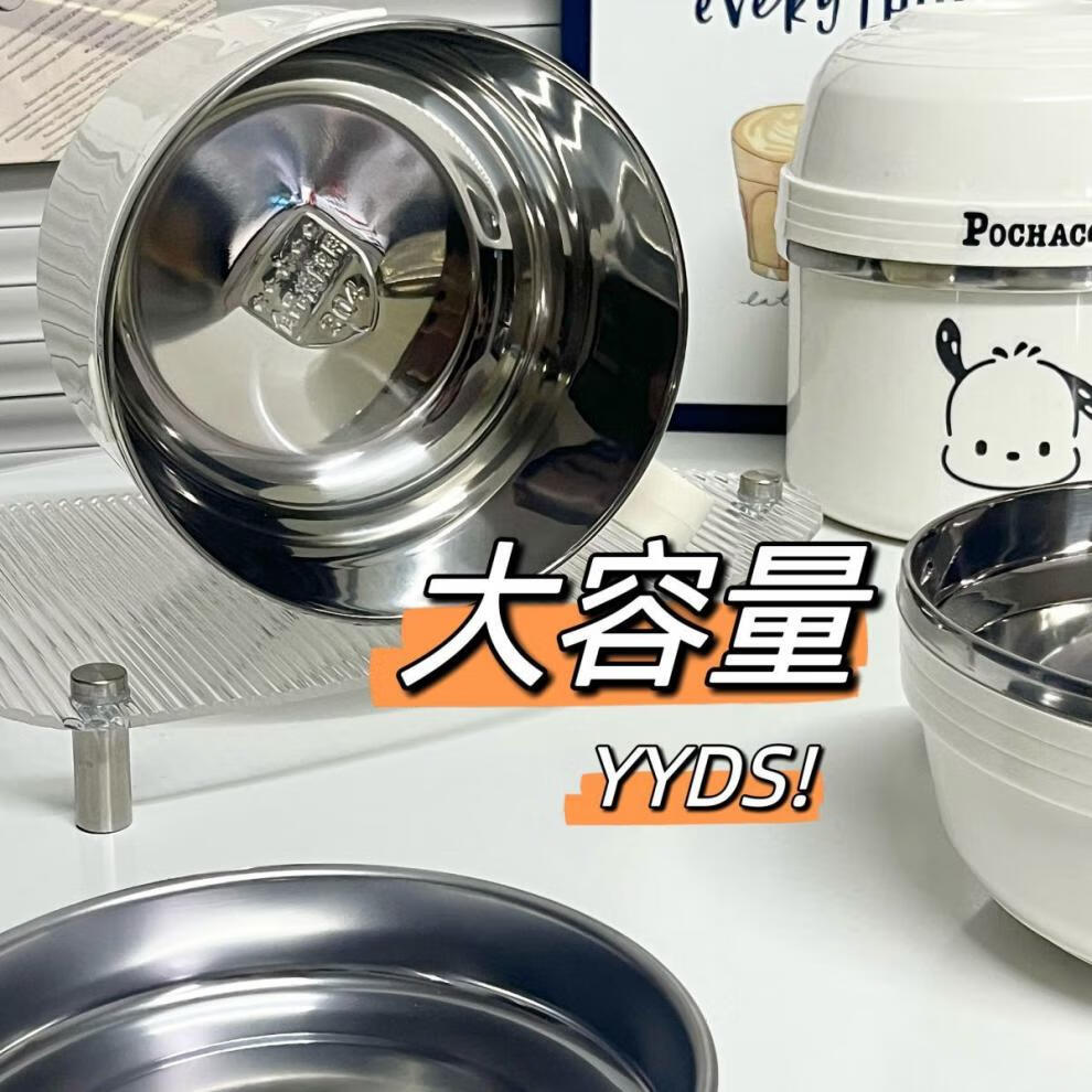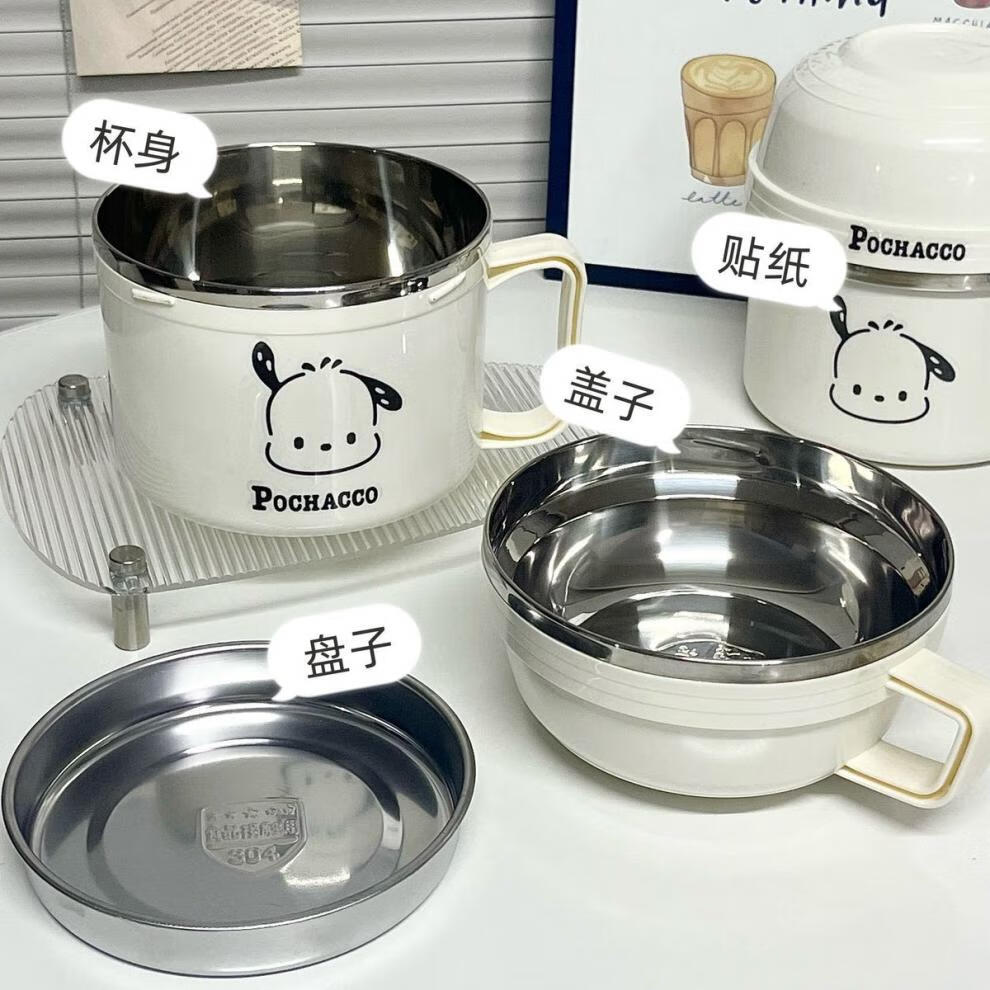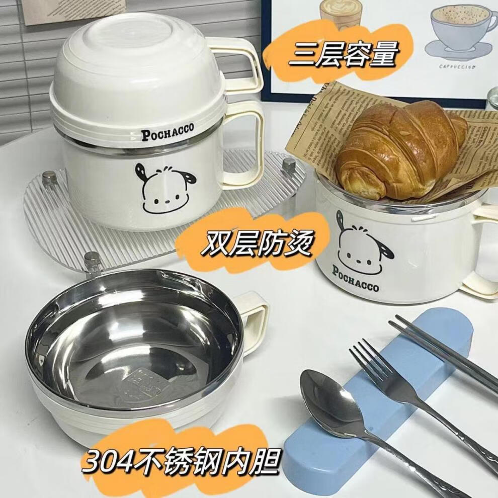 Ye Yu 304 stainless steel insulated lunch box large capacity instant noodle bowl with lid bowl and chopsticks set for student dormitory double-eared pure white fast food cup 201 stainless steel double layer meal cup 1800ML + Pacha dog sticker