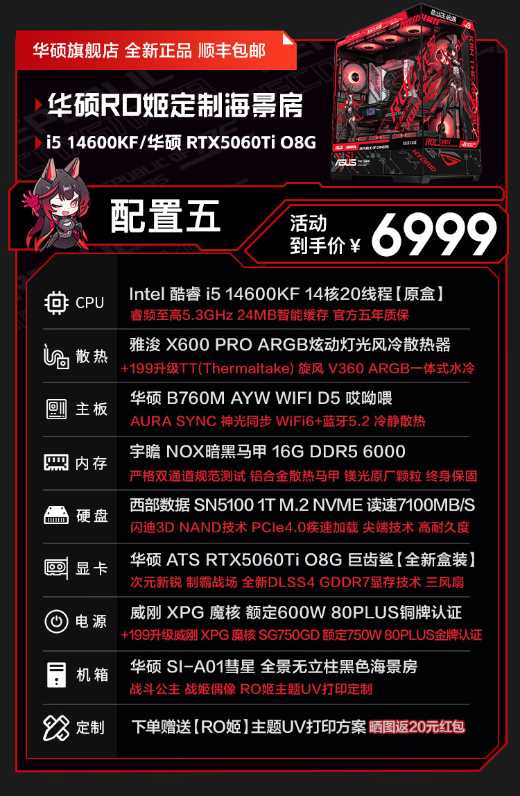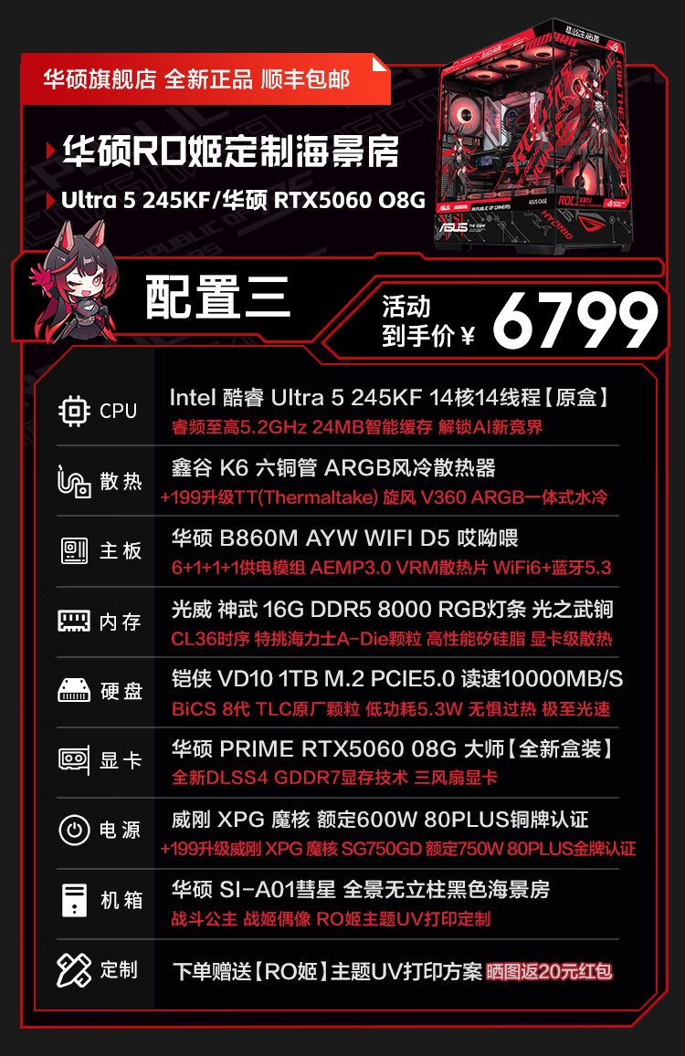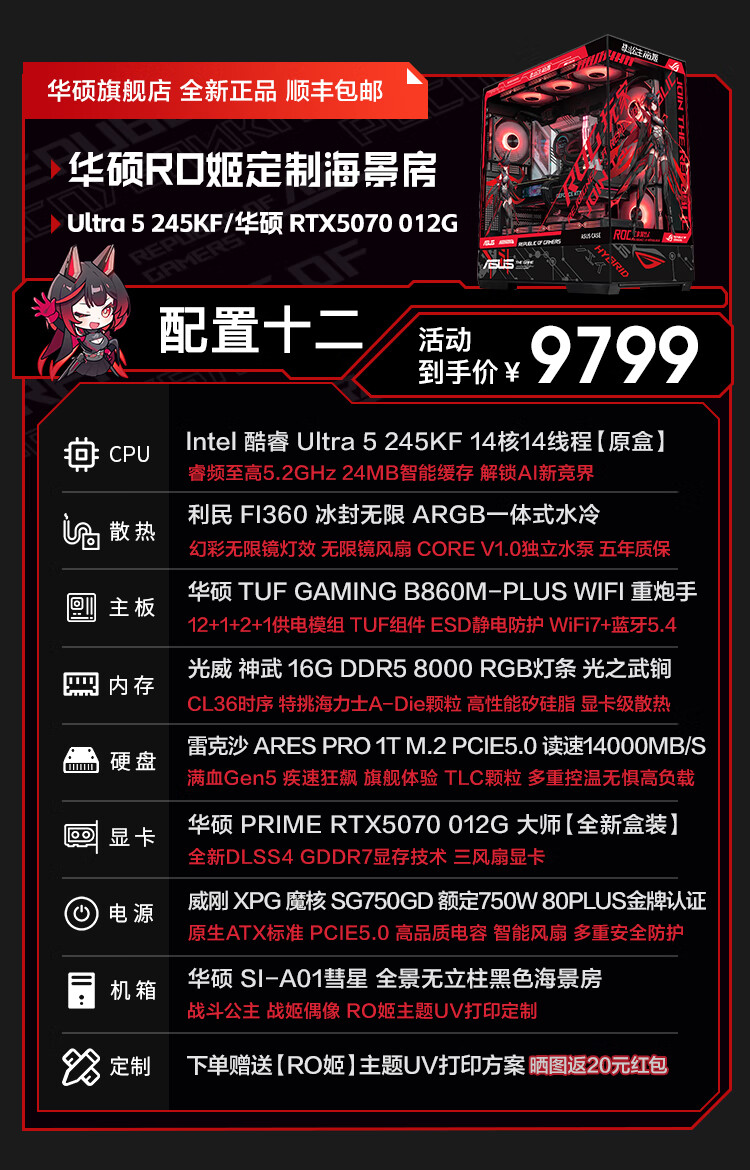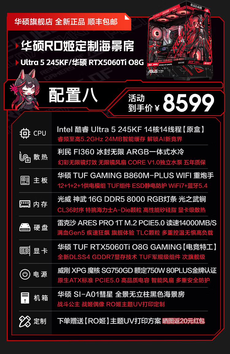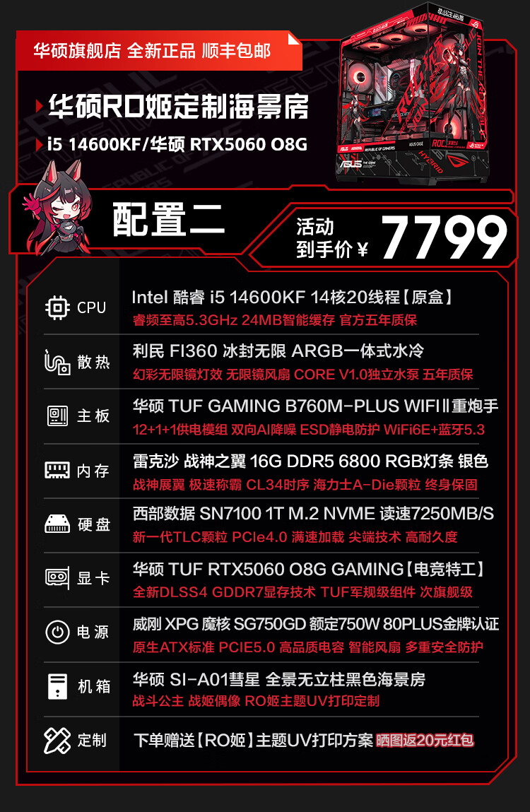 ASUS RTX5070/5060Ti/5060 graphics card 14600KF/245KF high-end fully equipped DIY assembly computer desktop complete machine 3D game AI host ASUS RO Ji mod chassis i5 14600KF + ASUS RTX5060 configuration one