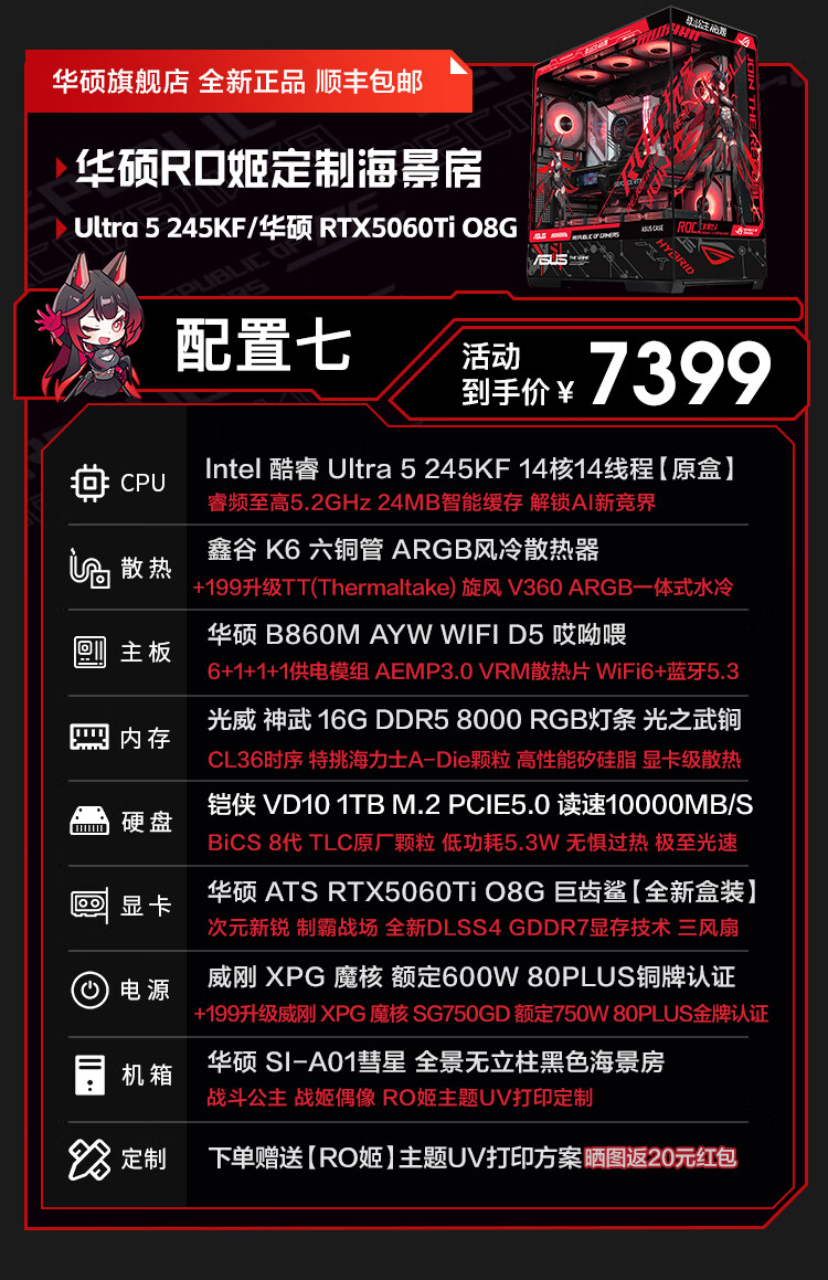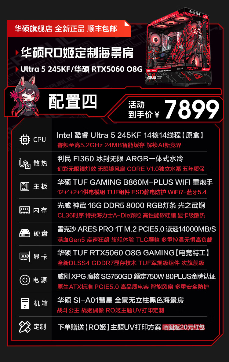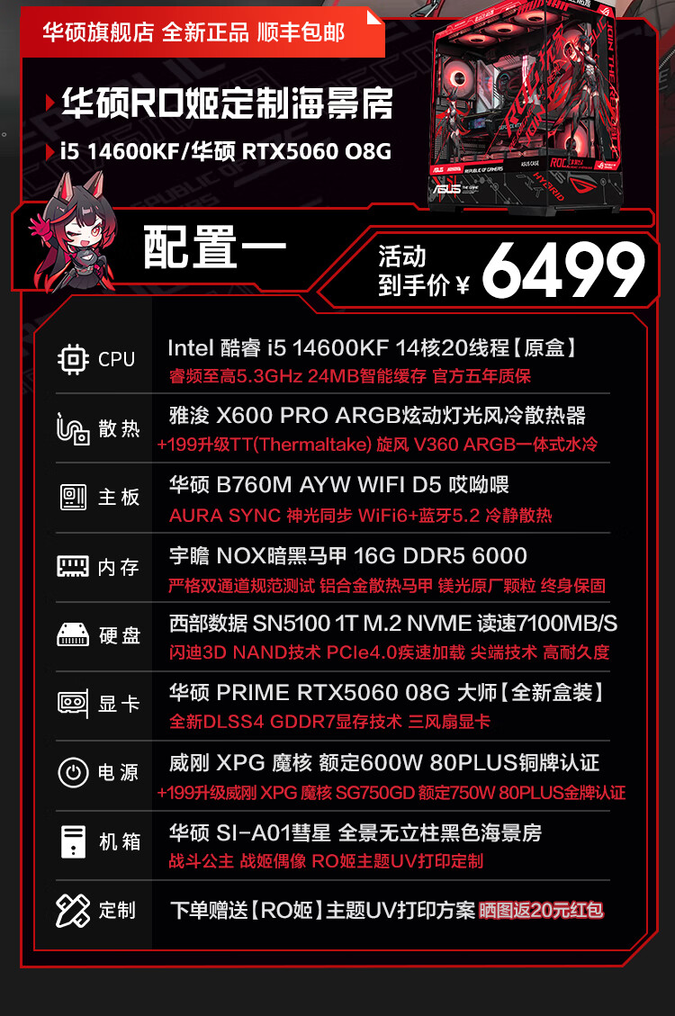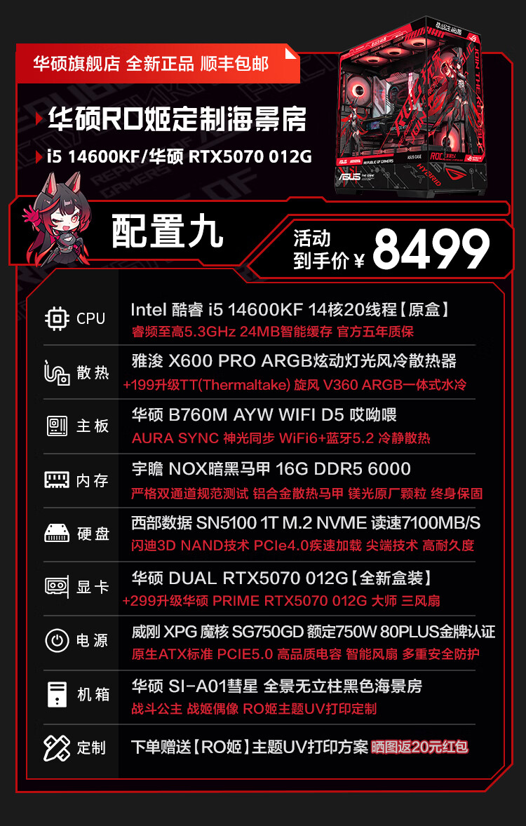 ASUS RTX5070/5060Ti/5060 graphics card 14600KF/245KF high-end fully equipped DIY assembly computer desktop complete machine 3D game AI host ASUS RO Ji mod chassis i5 14600KF + ASUS RTX5060 configuration one
