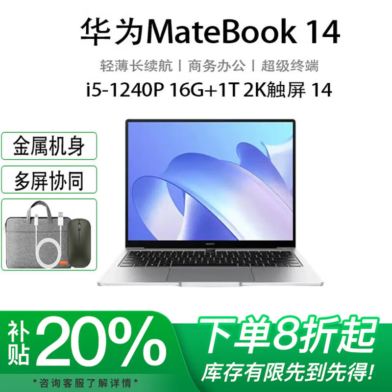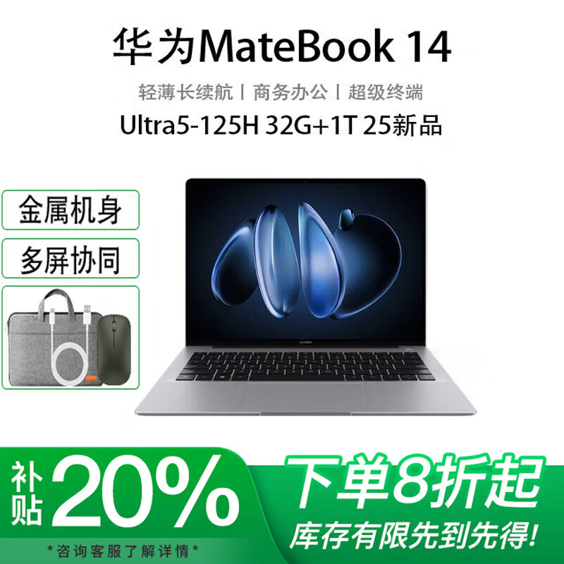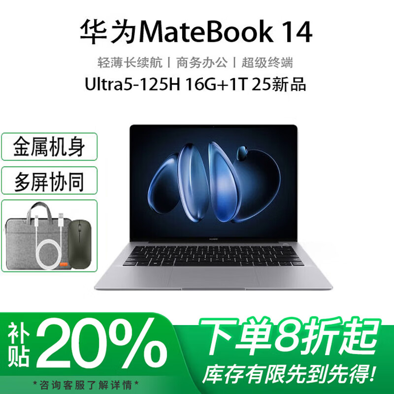 Huawei exhibition machine MateBook 14 thin and light business touch screen office notebook 2.8 KOLED screen student laptop Ultra5-125H/16G/1T new model