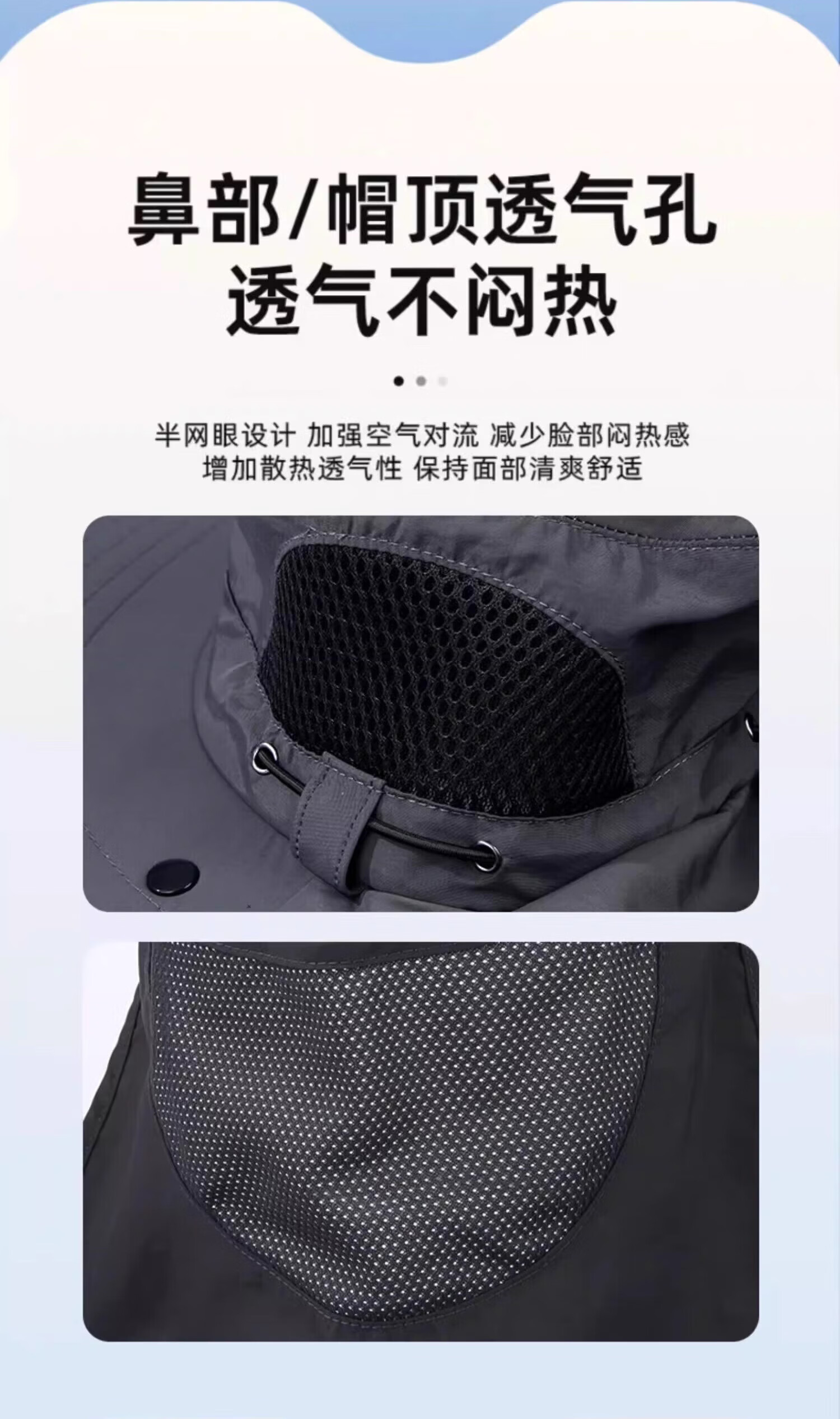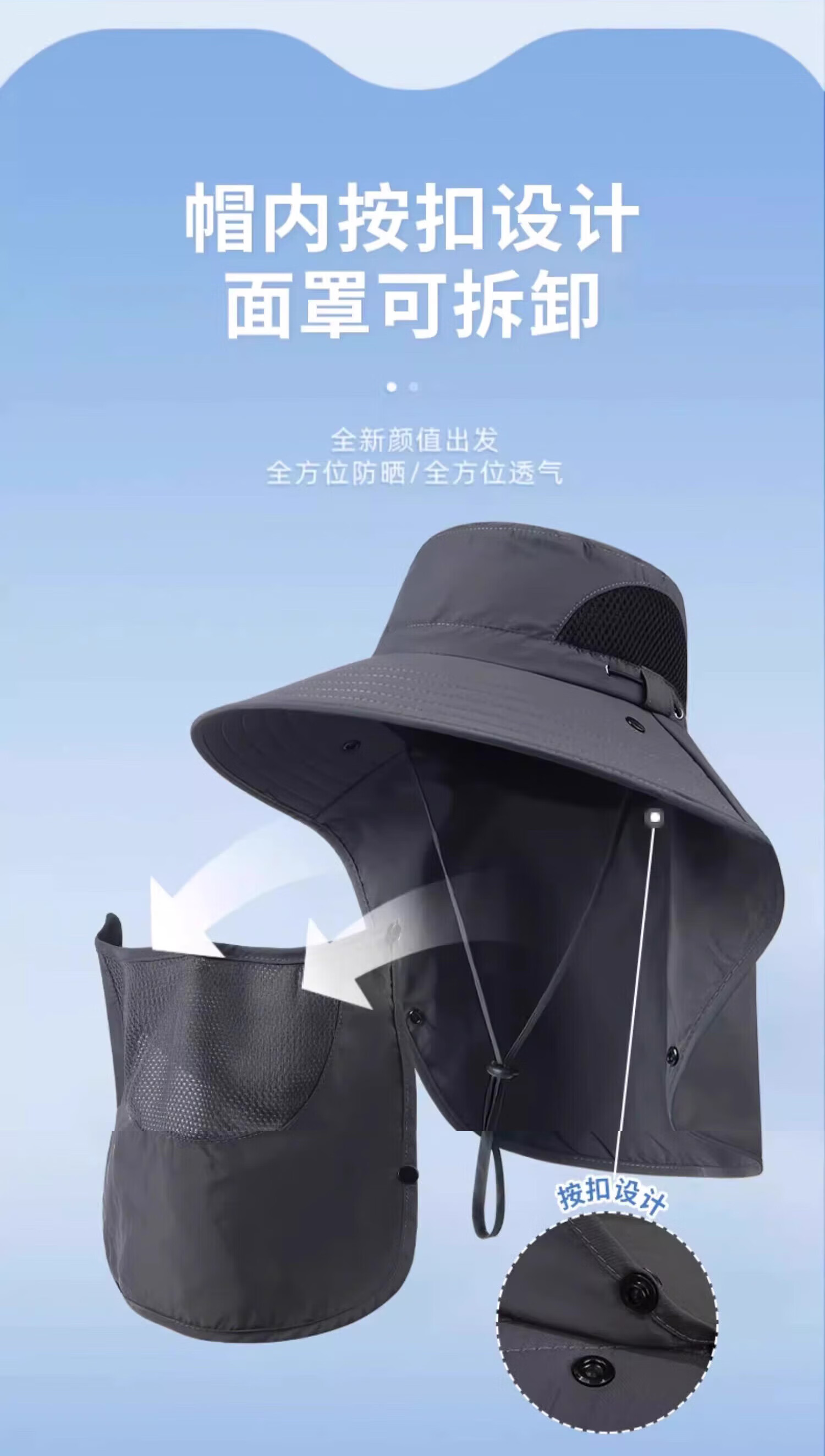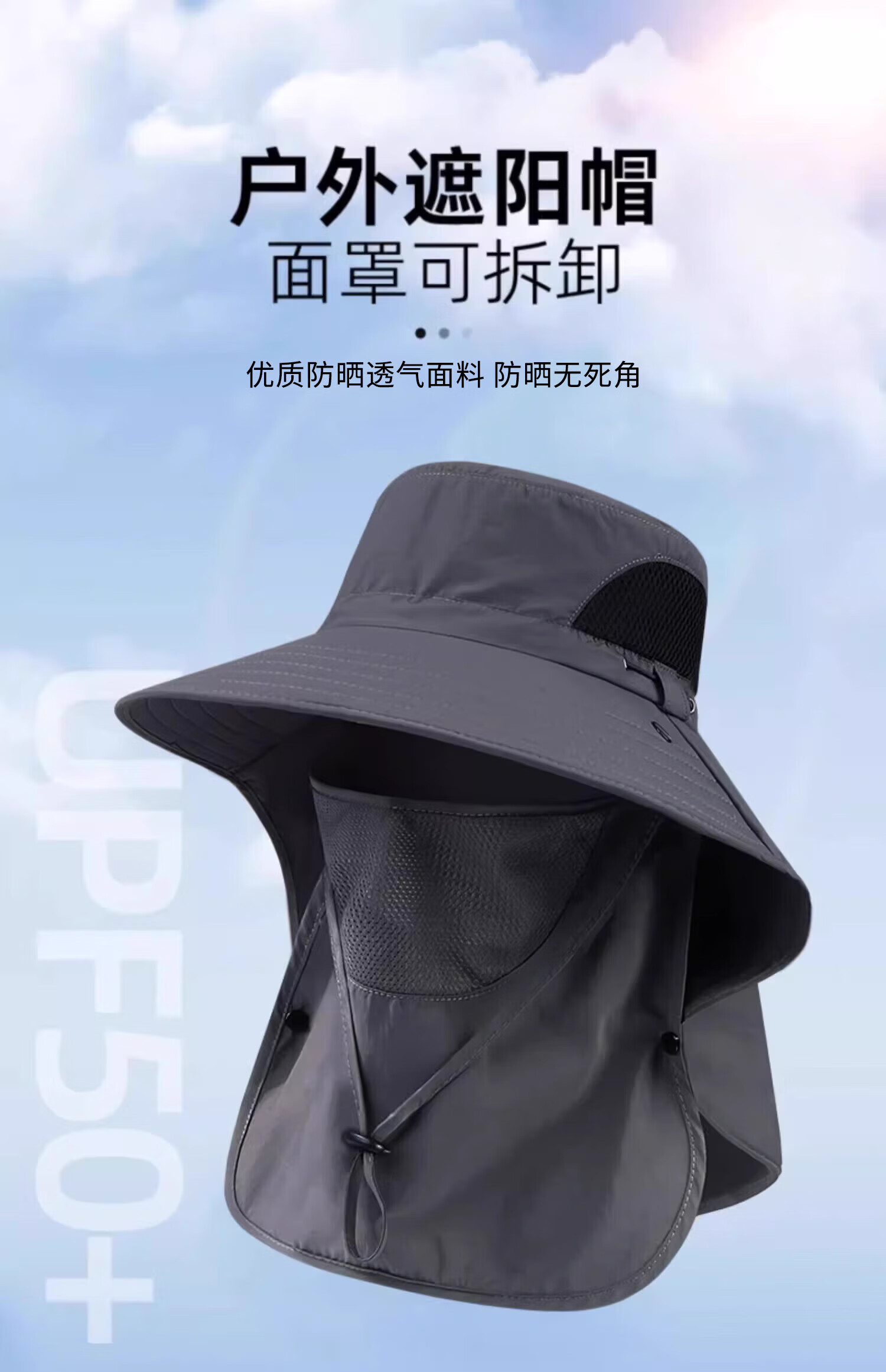 MPPMCK fisherman hat summer anti-UV sun hat fishing face and neck protection all-in-one men's sun protection hat large brim sun hat dark gray mask removable