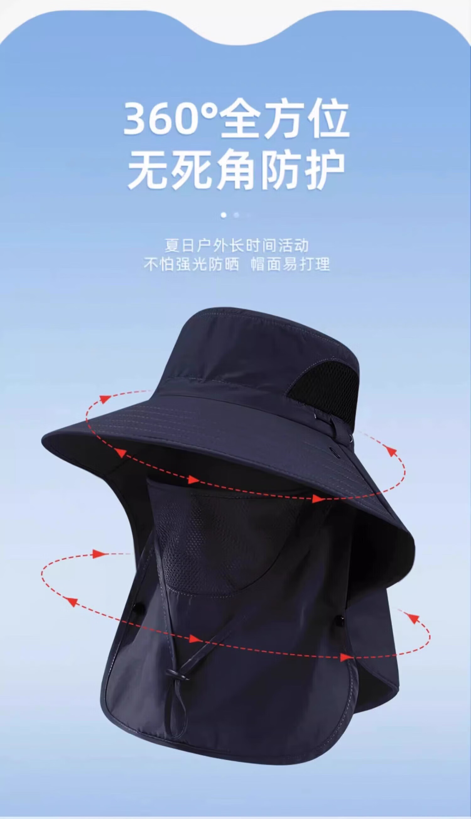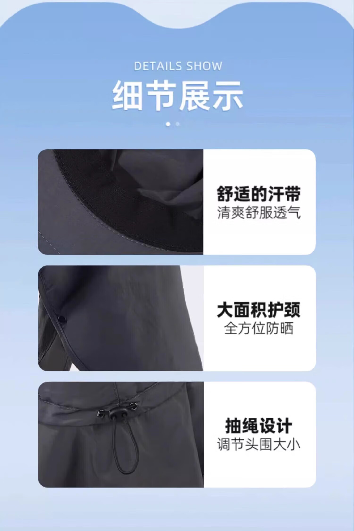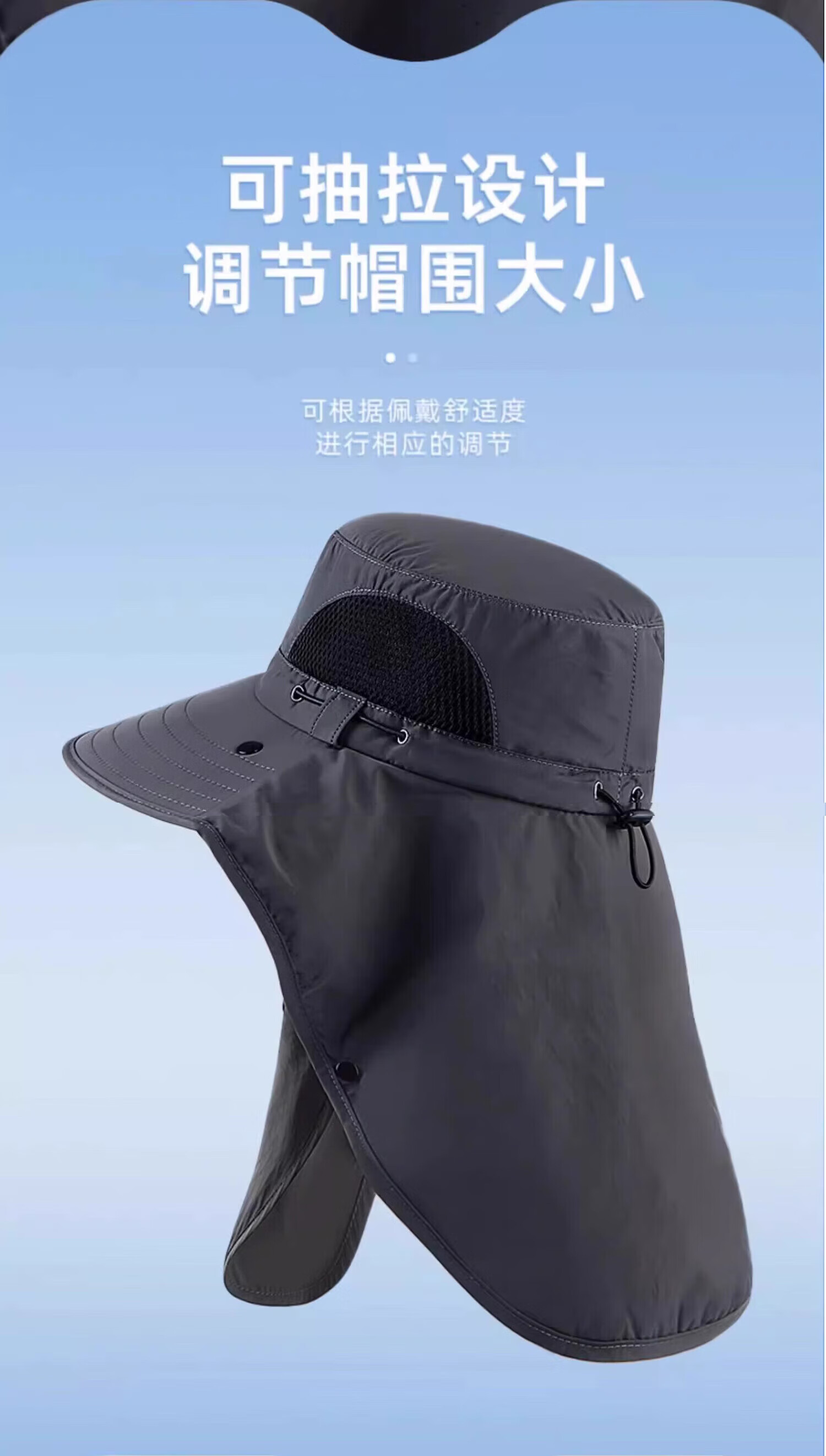 MPPMCK fisherman hat summer anti-UV sun hat fishing face and neck protection all-in-one men's sun protection hat large brim sun hat dark gray mask removable