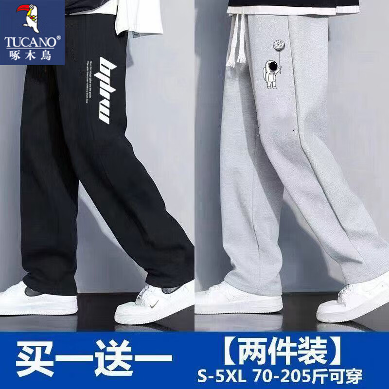Woodpecker 2-piece trousers men's autumn and winter loose trendy brand straight casual pants youth sports large size wide-leg trousers BW black + aerospace ball black regular XL