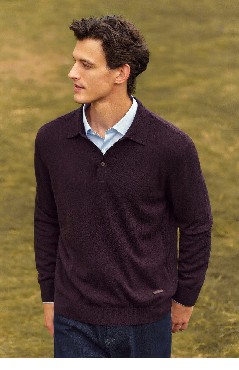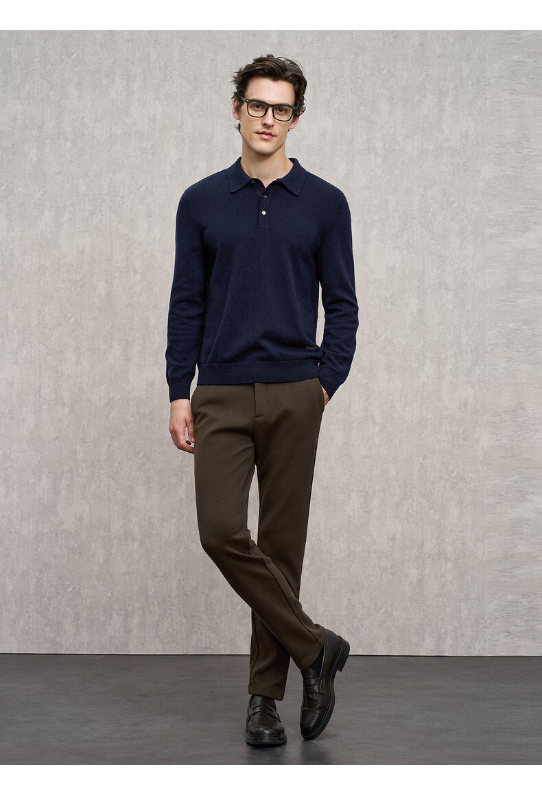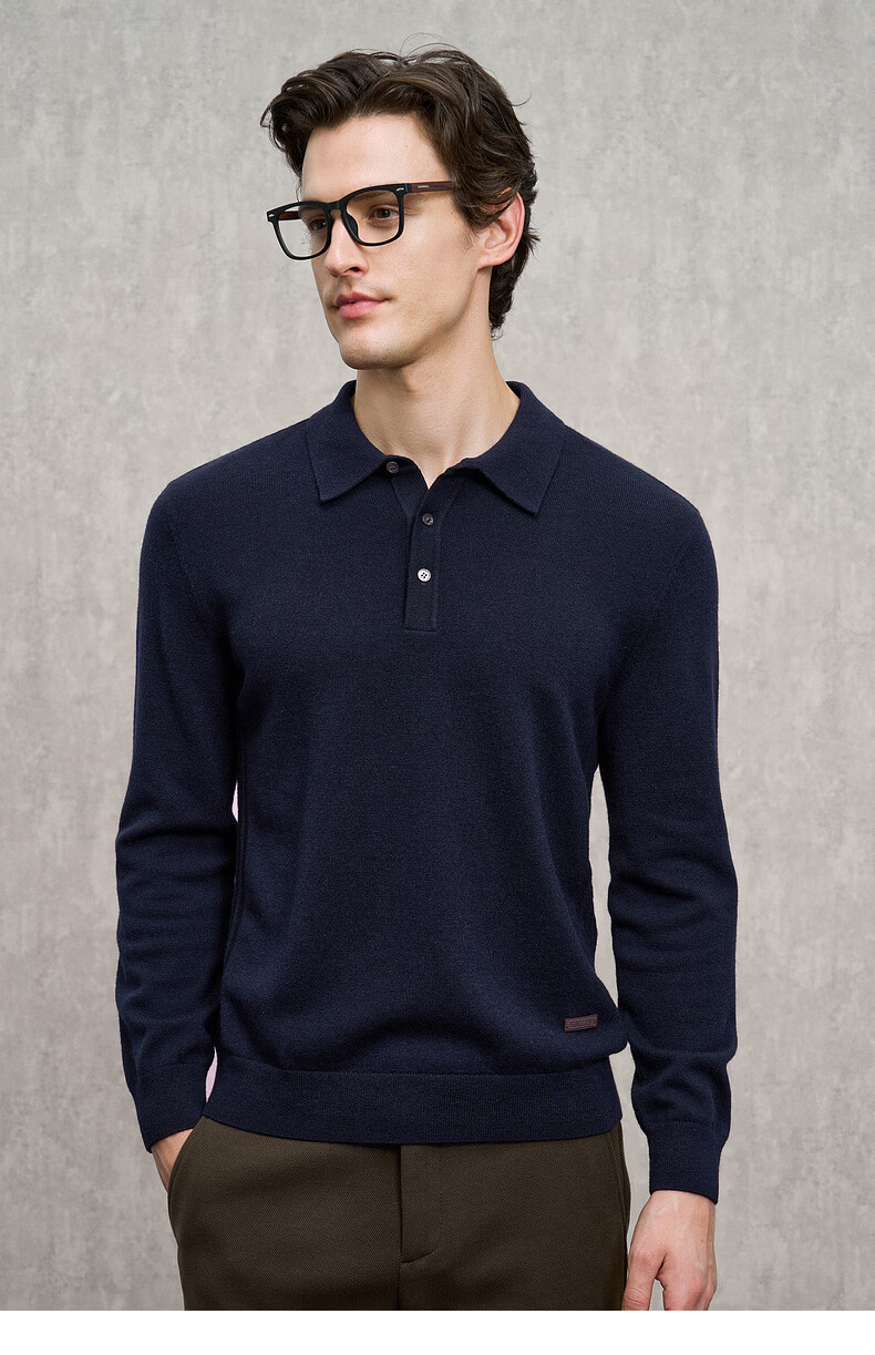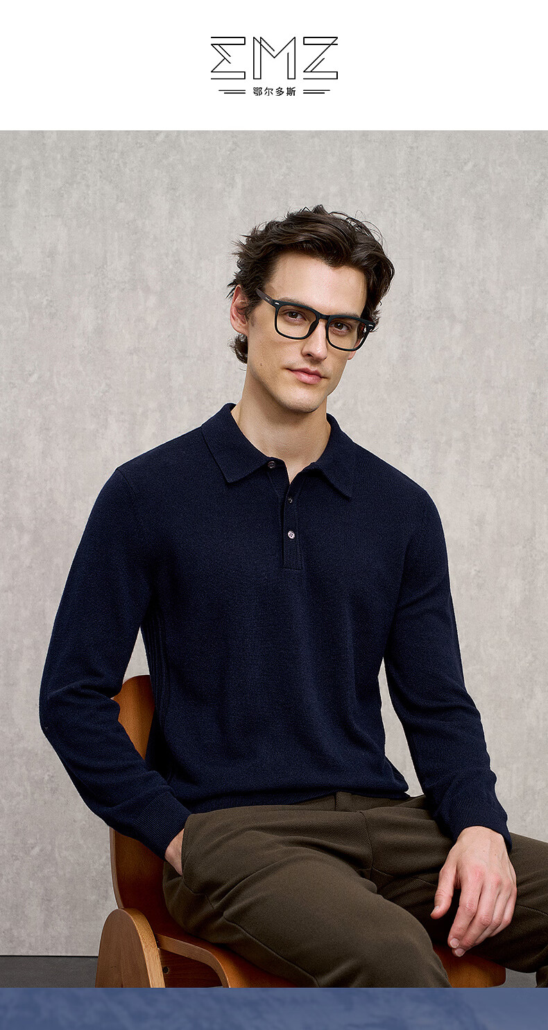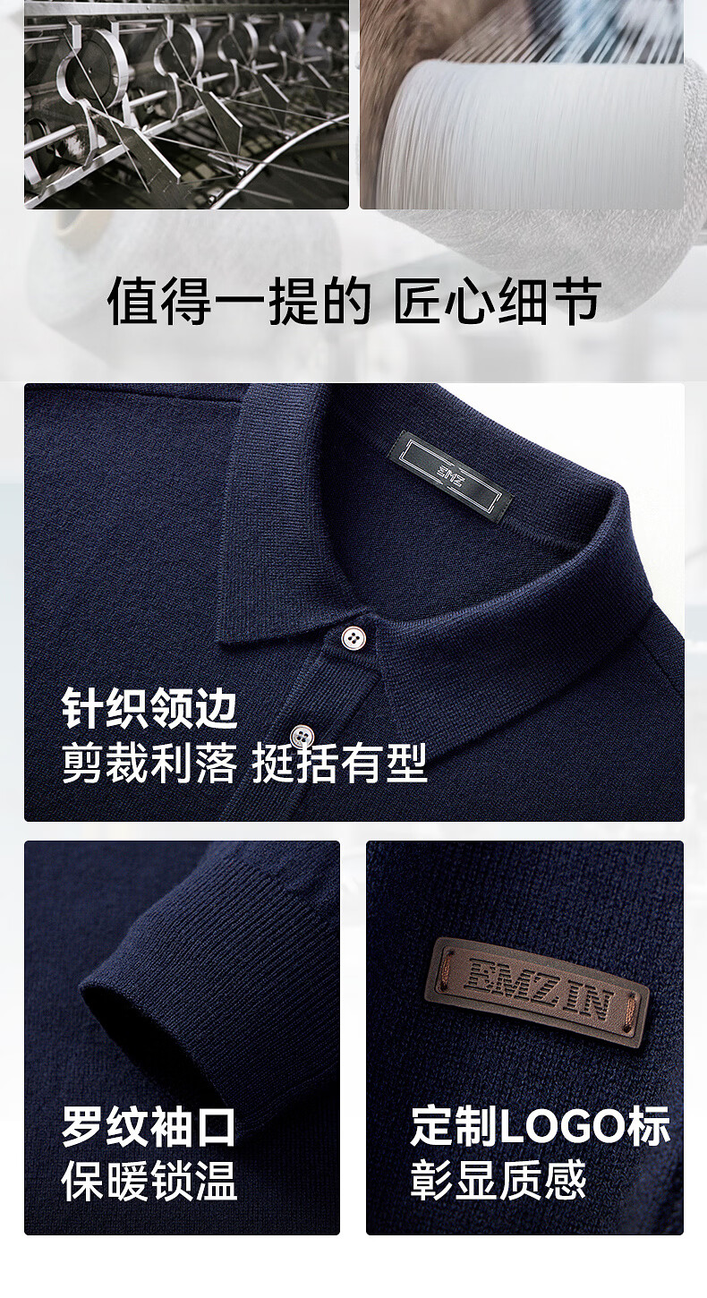 EMZ Ordos Pure Wool Spring and Autumn New Antibacterial, Heating and Warm Polo Collar Knitted Sweater for Men, Navy M Recommended Height 165/Weight 120-130 Jin Jin equals 0.5 kg