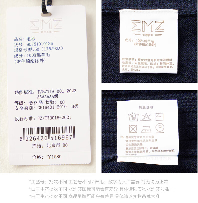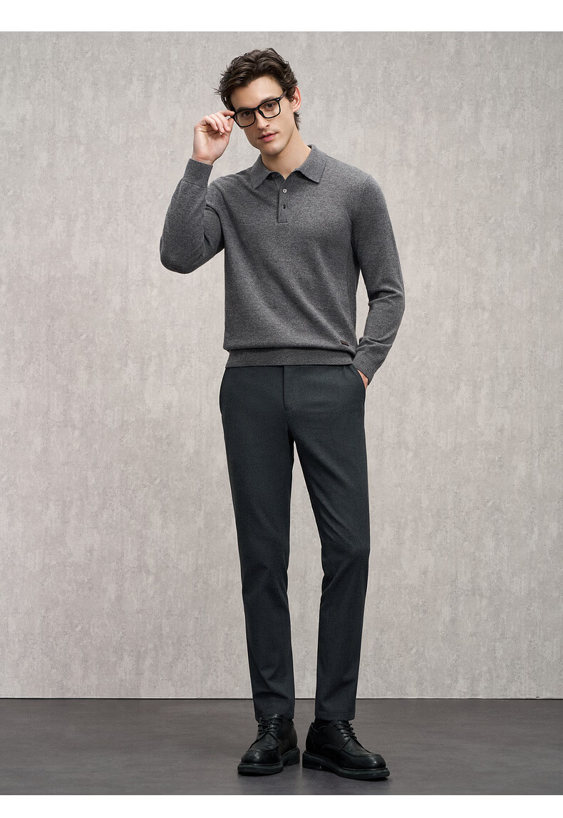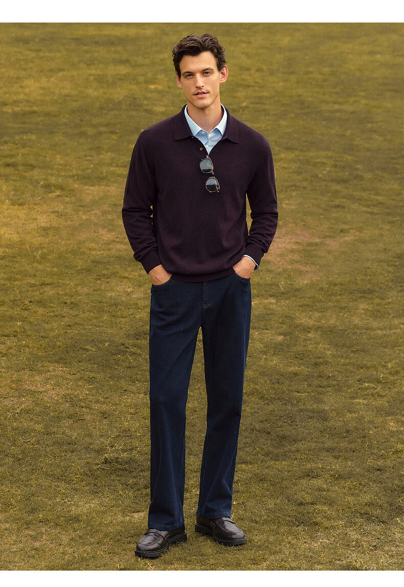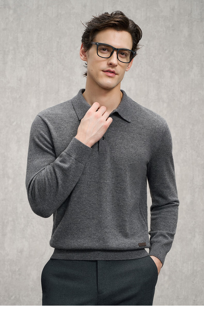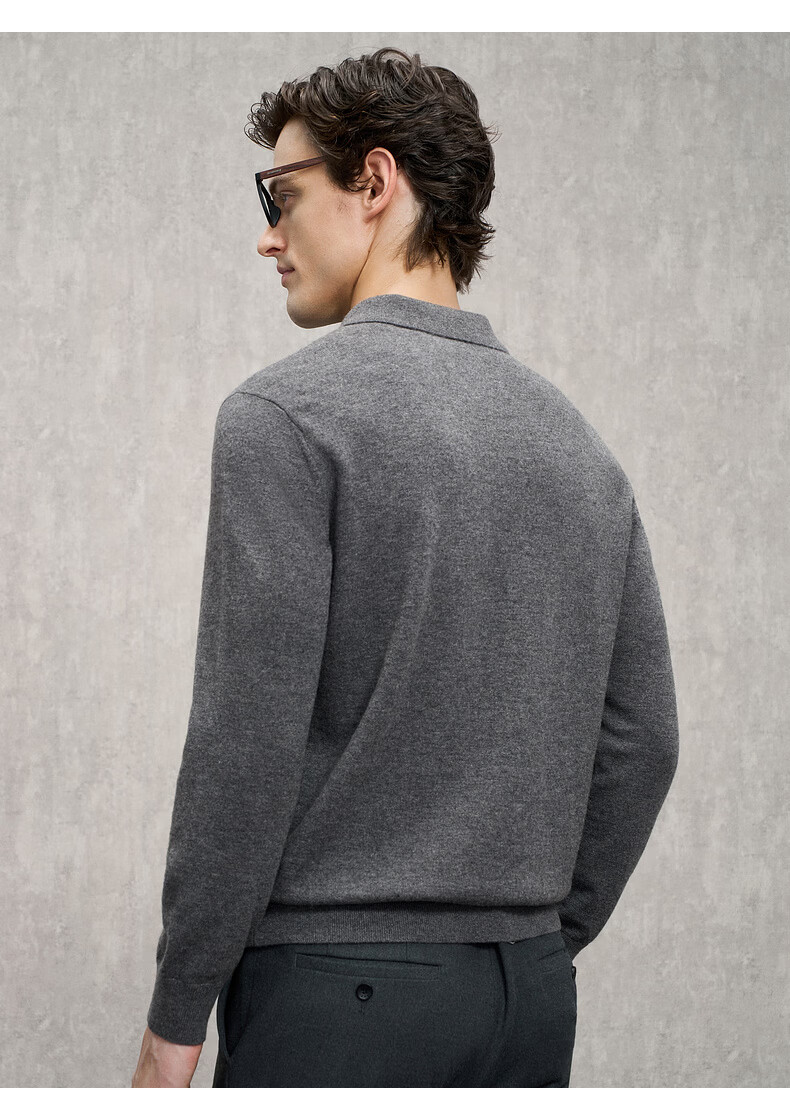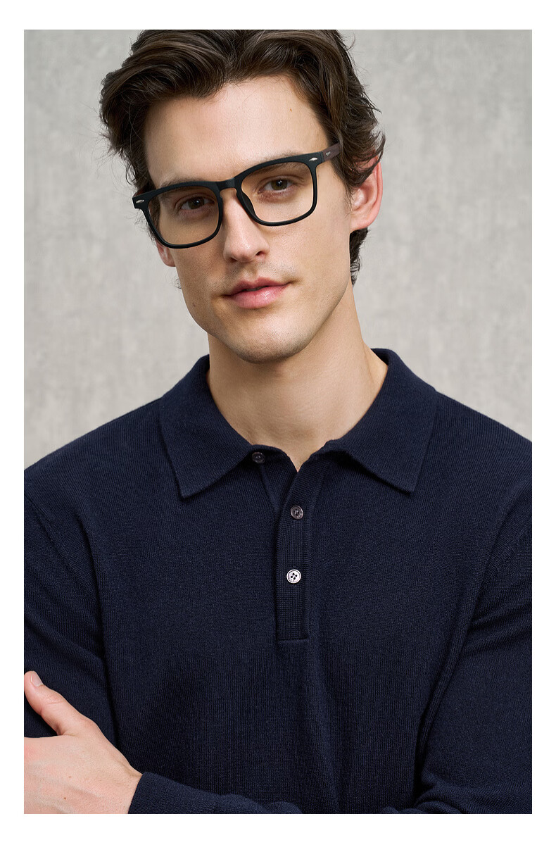 EMZ Ordos Pure Wool Spring and Autumn New Antibacterial, Heating and Warm Polo Collar Knitted Sweater for Men, Navy M Recommended Height 165/Weight 120-130 Jin Jin equals 0.5 kg