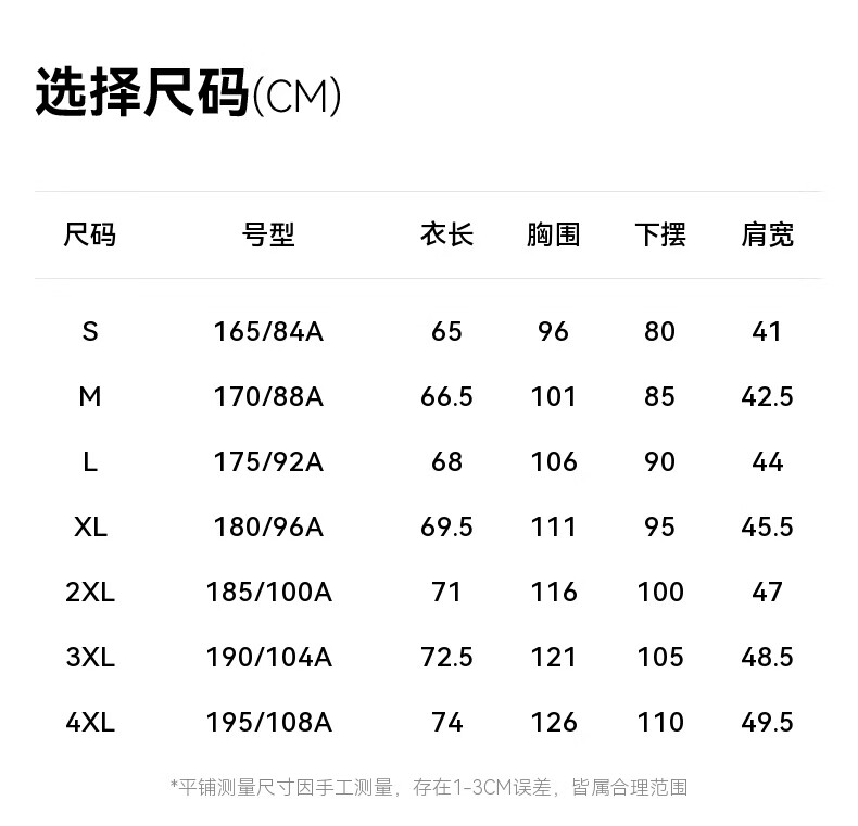 China (cm) 165 / 88-90 170 / 96-98 175 / 108-110 180 / 118-122 185 / 126-130