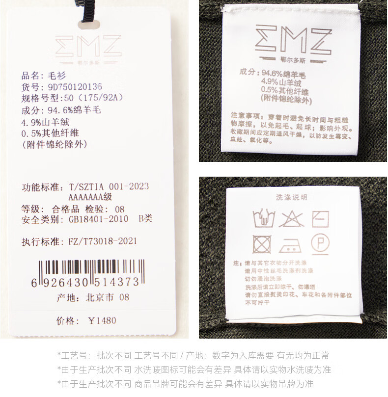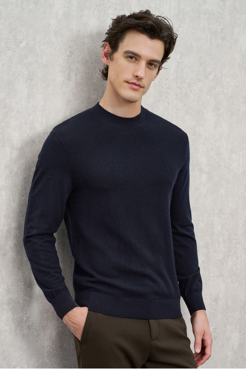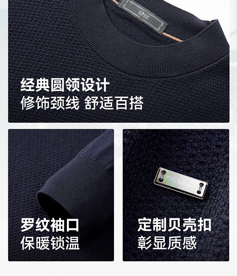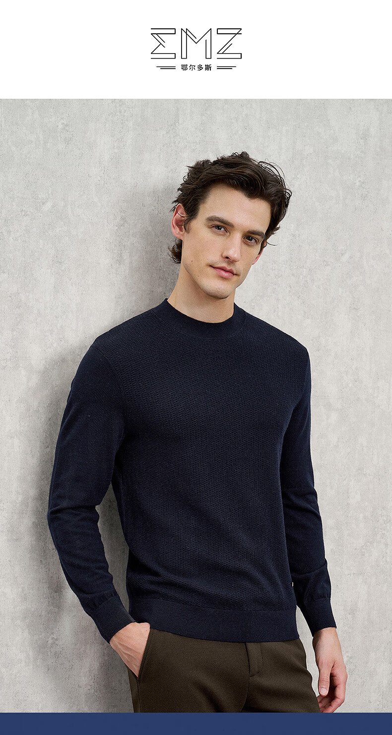 EMZ Ordos Wool Cashmere Spring and Autumn New Antibacterial Warm Casual Round Neck Bottoming Knitted Sweater Men's Navy M Recommended Height 165/Weight 120-130 Jin Jin equals 0.5 kg