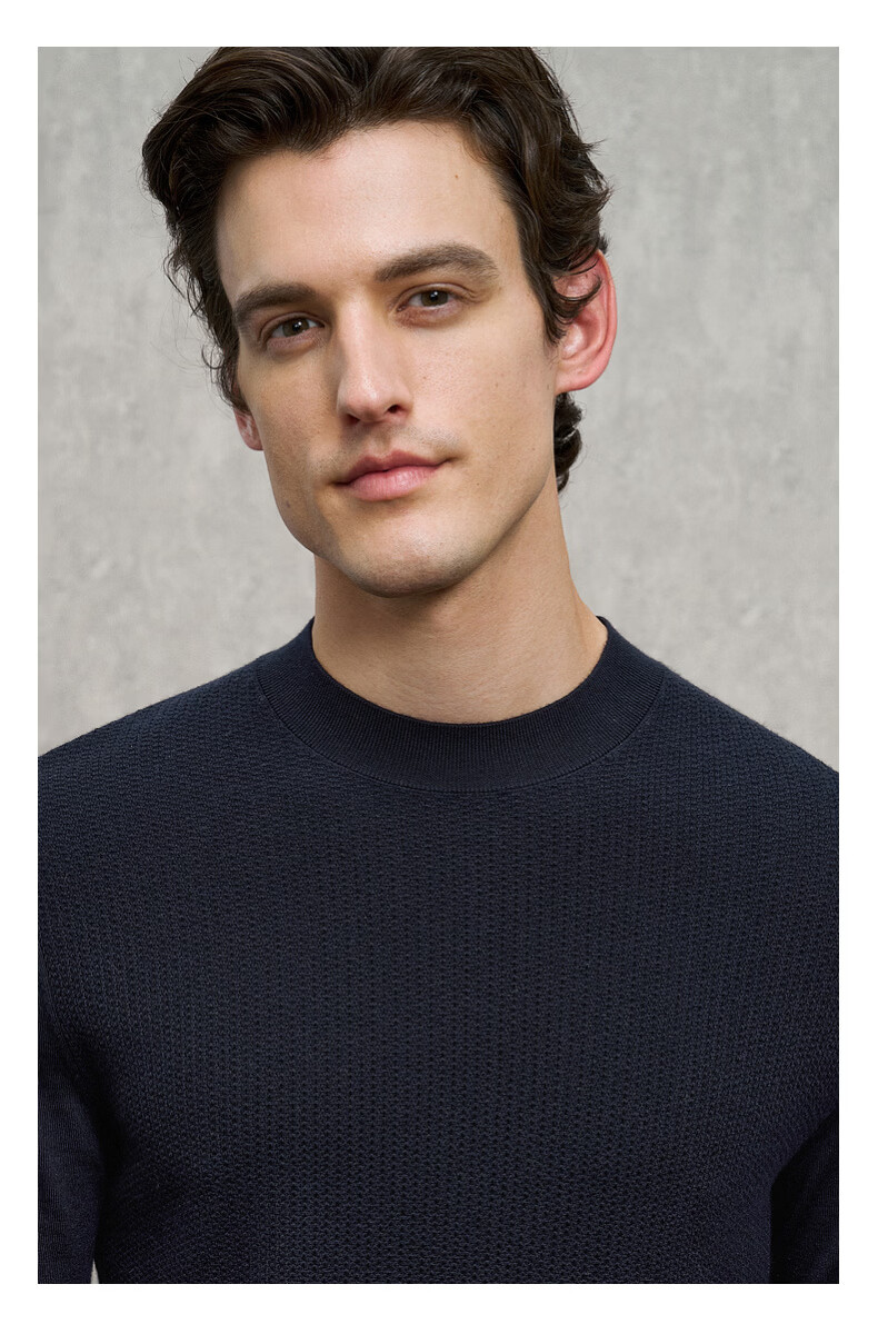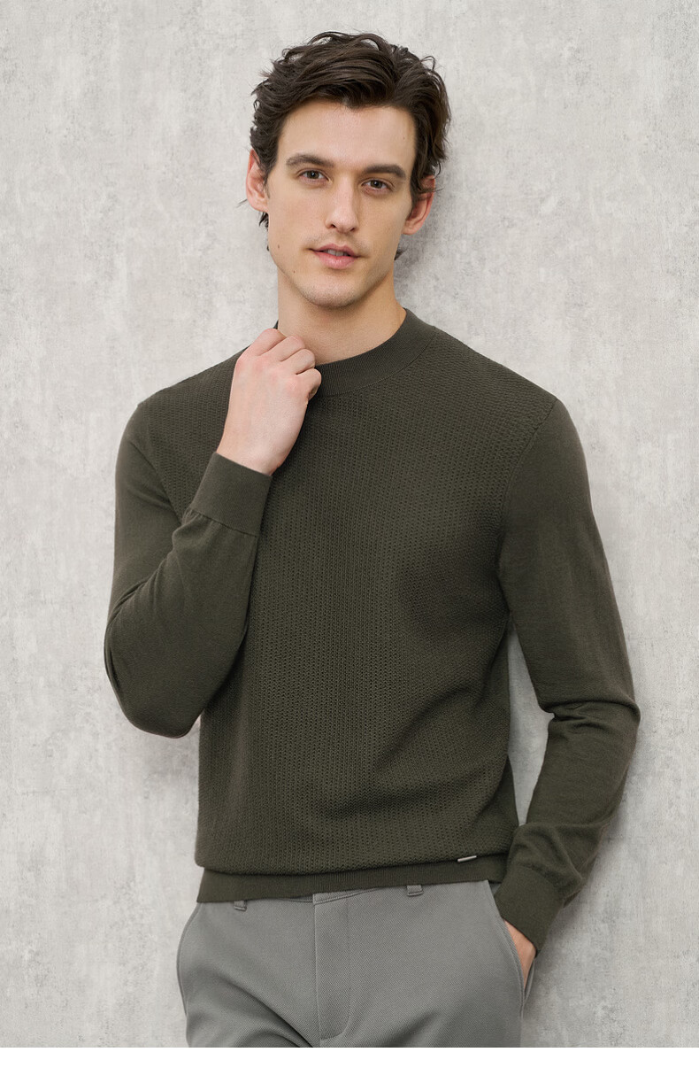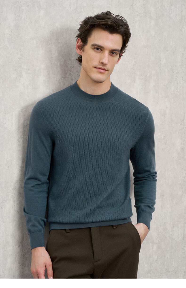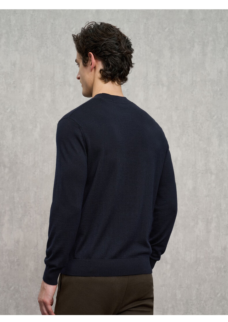 EMZ Ordos Wool Cashmere Spring and Autumn New Antibacterial Warm Casual Round Neck Bottoming Knitted Sweater Men's Navy M Recommended Height 165/Weight 120-130 Jin Jin equals 0.5 kg