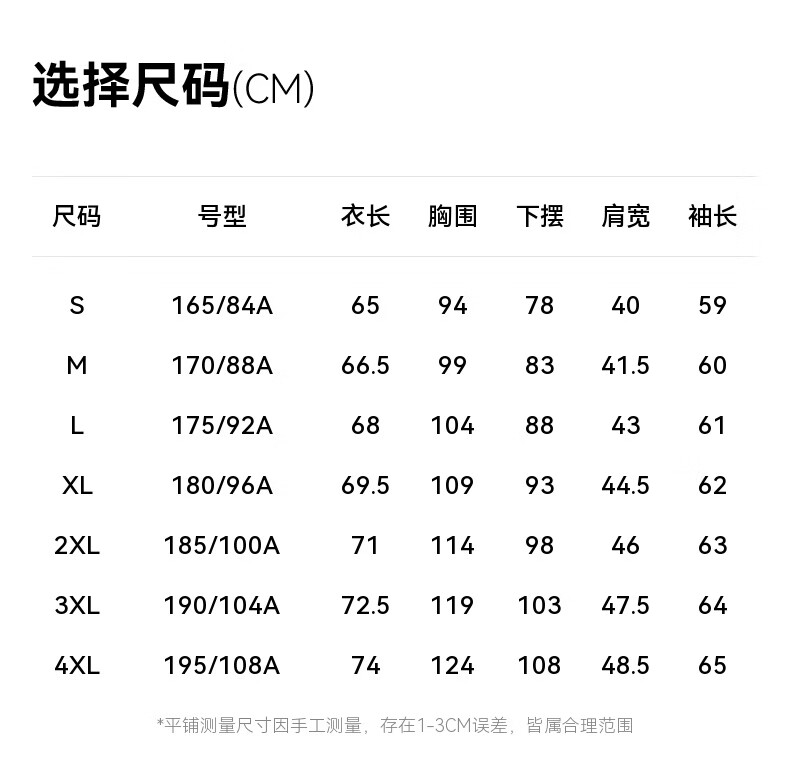 China (cm) 160-165/84-86 165-170 / 88-90 167-172 / 92-96 168-173 / 98-102 170-176 / 106-110