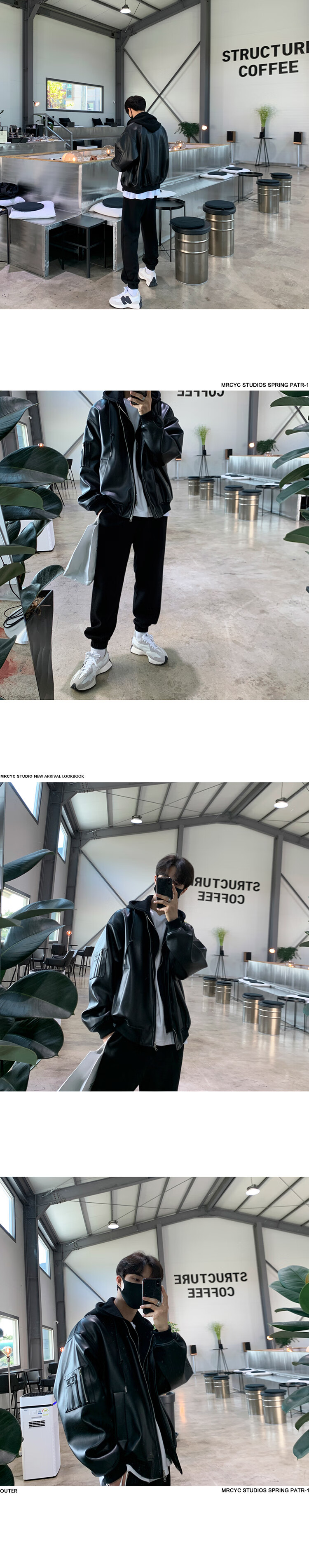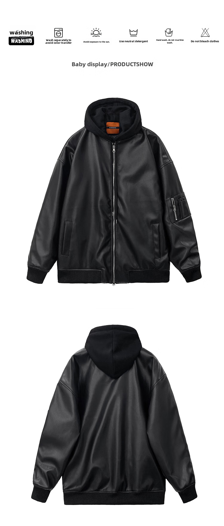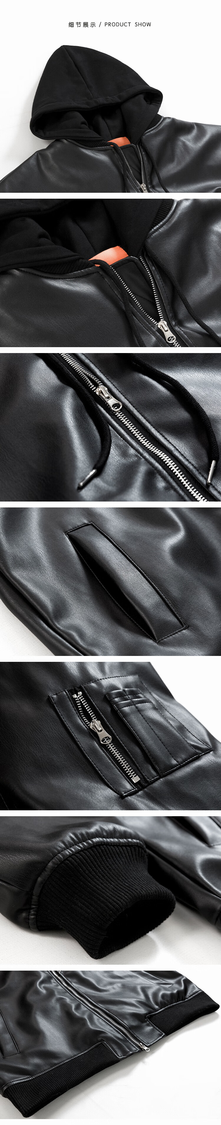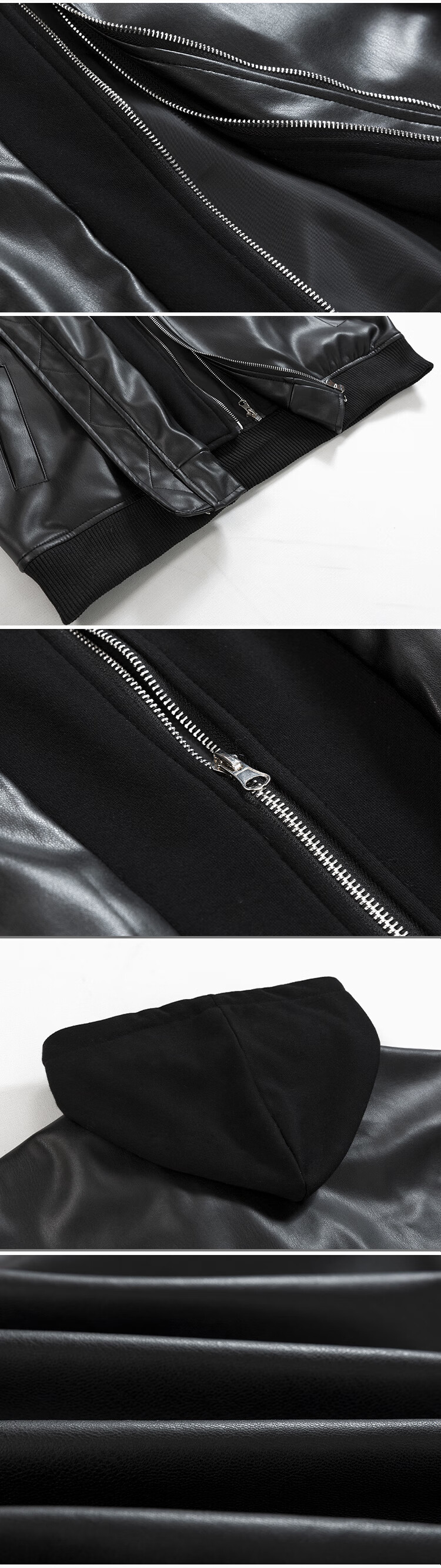 CINESSDMrcyc leather jacket men's high-end fake two-piece patchwork hooded jacket Korean loose fashion brand workwear black L