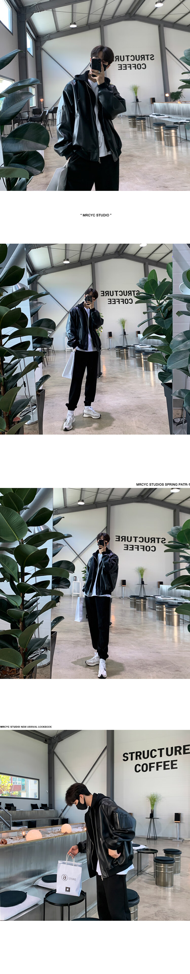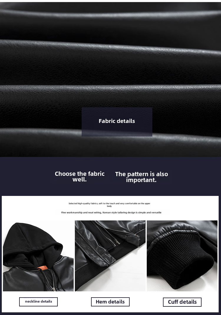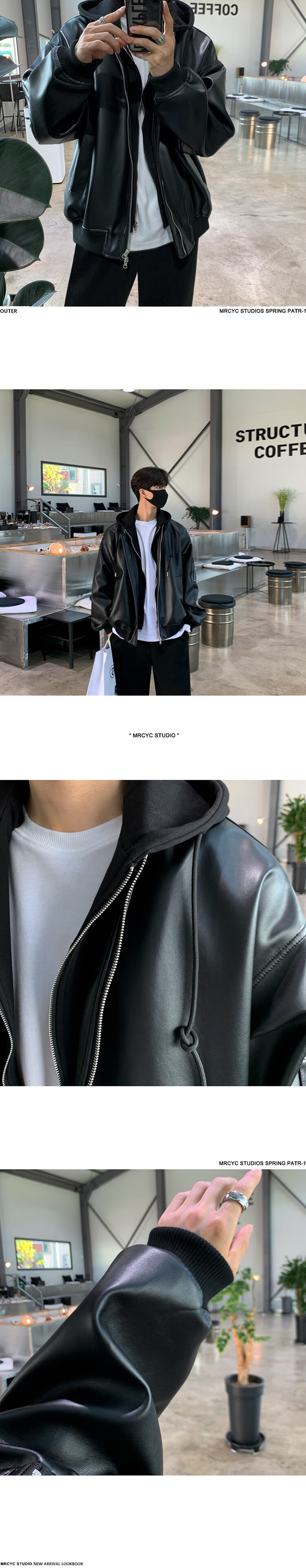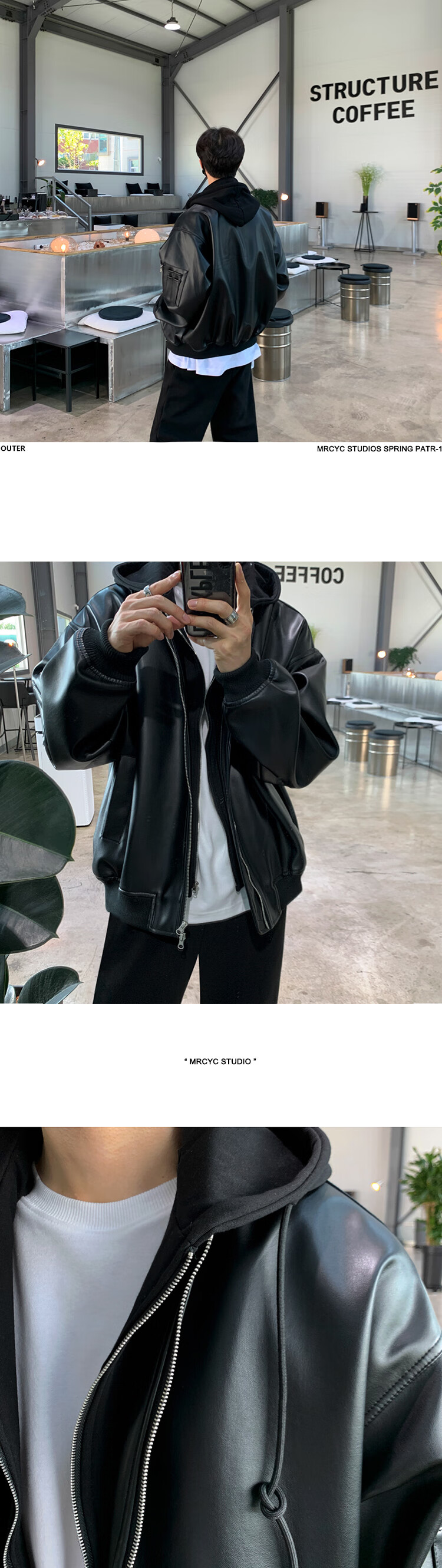 CINESSDMrcyc leather jacket men's high-end fake two-piece patchwork hooded jacket Korean loose fashion brand workwear black L
